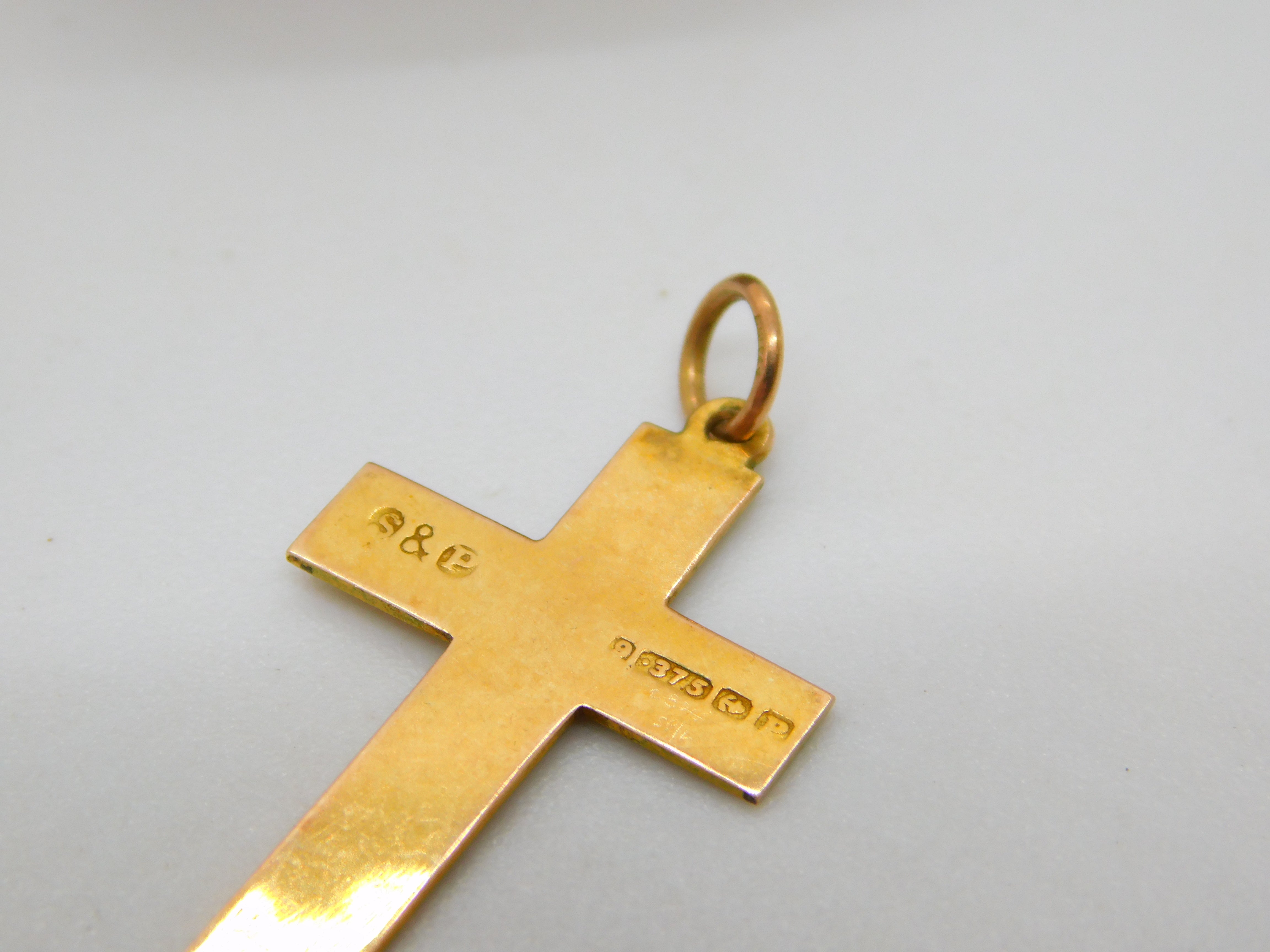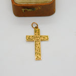 Victorian 9ct Yellow Gold Floral Pattern Cross Pendant Antique 1868 Birmingham