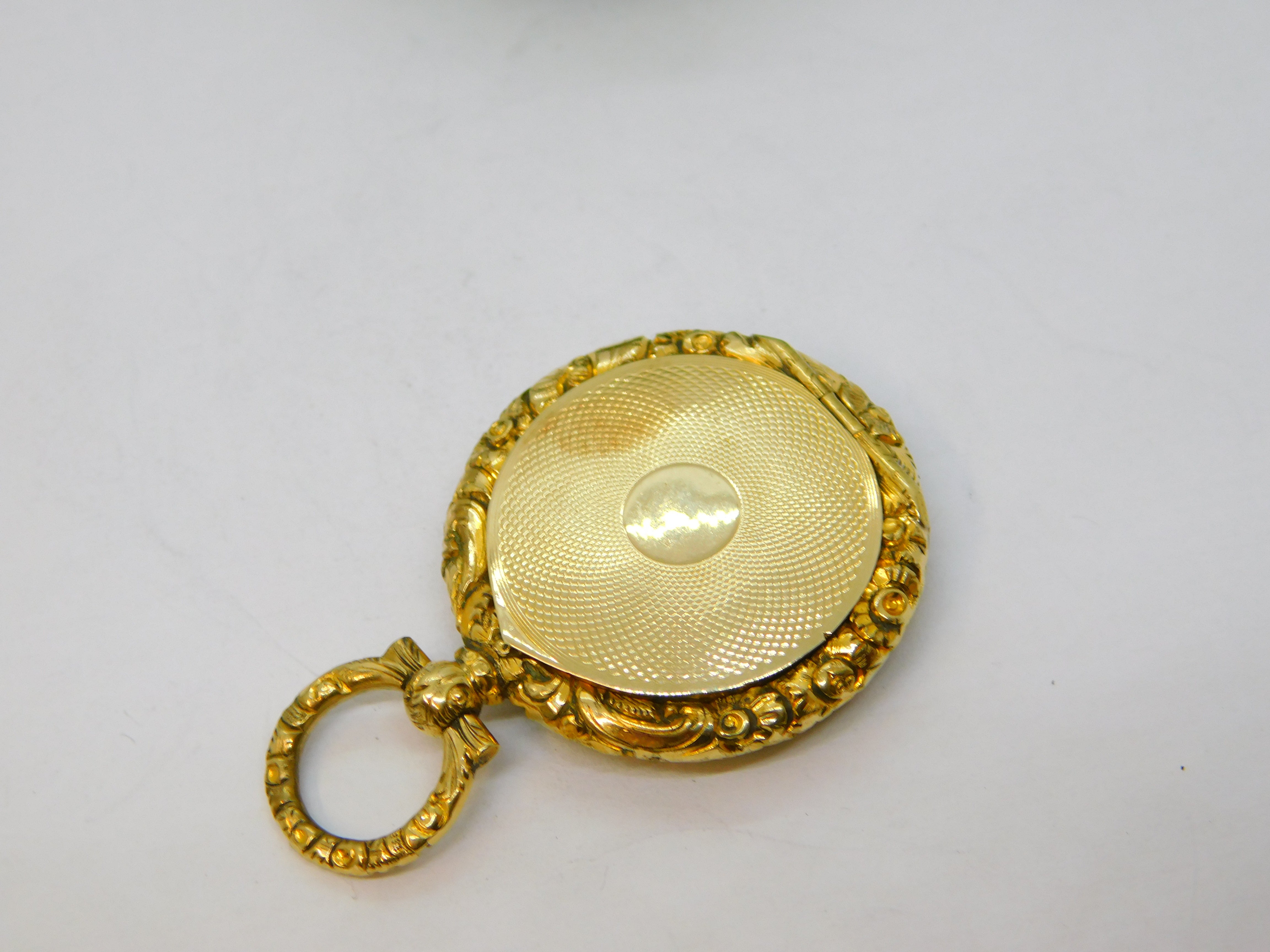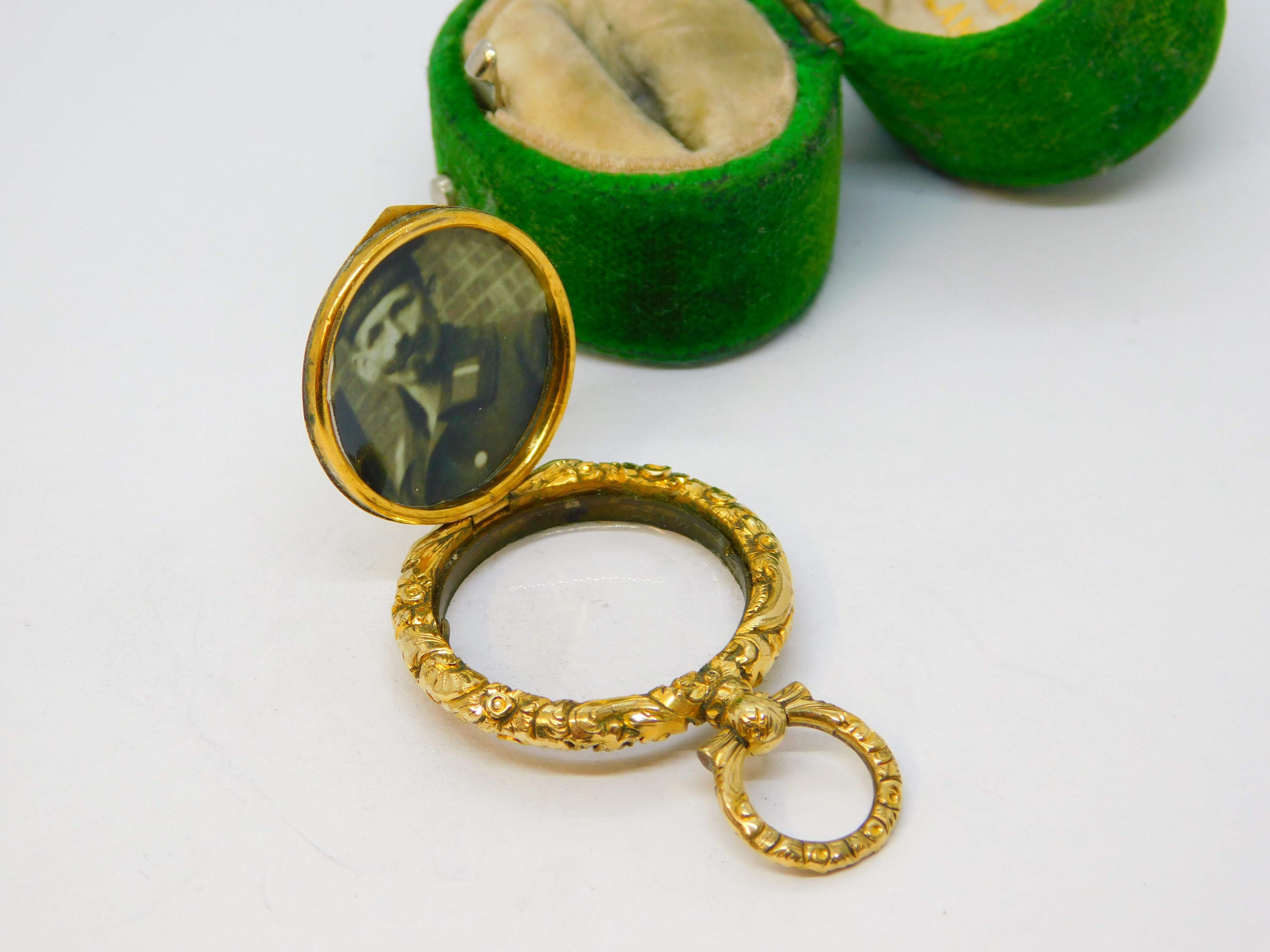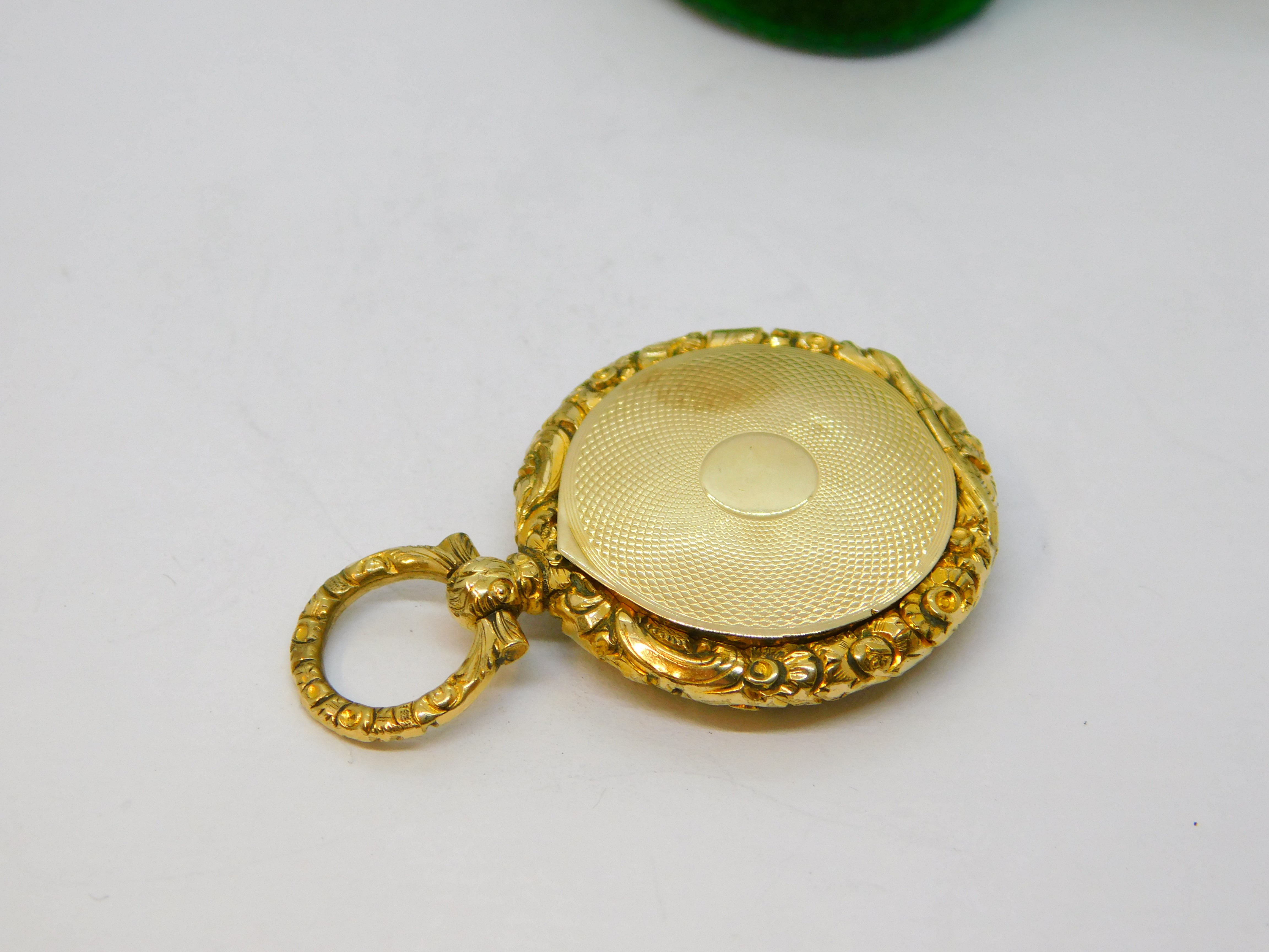 Victorian 9ct Yellow Gold Floral Pattern Portrait Locket Pendant Antique c1890