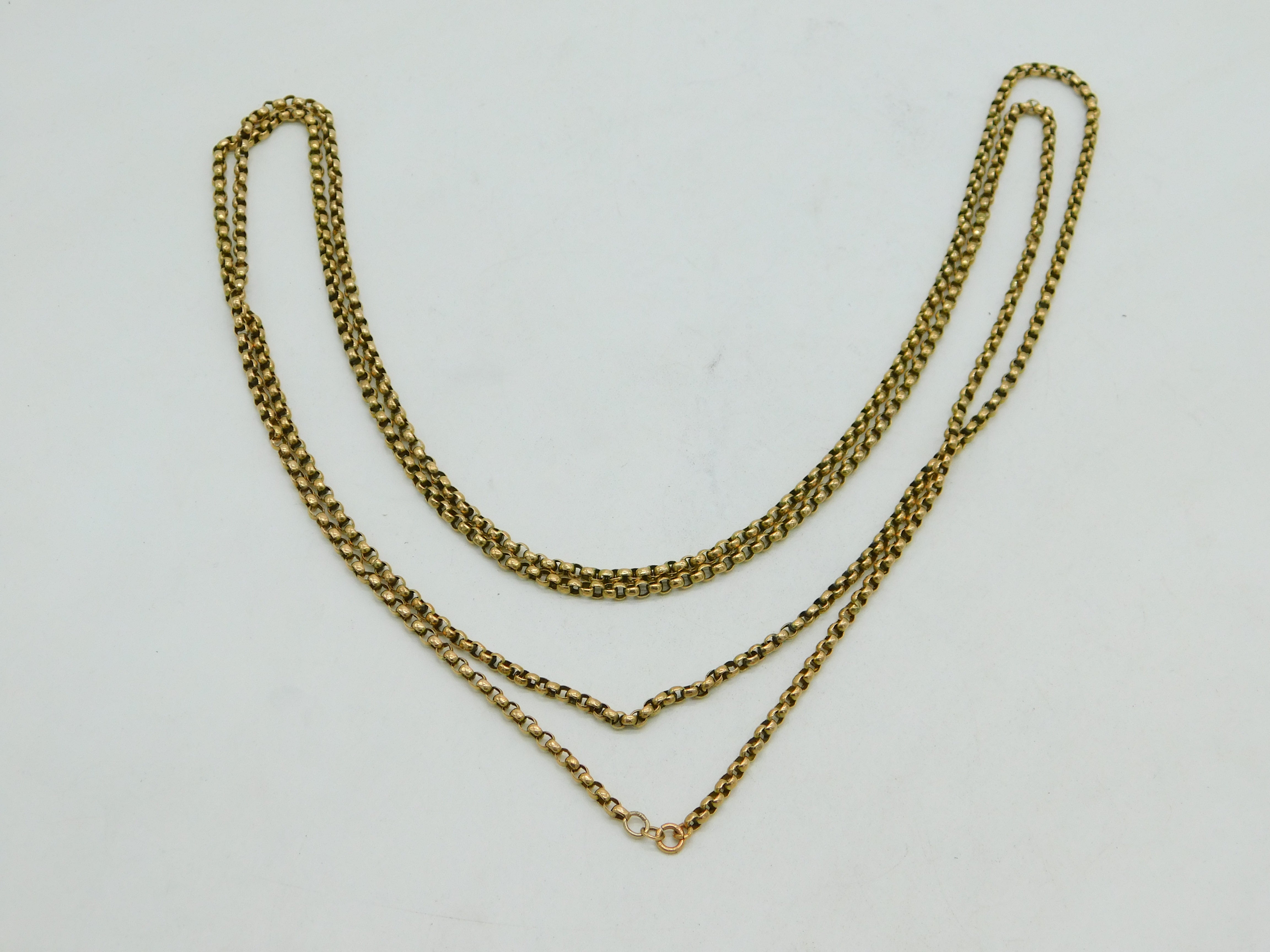 Victorian 9ct Yellow Gold Long Guard Muff Chain Necklace Antique c1860 160cm