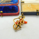 Victorian 9ct Yellow Gold & Red Coral Specimen Sweetheart Brooch Antique c1850