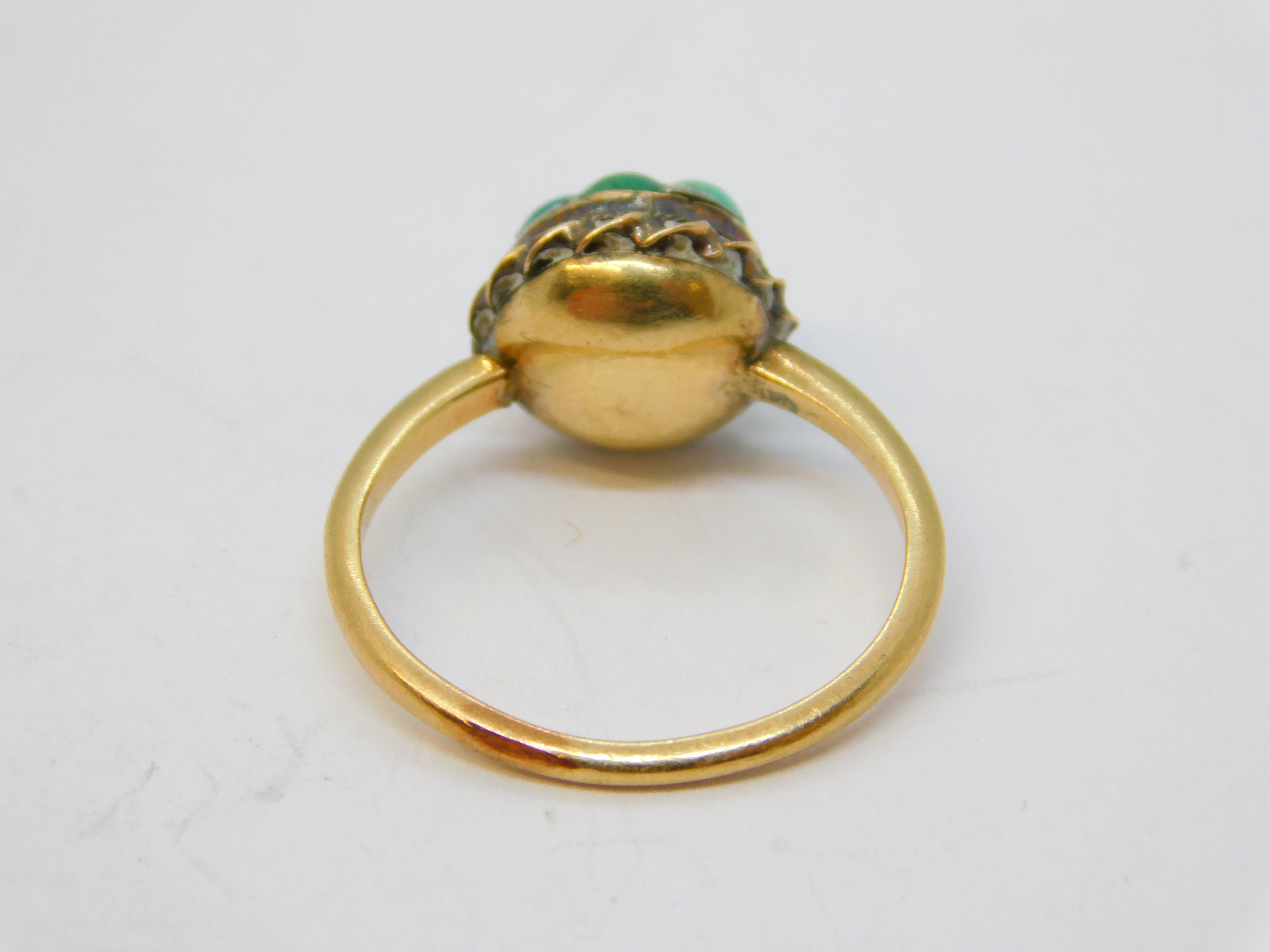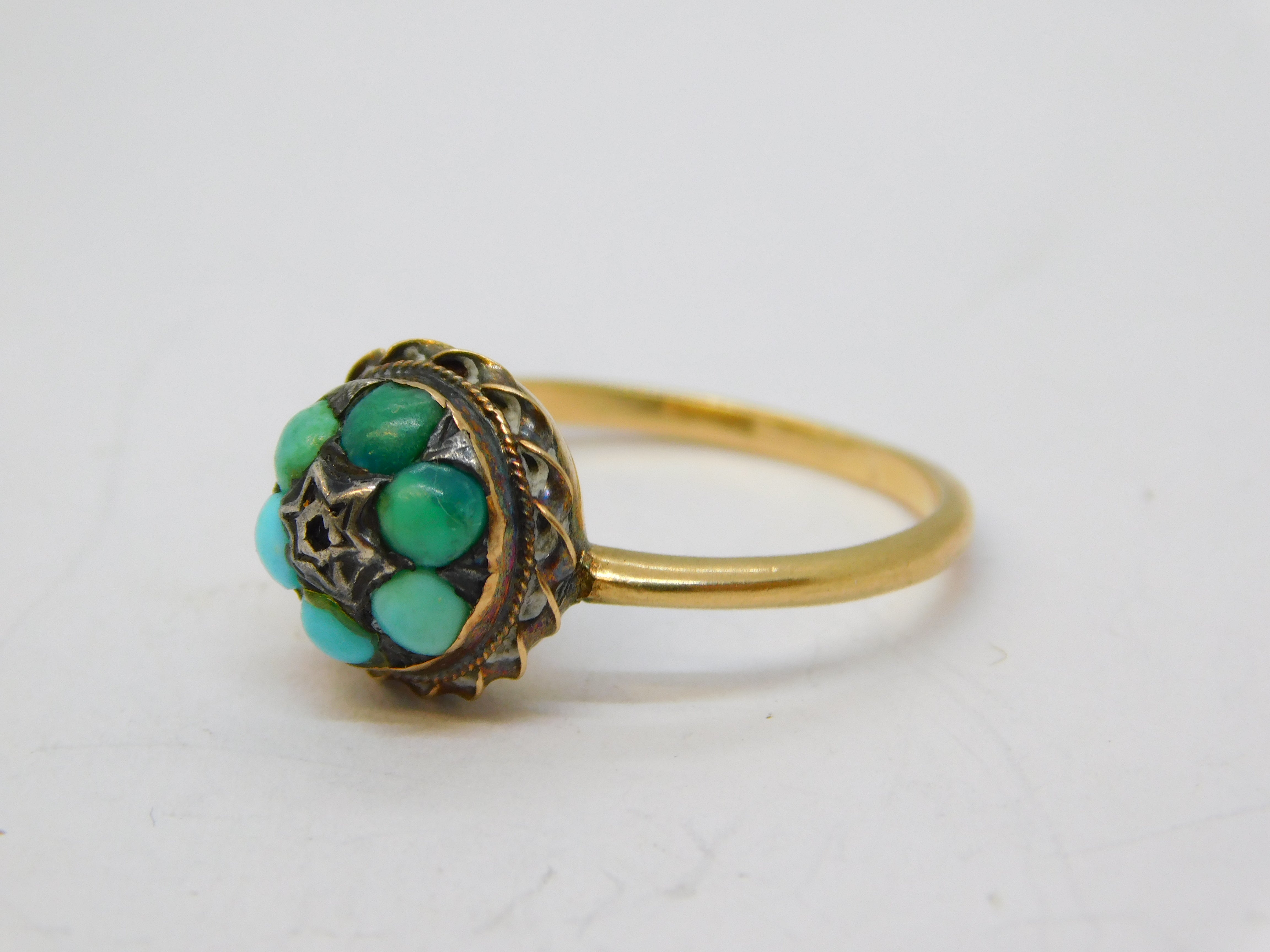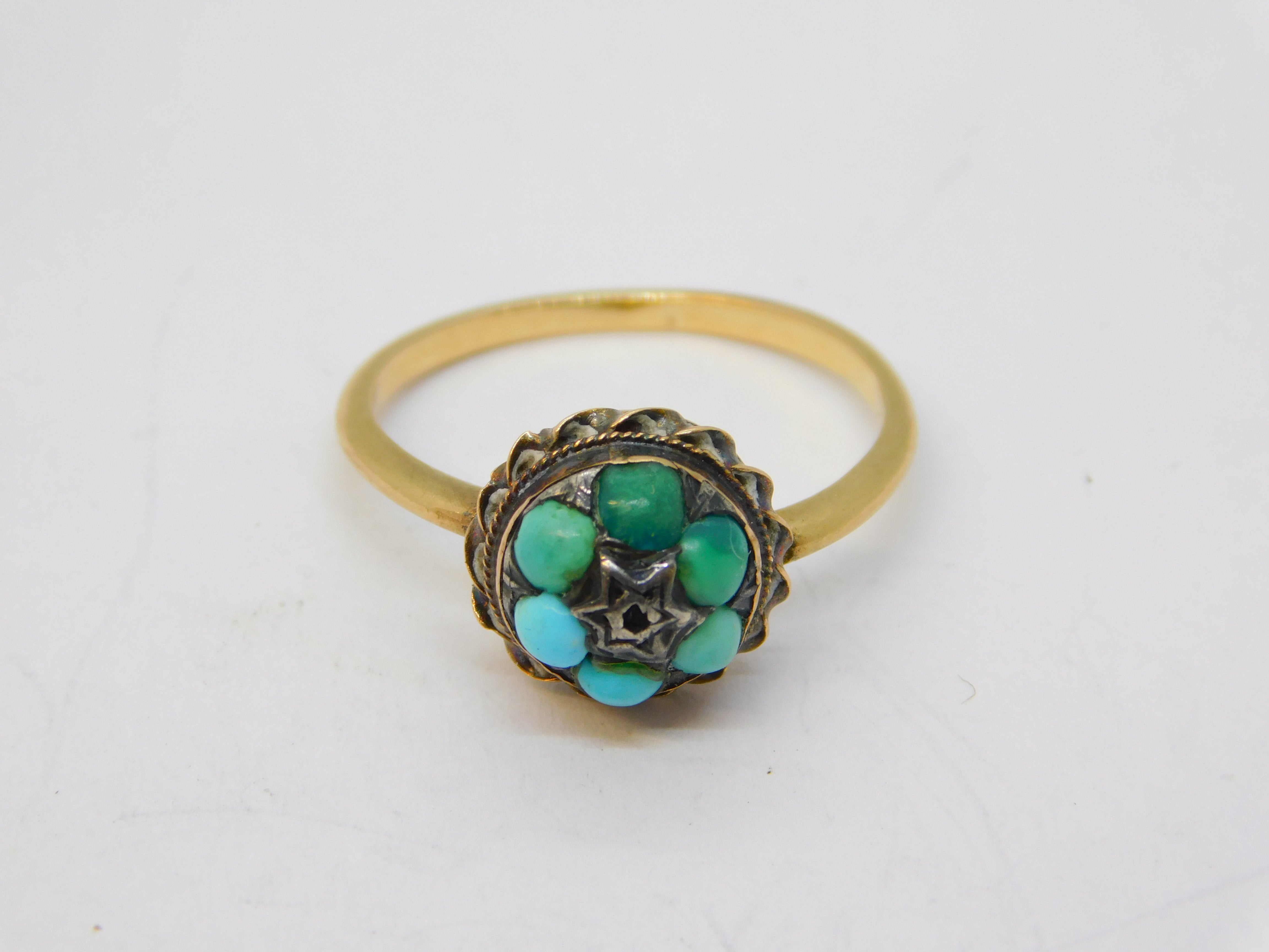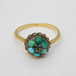 Victorian 9ct Yellow Gold & Turquoise Set Floral Target Ring Antique c1860