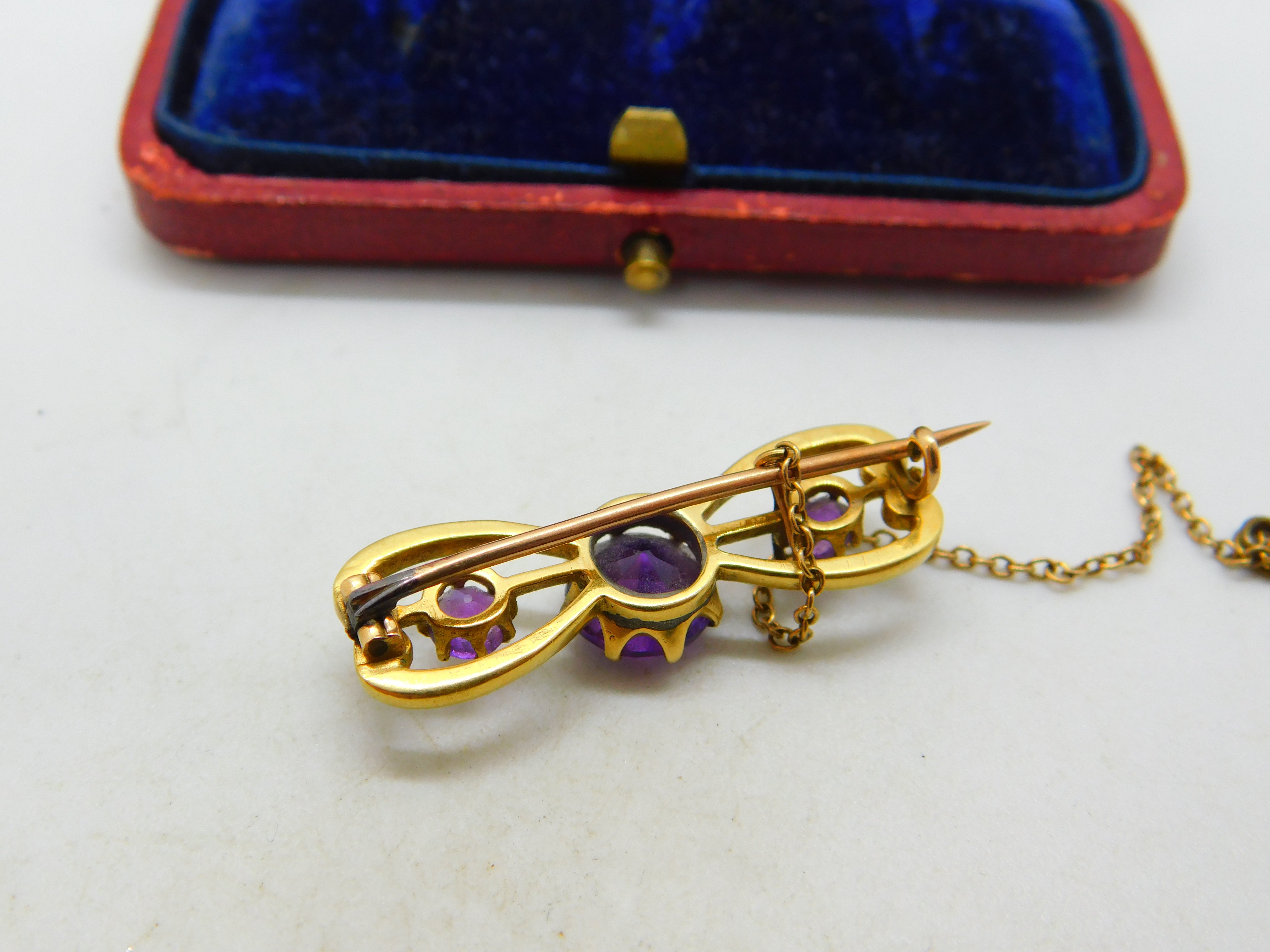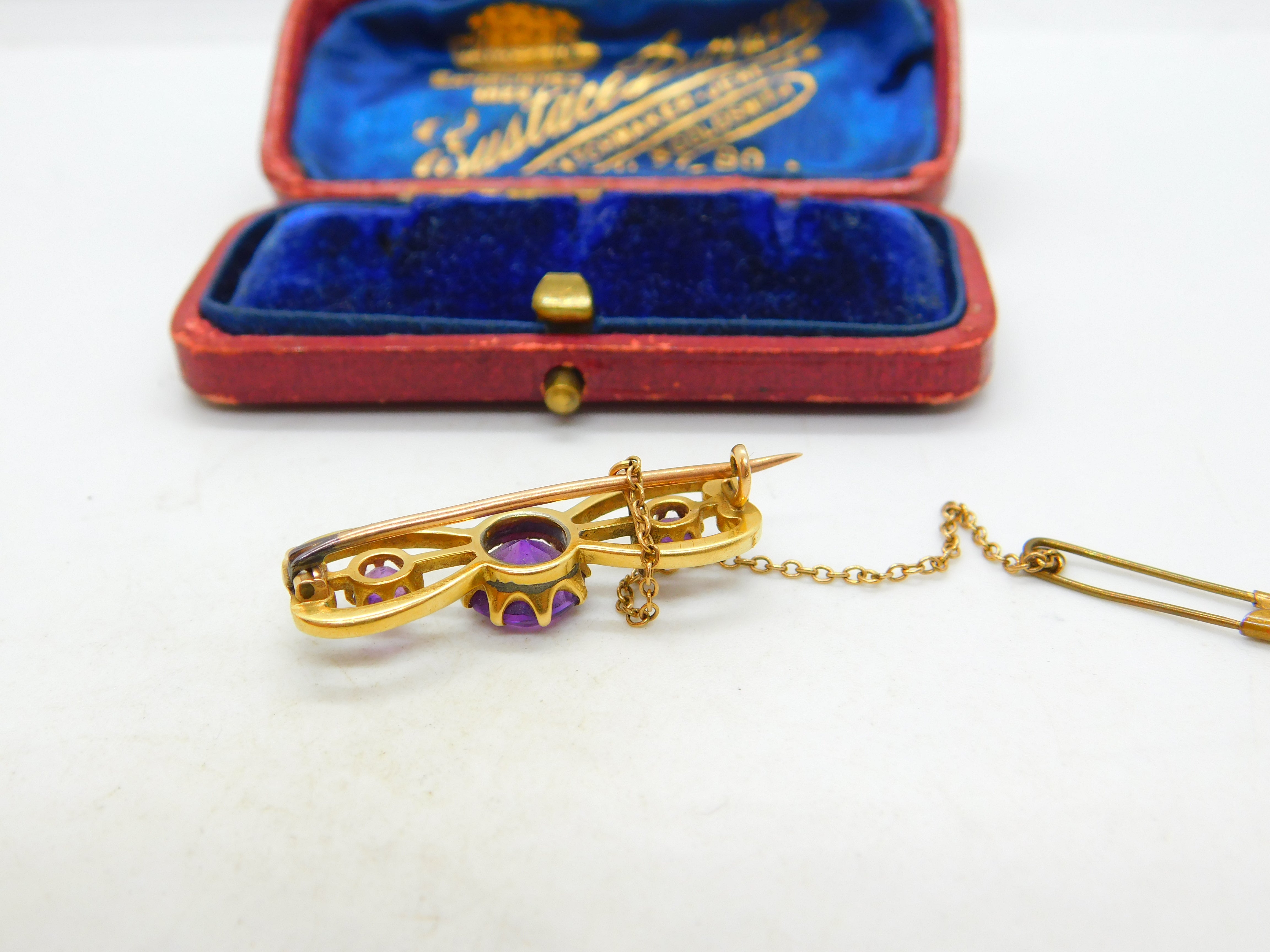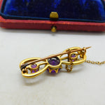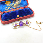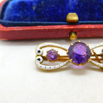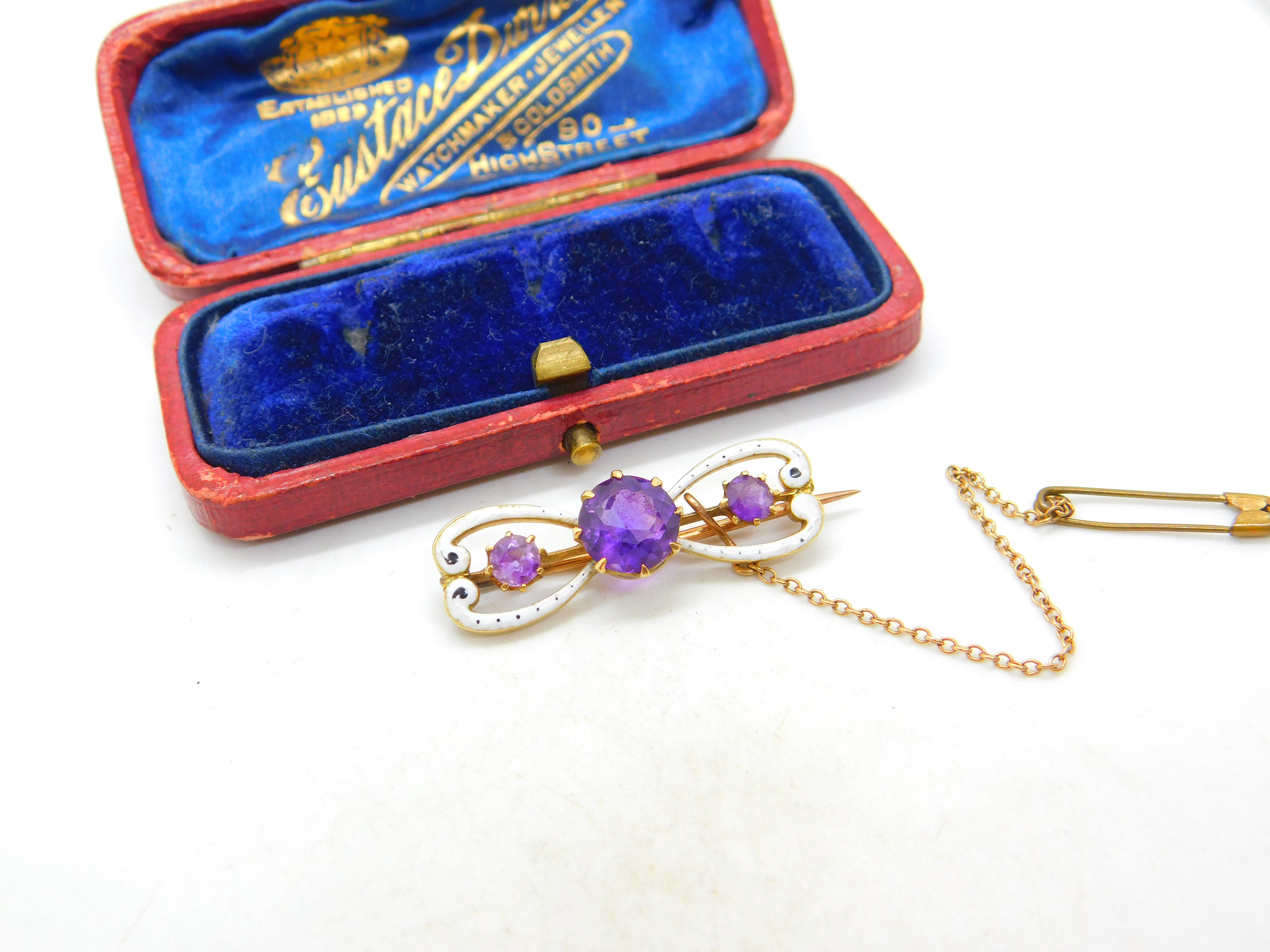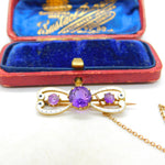 Victorian Art Nouveau 18ct Gold, White Enamel & Amethyst Brooch Antique c1890