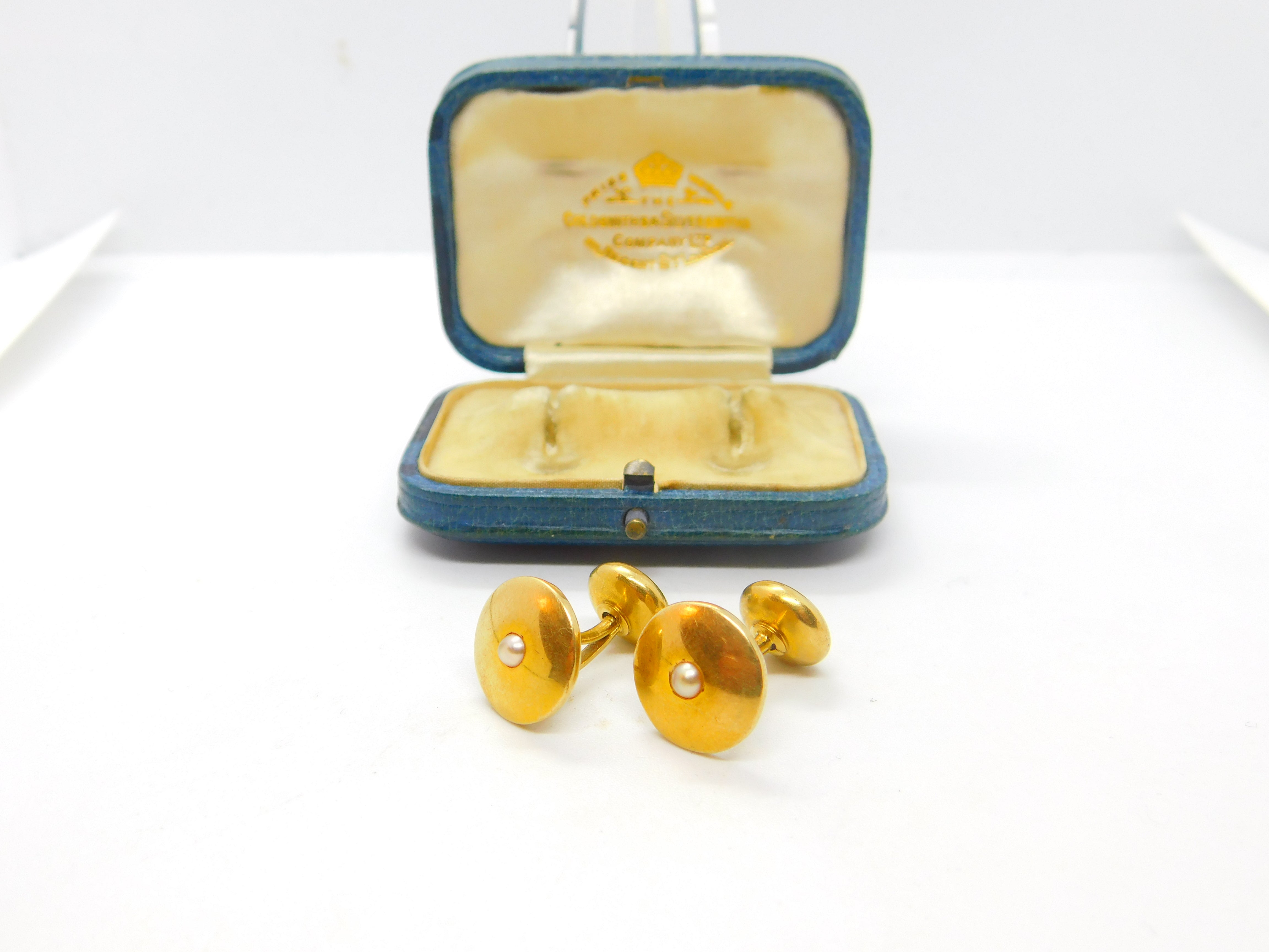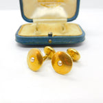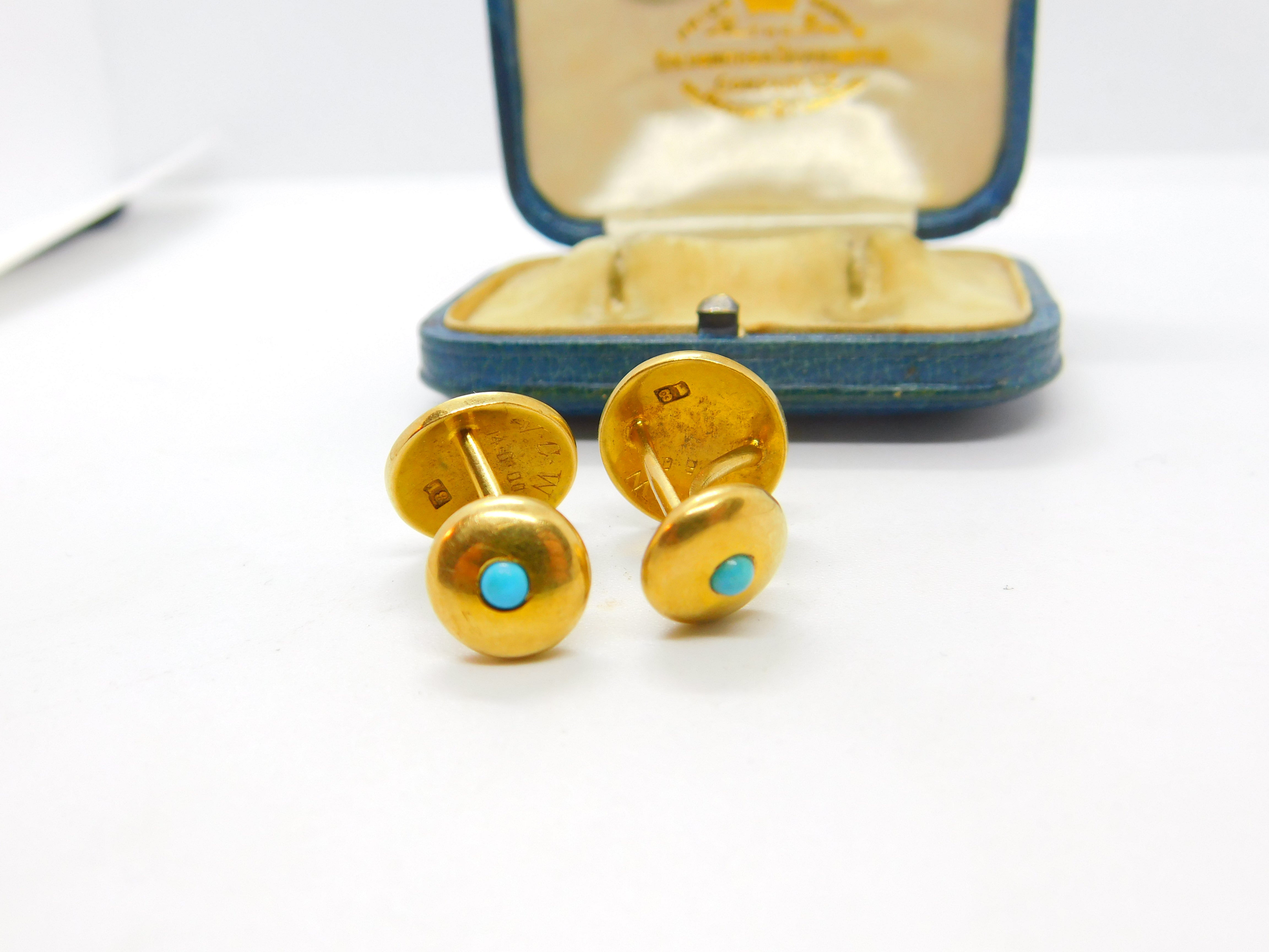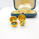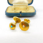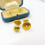 Victorian Boxed Pair of 18ct Gold, Turquoise & Pearl Set Cufflinks Antique 1900