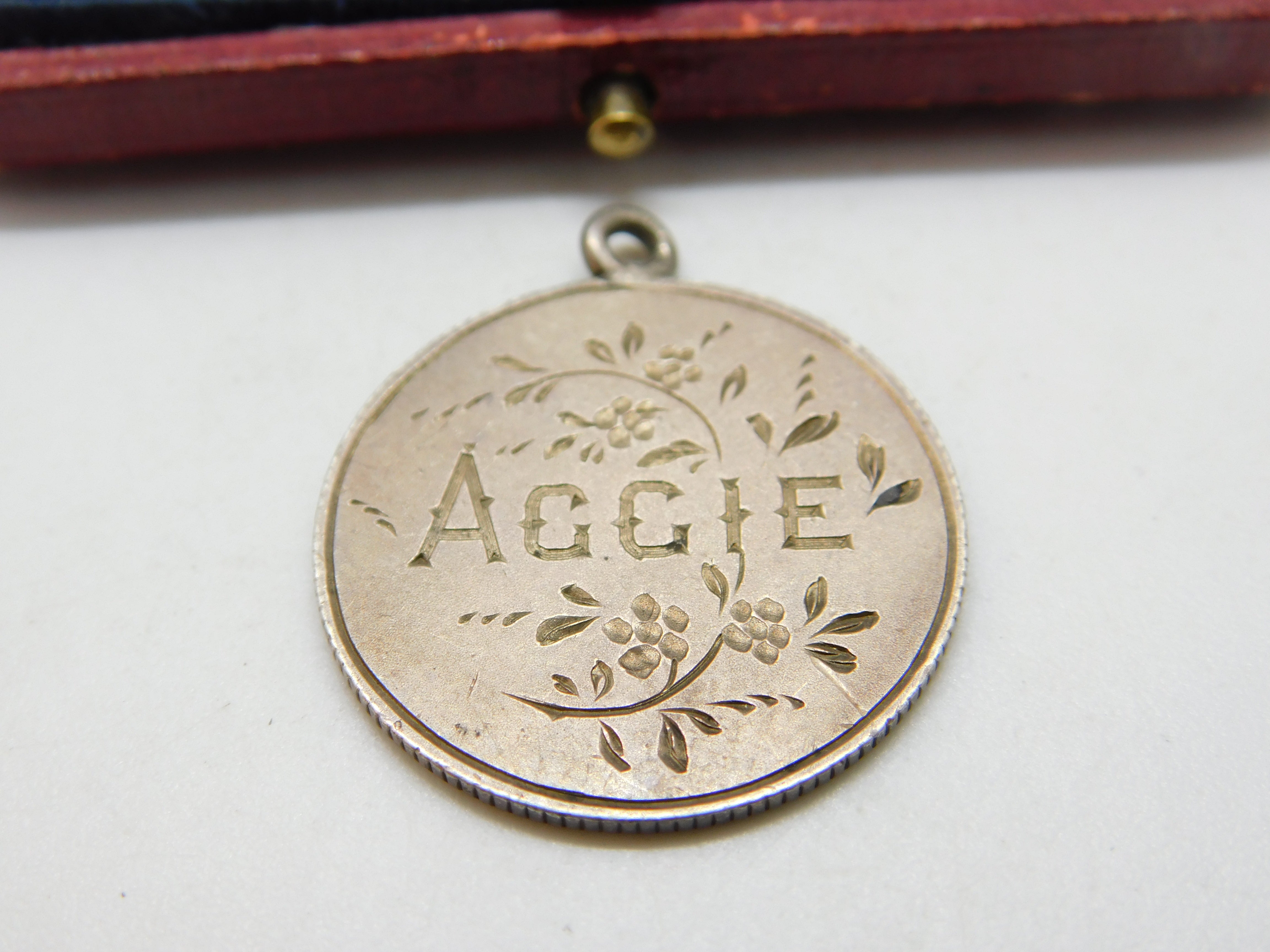 Victorian Canadian Sterling Silver 'Aggie' Love Token Shilling Pendant Antique