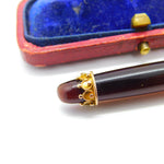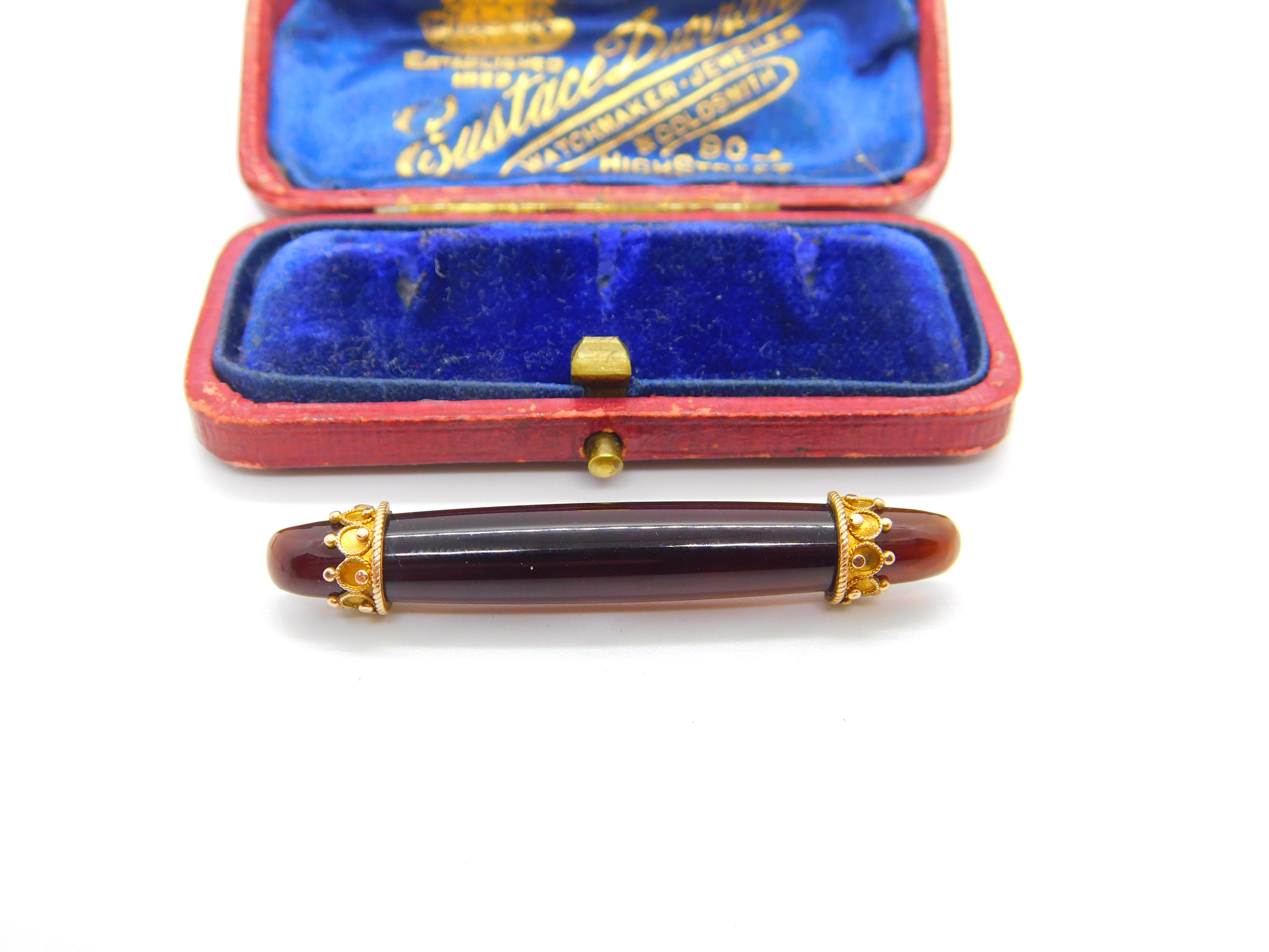 Details: A fantastic and wonderfully designed antique Victorian etruscan style 15ct yellow gold crown adorned tourmaline bar brooch c1880 - the gold has been XRF tested and the tourmaline has a lovely burgundy red hue. This is a wonderful item that would make a perfect gift or addition to any collection. The BOX pictured is for PRESENTATION ONLY and is NOT included in the listings but used to frame the pictures unless specifically stated otherwise.