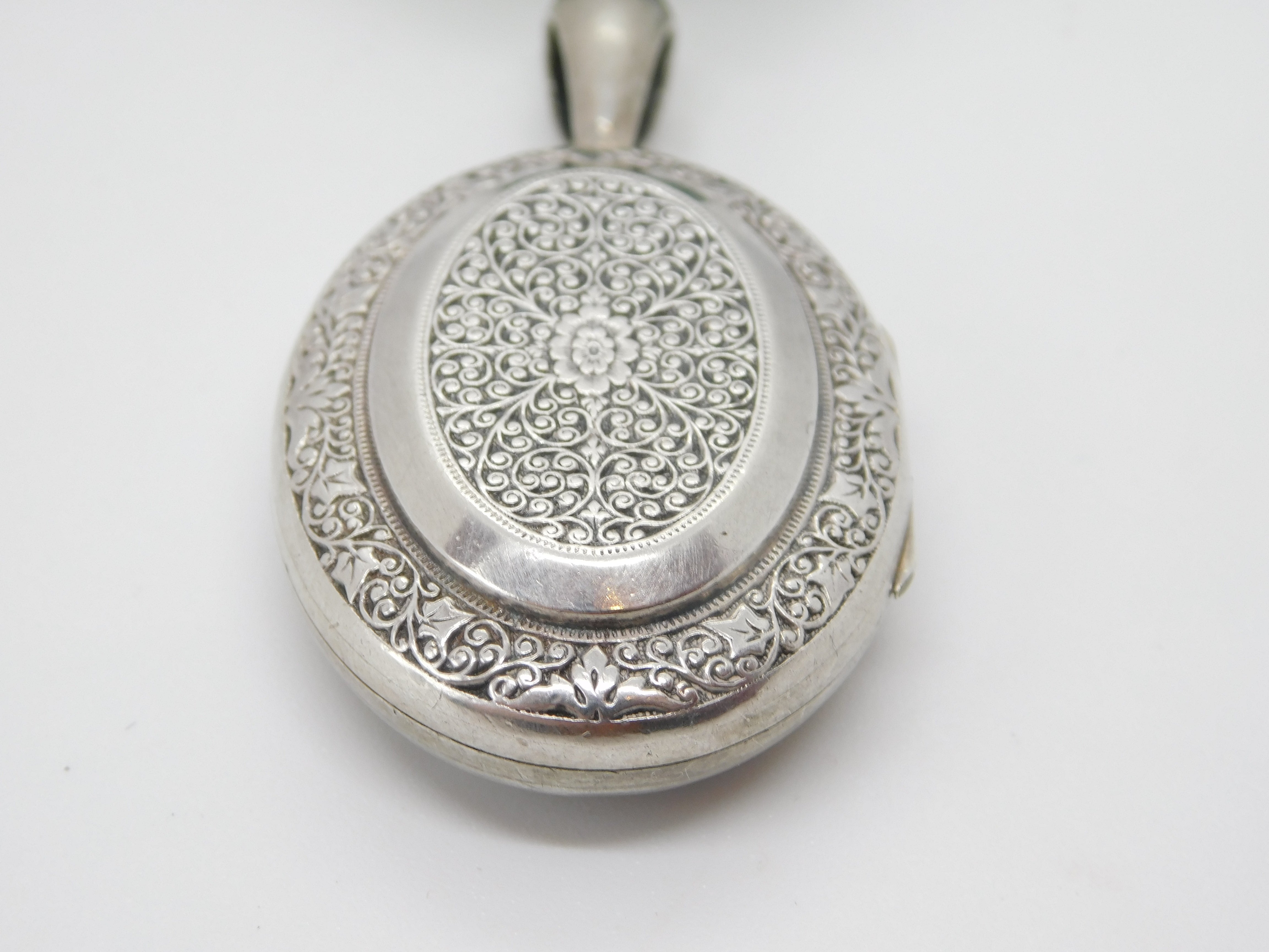 Victorian Kutch Sterling Silver Floral Double Locket Pendant Antique c1890