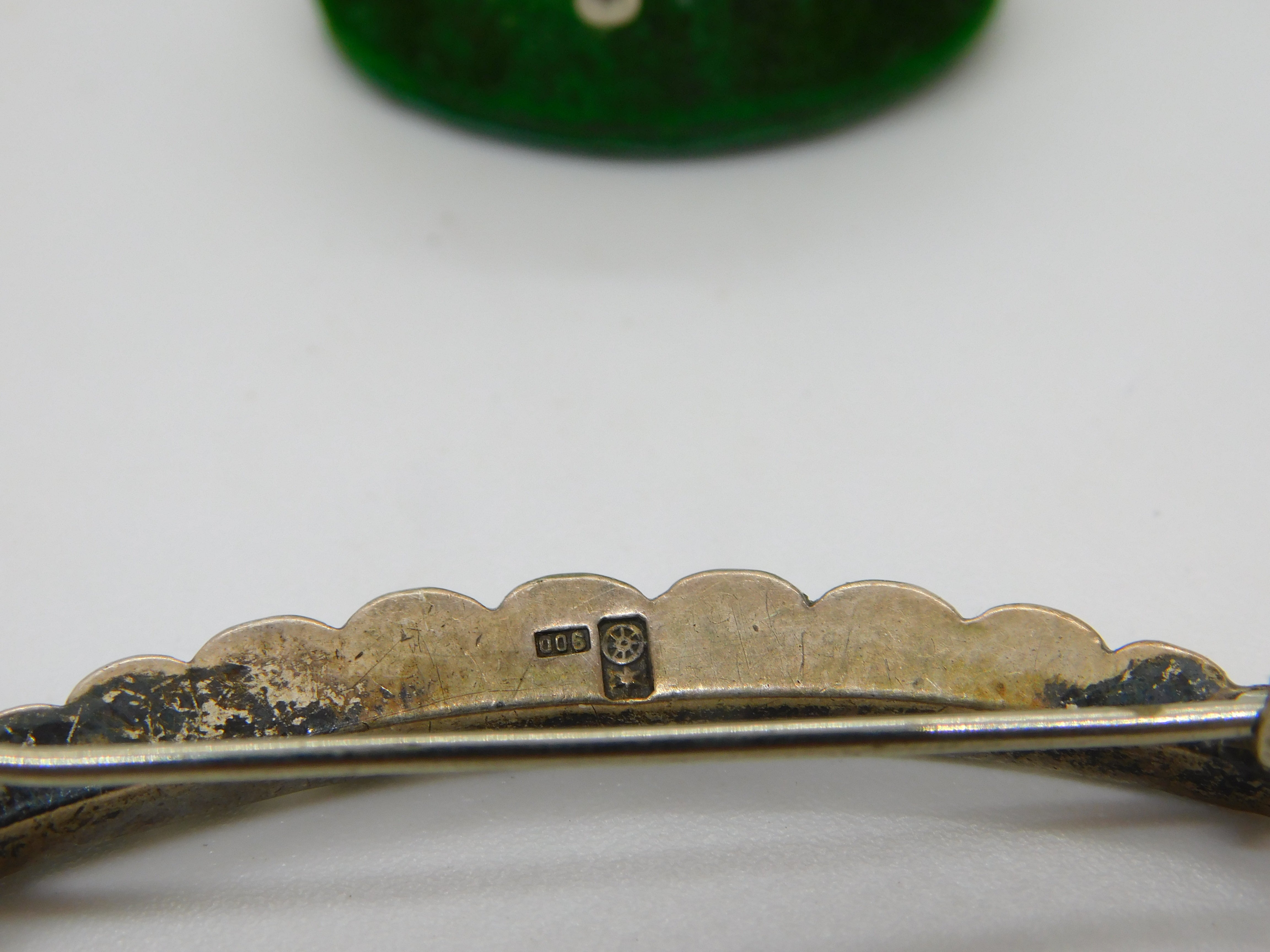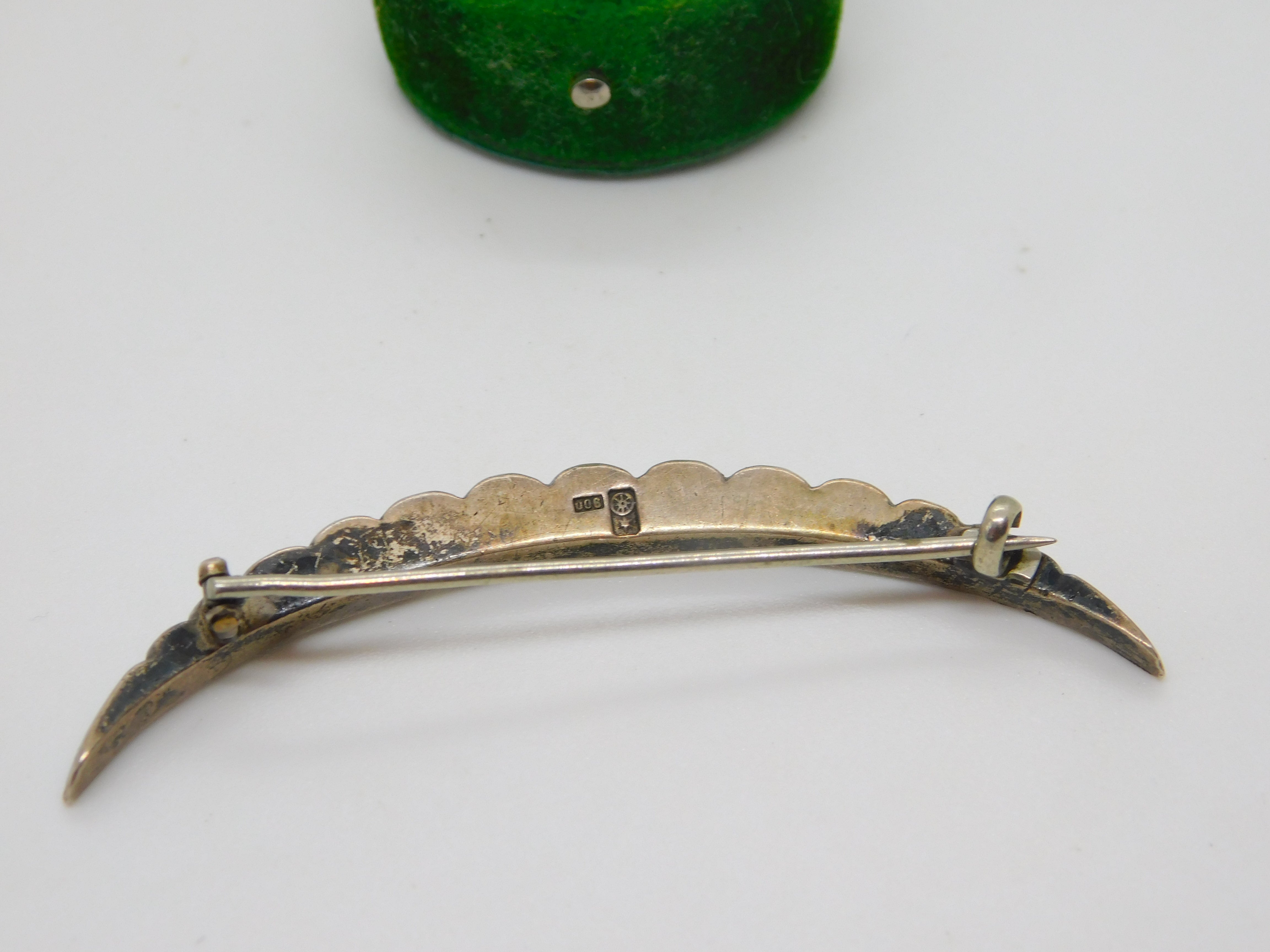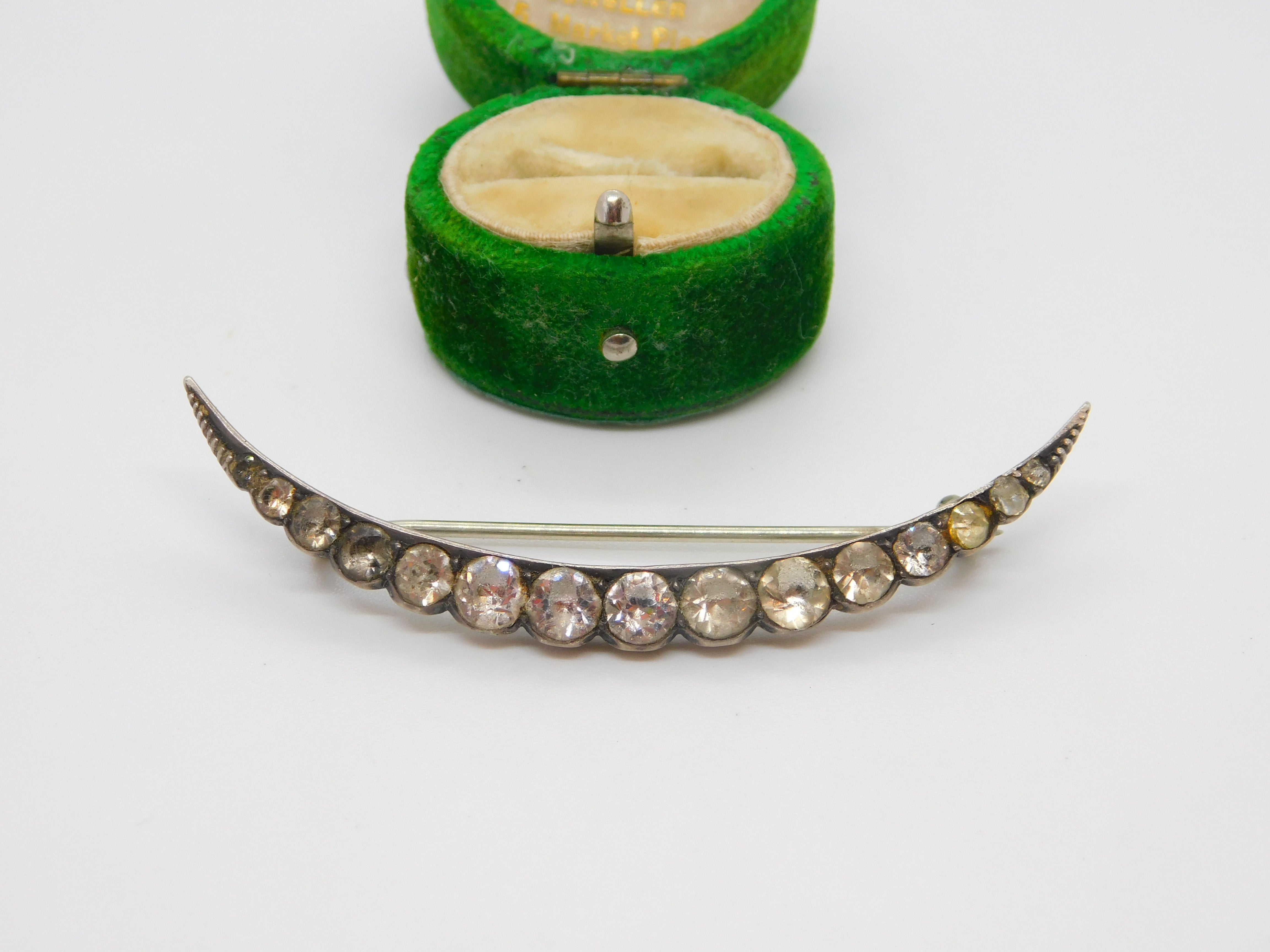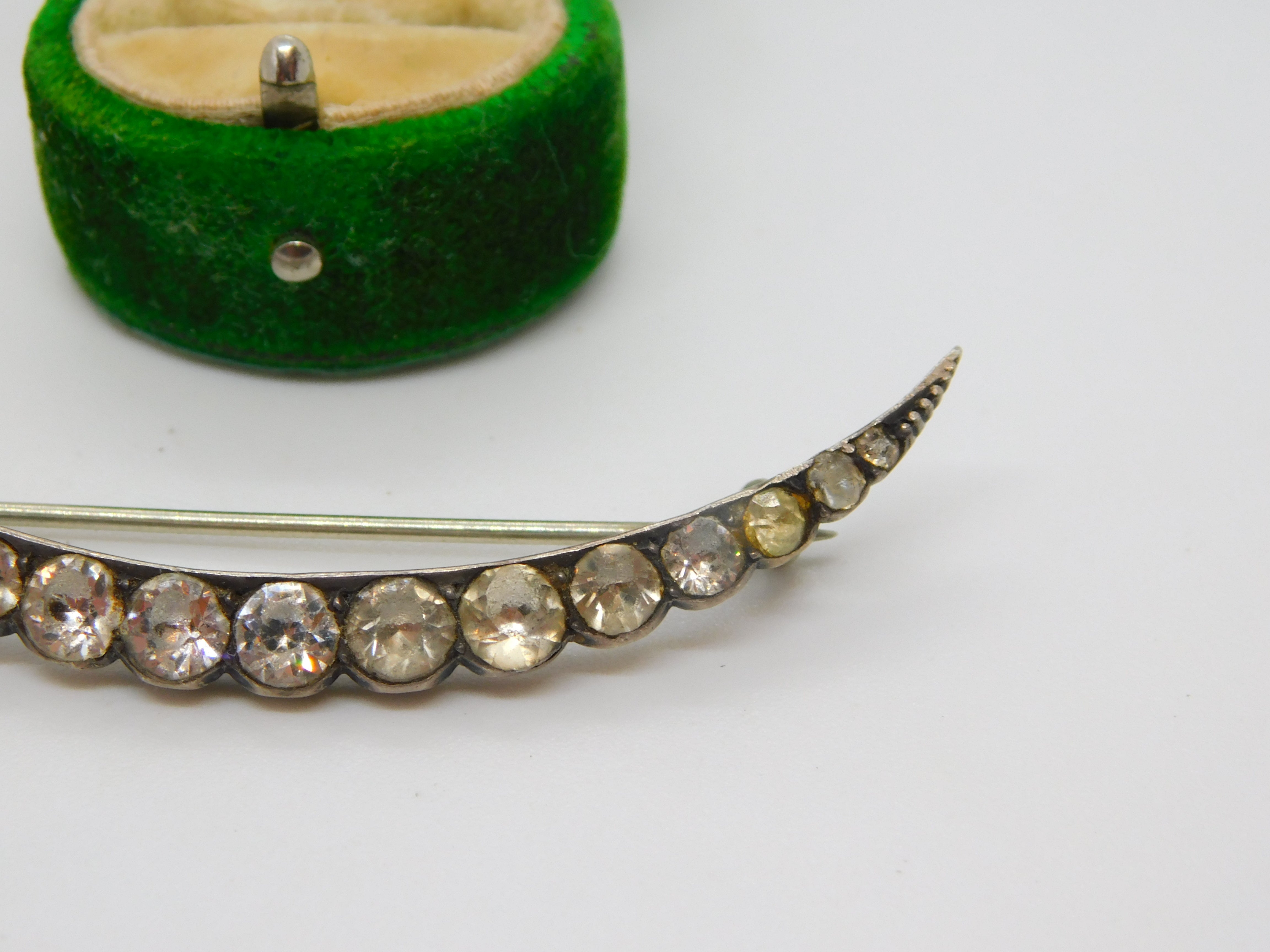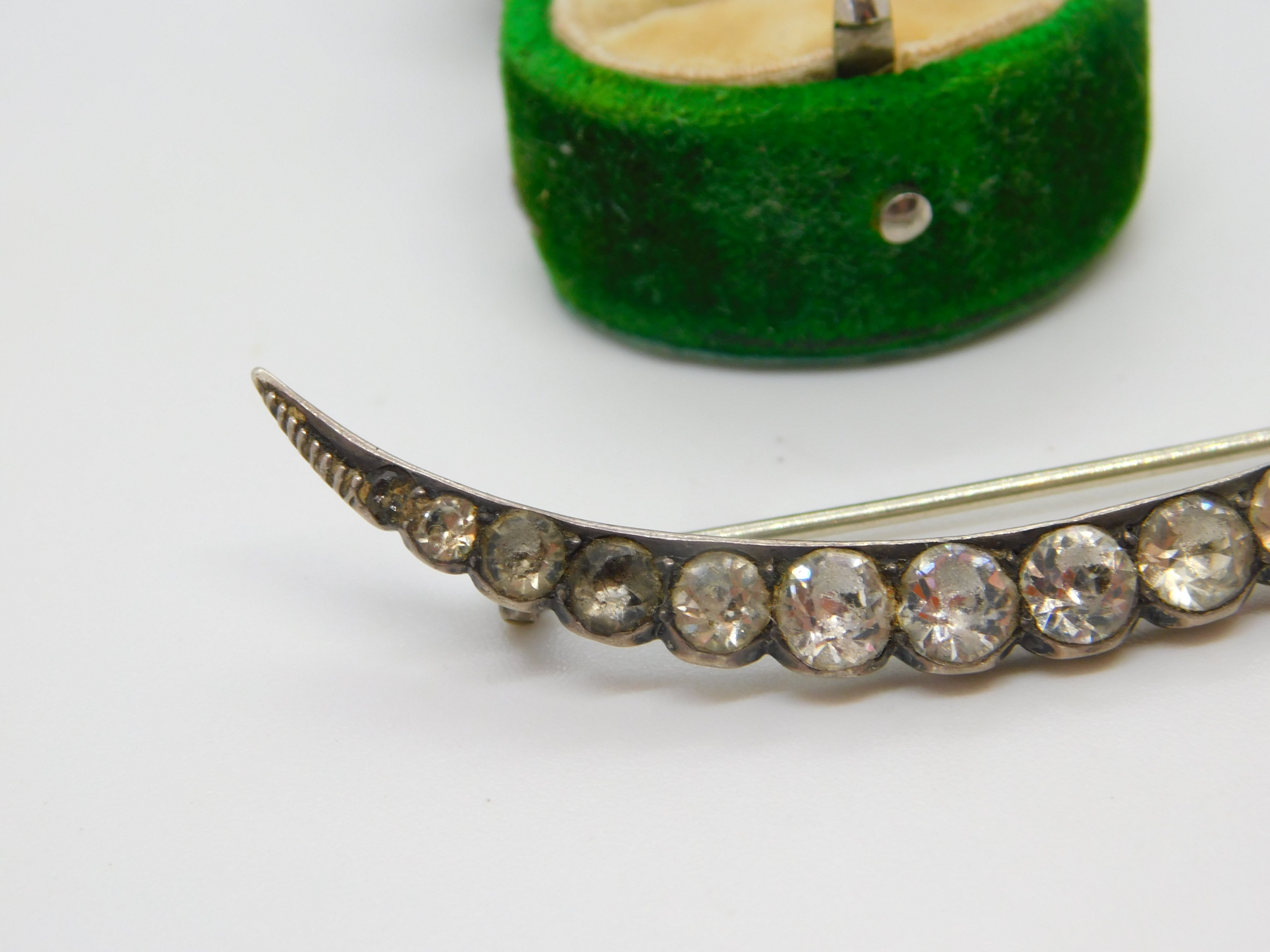 Victorian Large .900 Silver Paste Set Crescent Sweetheart Brooch c1890 Antique