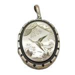 Victorian Large Sterling Silver Aesthetic Bird Sweetheart Locket Antique c1880