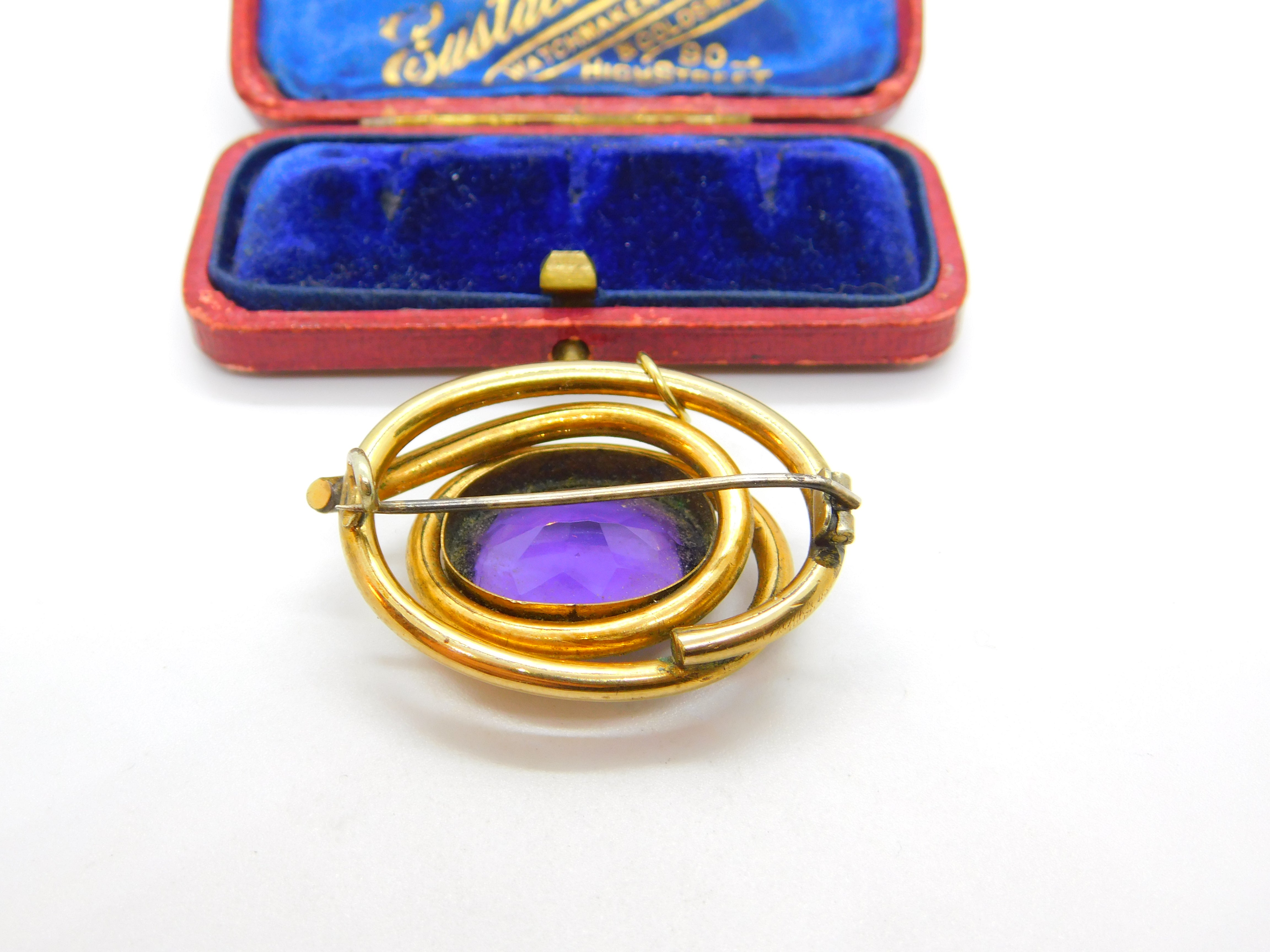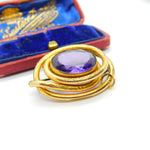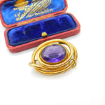 Victorian Pinchbeck Gold & Faceted Amethyst Swirl Brooch Antique c1860