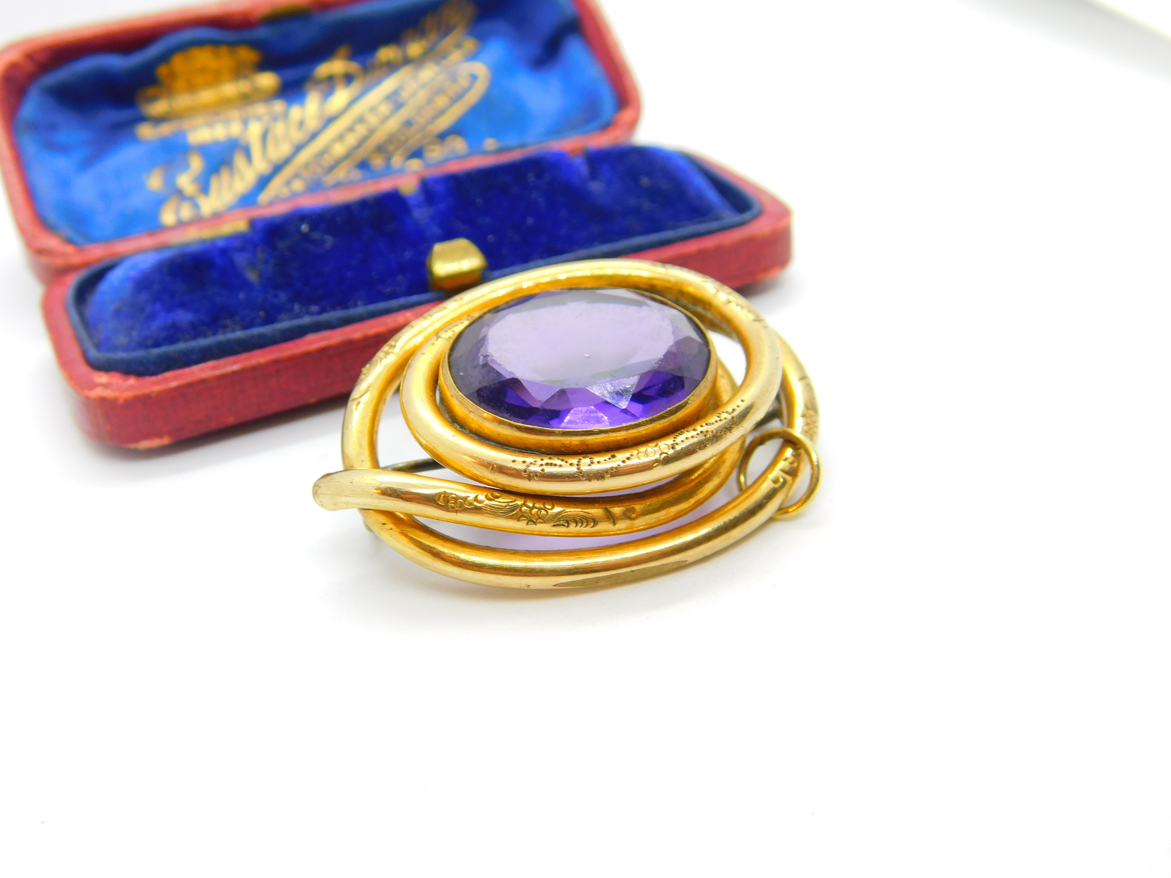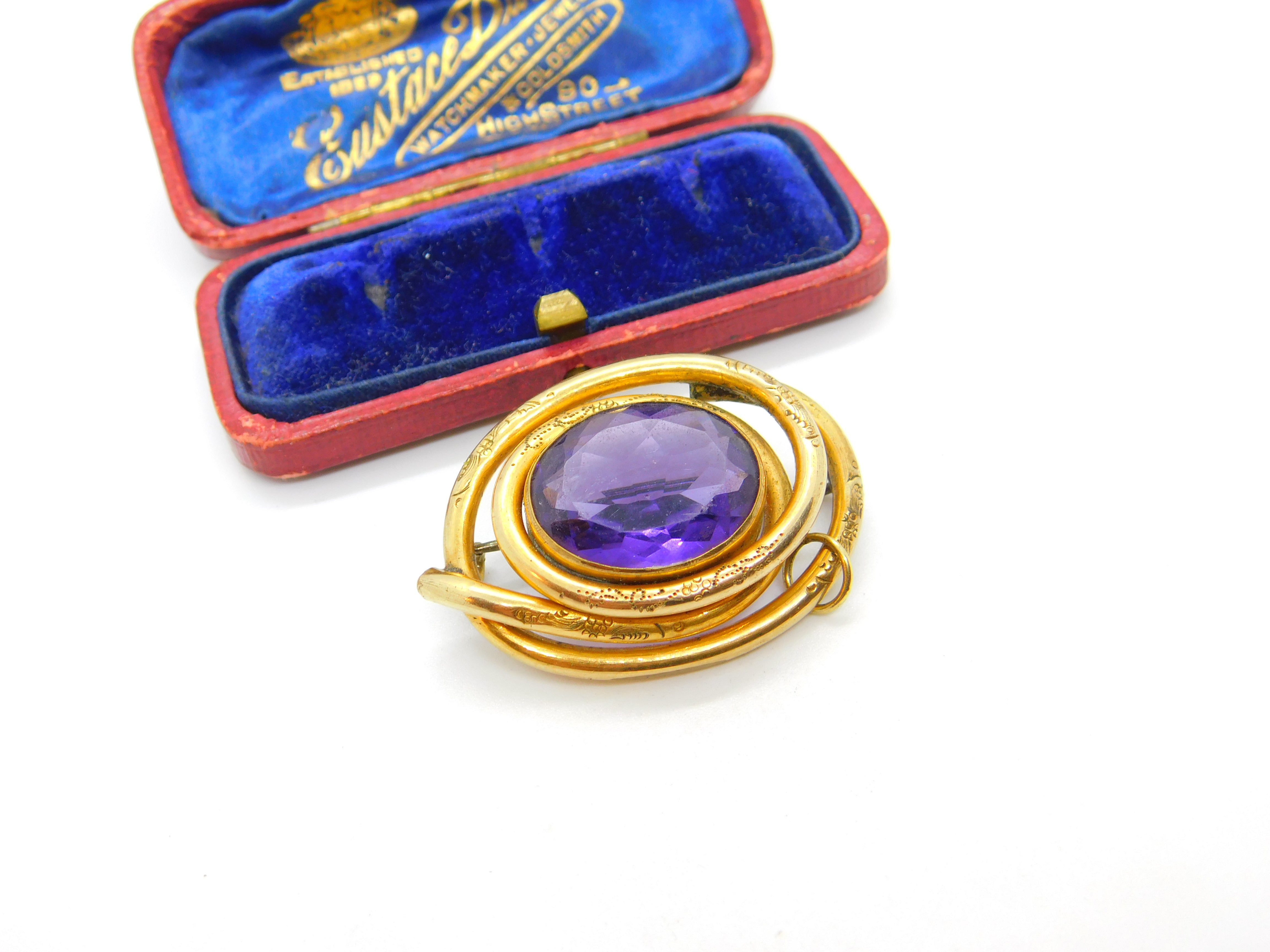 Details: A fantastic and wonderfully designed antique Victorian pinchbeck gold and faceted amethyst swirl form brooch with lovely detailing c1860. This is a wonderful item that would make a perfect gift or addition to any collection. The BOX pictured is for PRESENTATION ONLY and is NOT included in the listings but used to frame the pictures unless specifically stated otherwise.