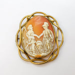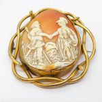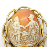 Details: A fantastic and wonderfully designed antique Victorian pinchbeck mounted large carved shell cameo depicting a soldier shaking the hand of a classical god c1880, a wonderful unusual carving. This is a wonderful item that would make a perfect gift or addition to any collection. We are more than happy to provide XRF reports for items upon request.