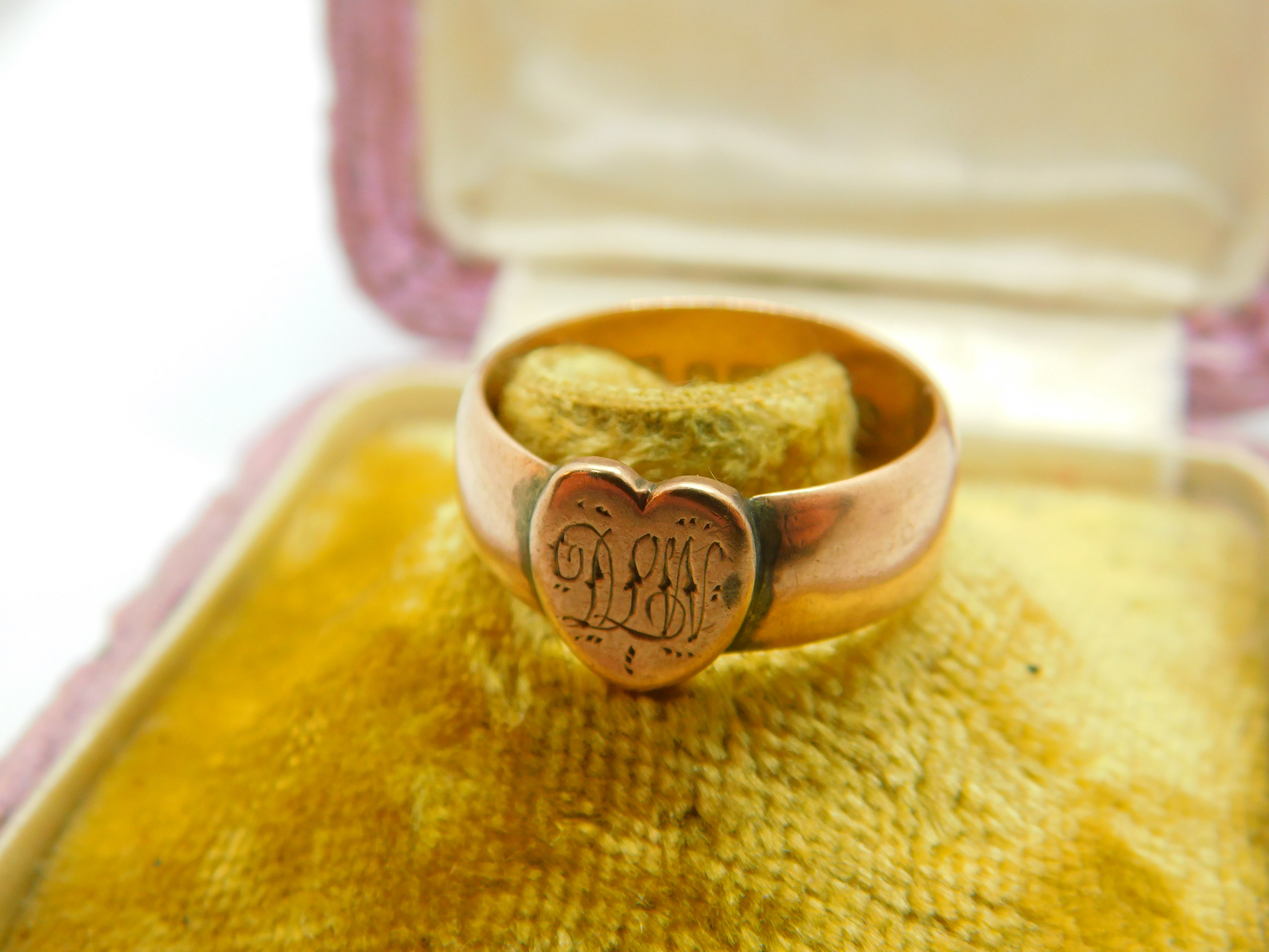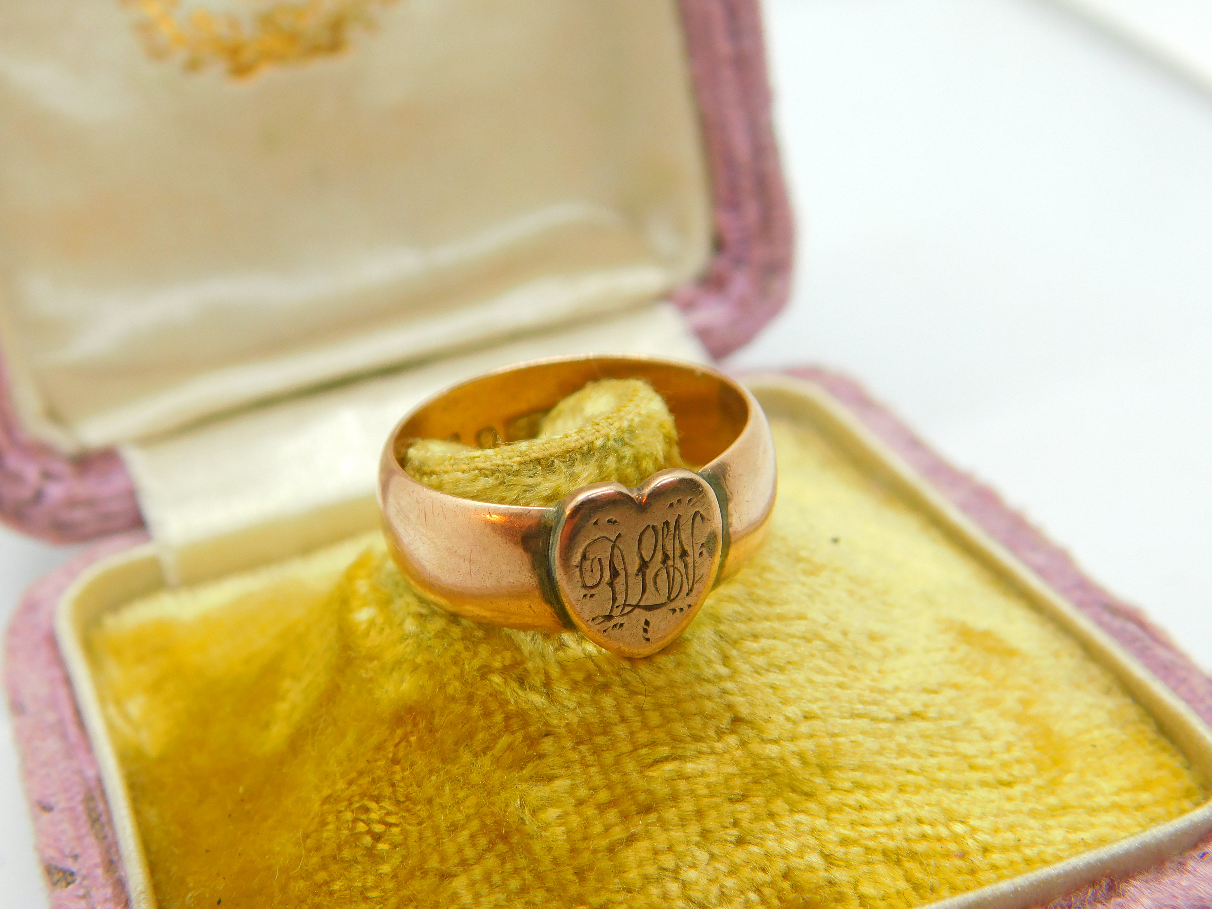Details: A fantastic and wonderfully designed antique Victorian 9ct rose gold heart shaped signet ring with initials to the front and charming detail hallmarked Birmingham 1876 to the inner band. This is a wonderful item that would make a perfect gift or addition to any collection. The BOX pictured is for PRESENTATION ONLY and is NOT included in the listings but used to frame the pictures unless specifically stated otherwise.