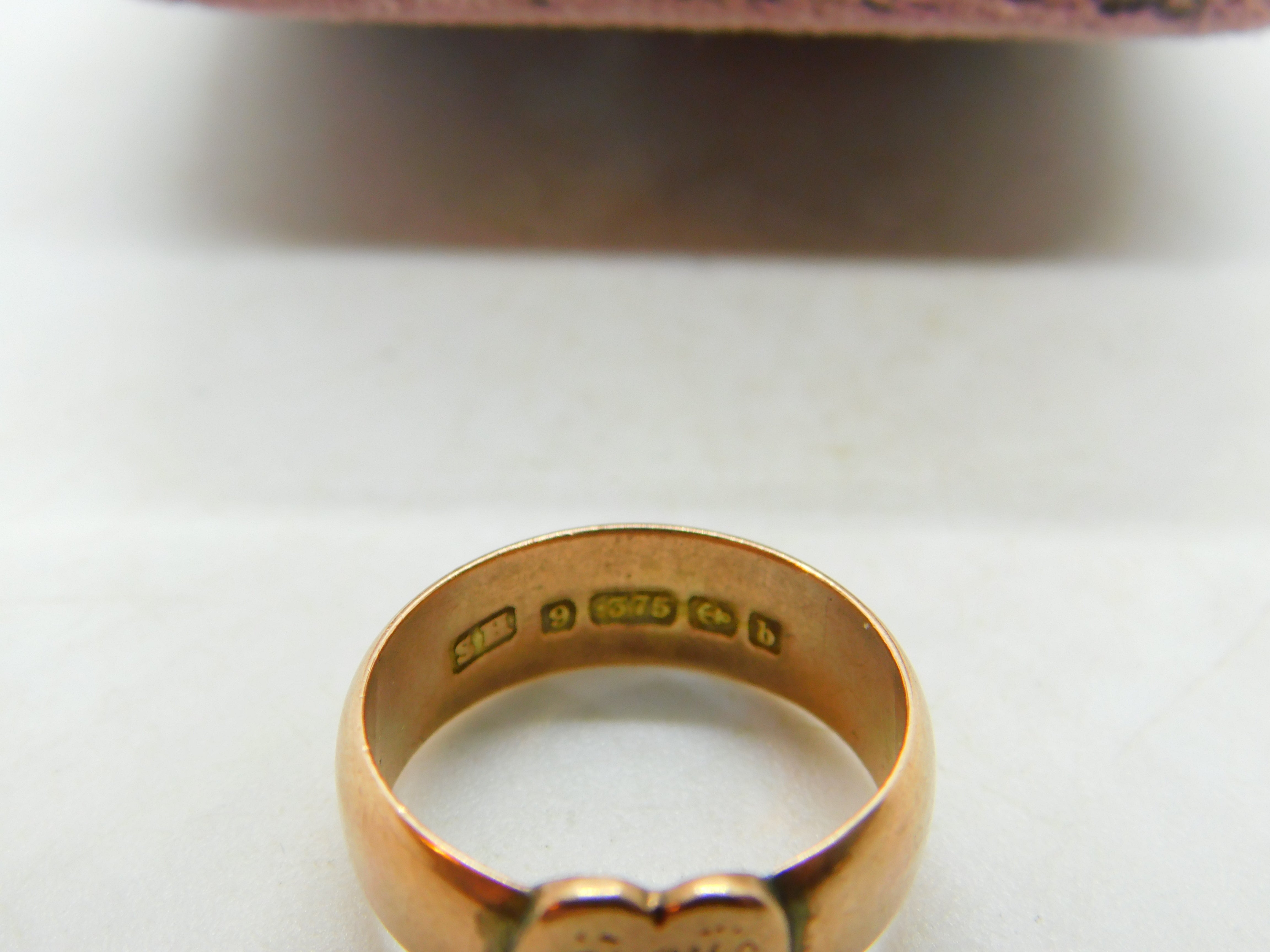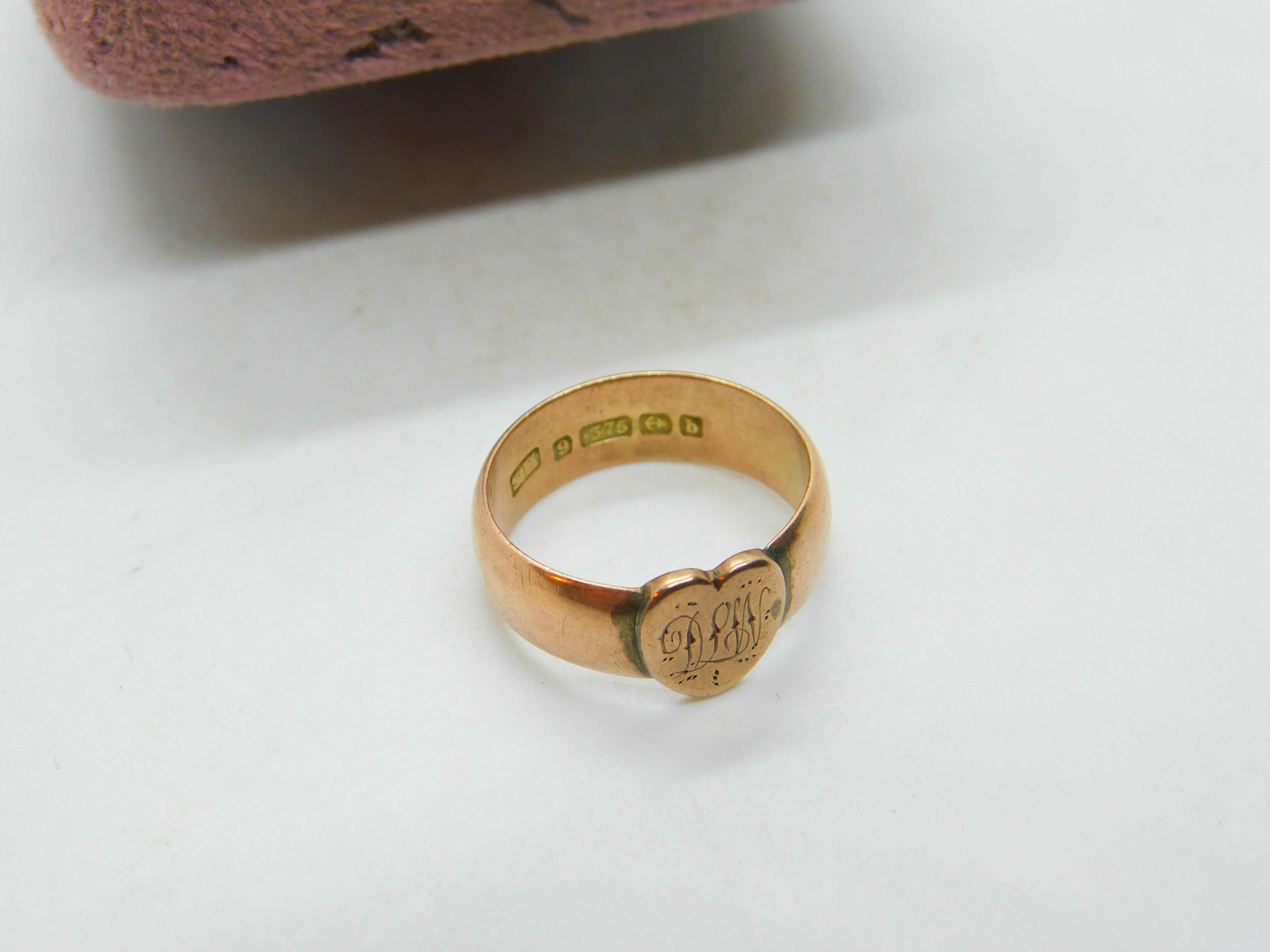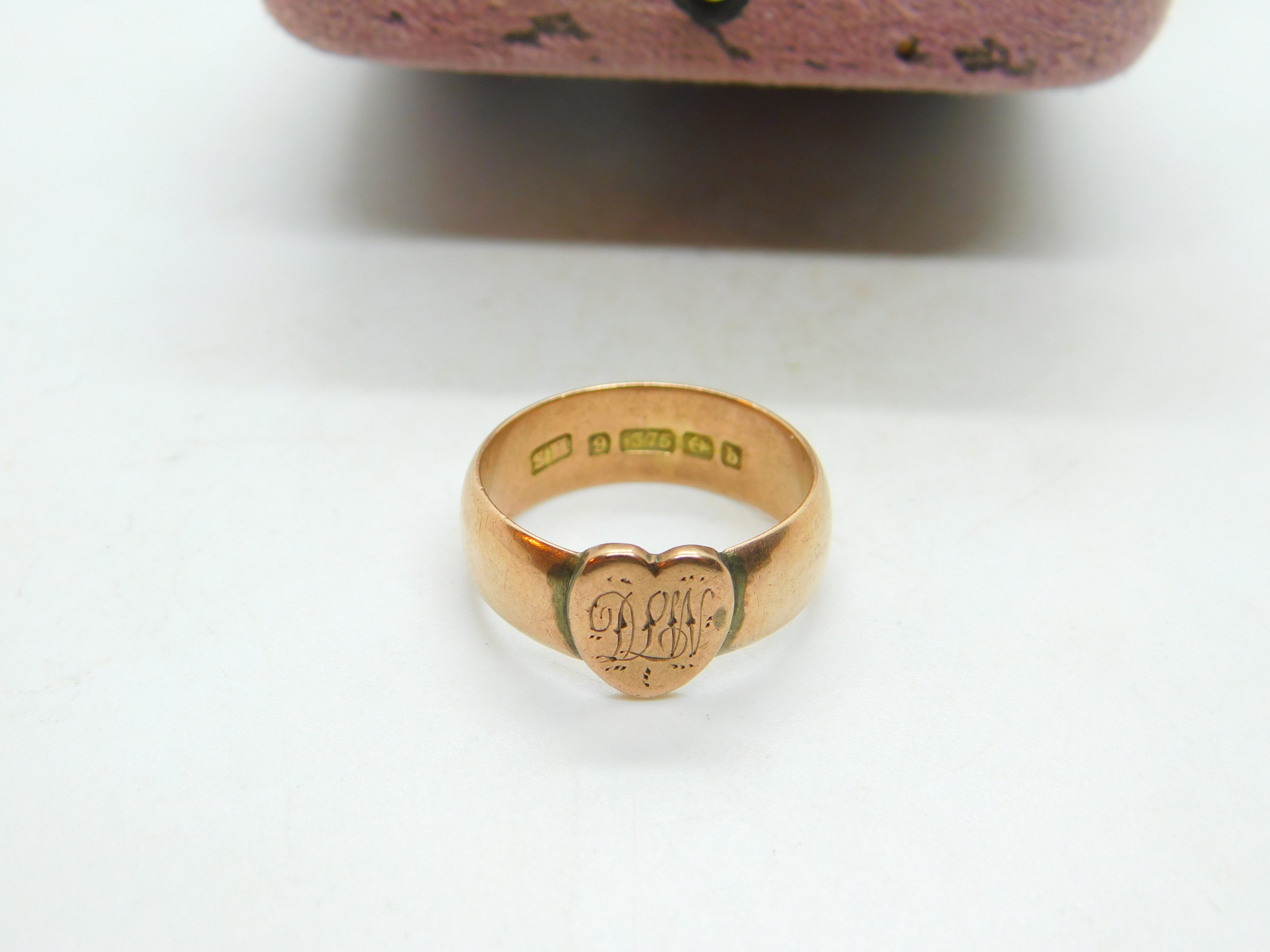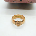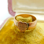 Victorian Rose Gold Heart Form Signet Ring Antique 1876 Birmingham Initialled