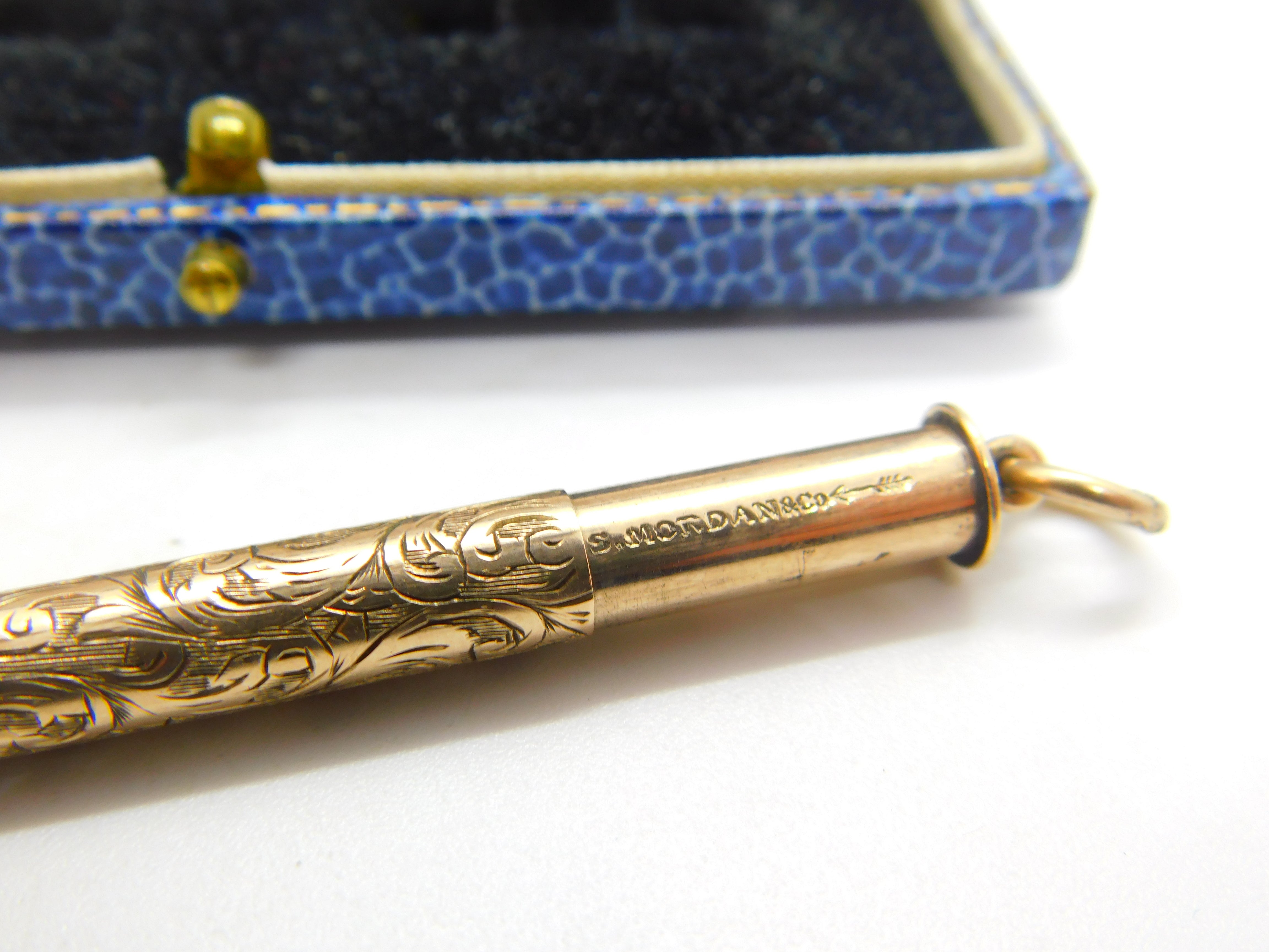 Victorian Sampson Mordan 9ct Gold Floral Propelling Pencil Fob Antique c1900