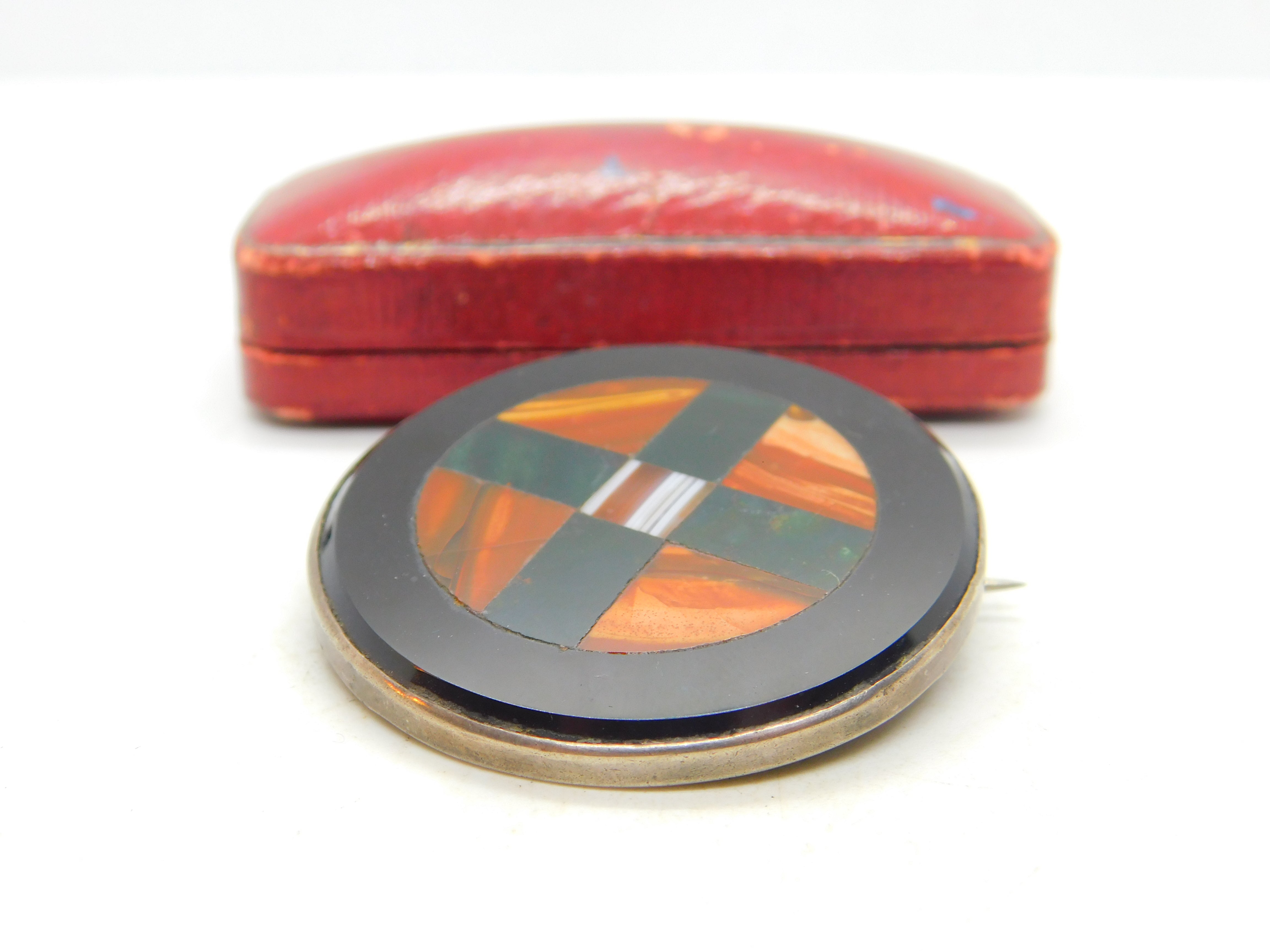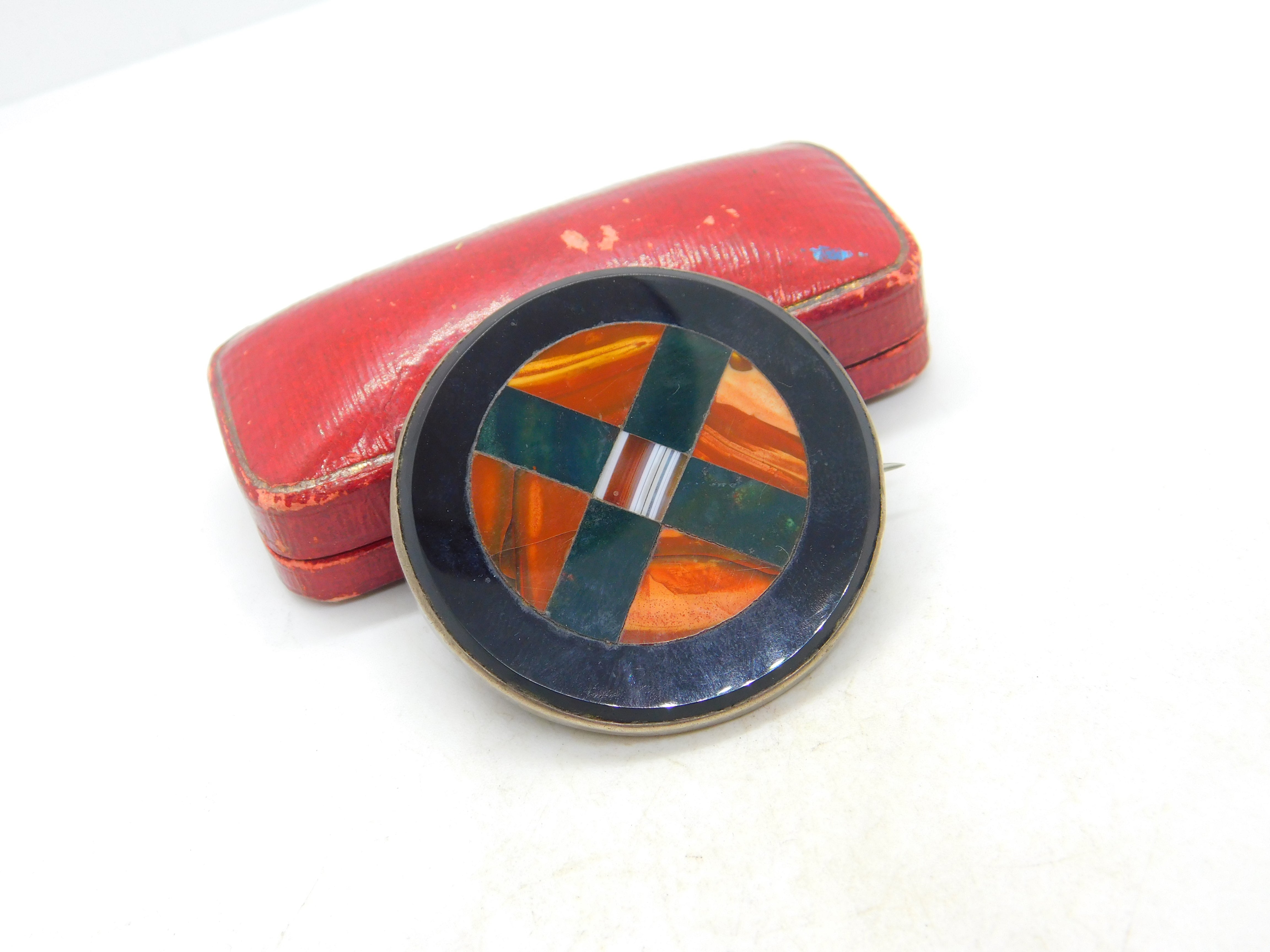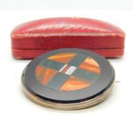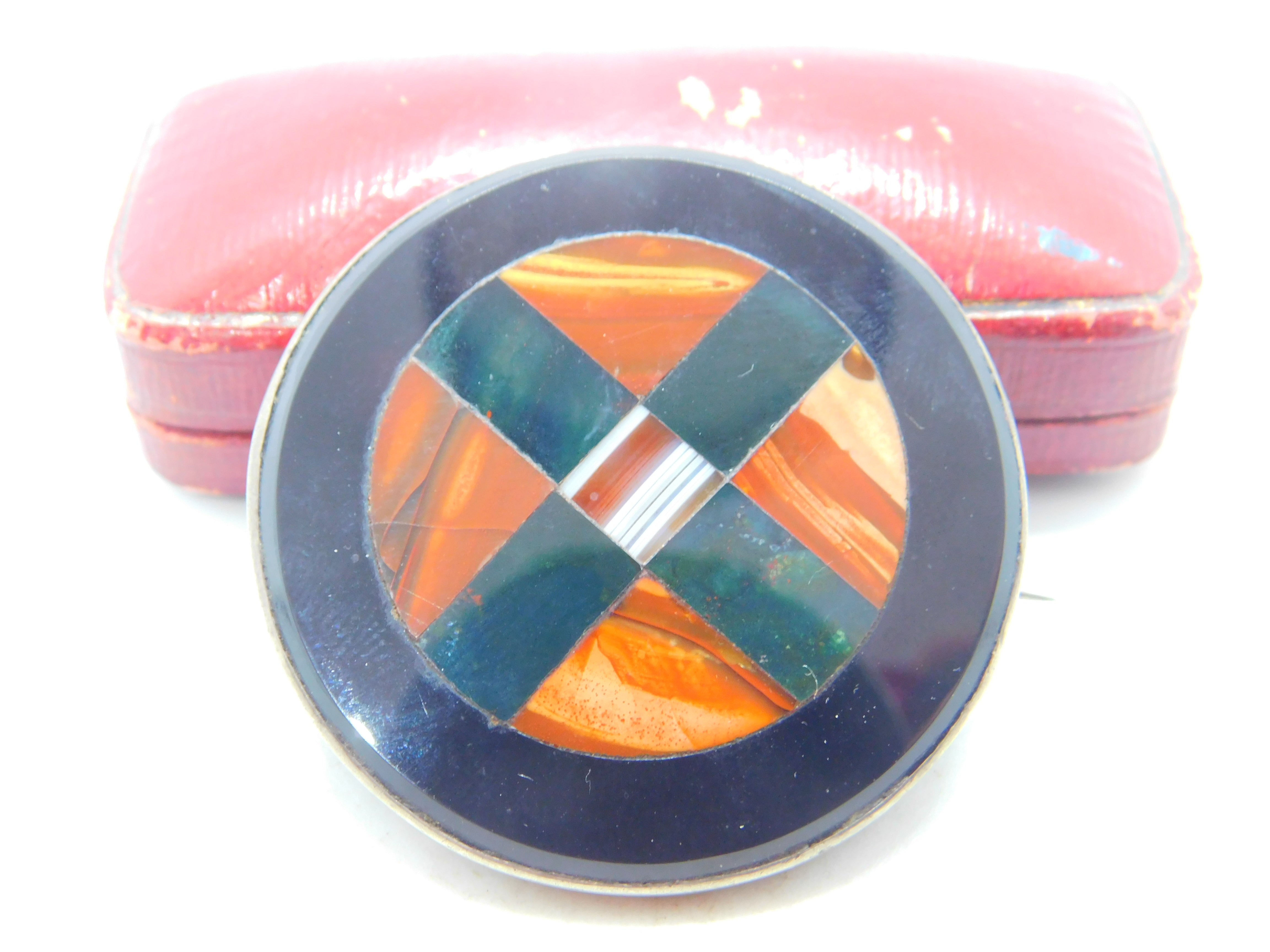 Details: A fantastic and wonderfully designed antique early Victorian Scottish sterling silver brooch pin inlaid with onyx and red banded agate c1860 - the silver has been XRF tested. This is a wonderful item that would make a perfect gift or addition to any collection. The BOX pictured is for PRESENTATION ONLY and is NOT included in the listings but used to frame the pictures unless specifically stated otherwise.