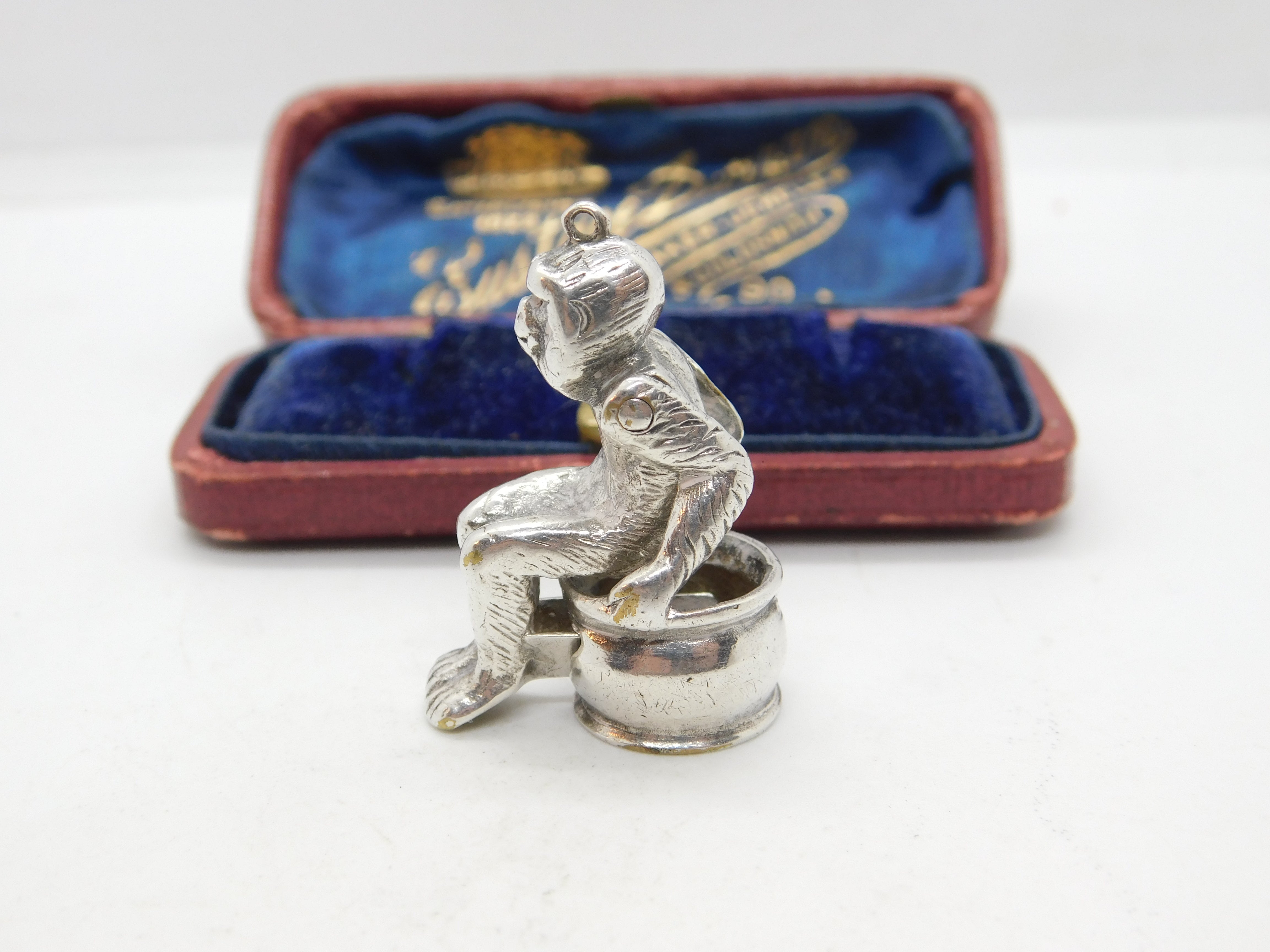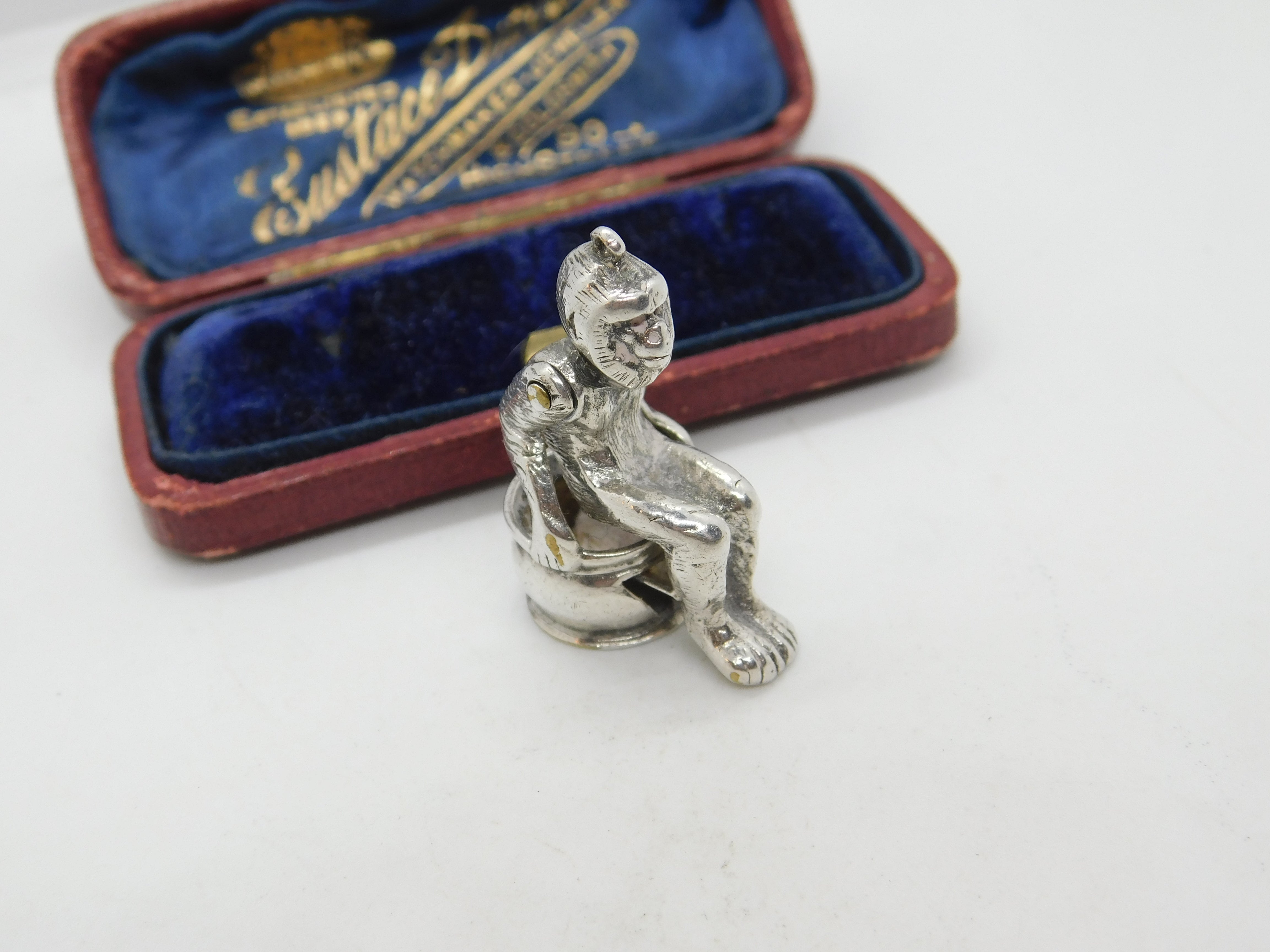 Victorian Silver Plated Monkey on the Loo Novelty Cigar Cutter Fob Antique c1860