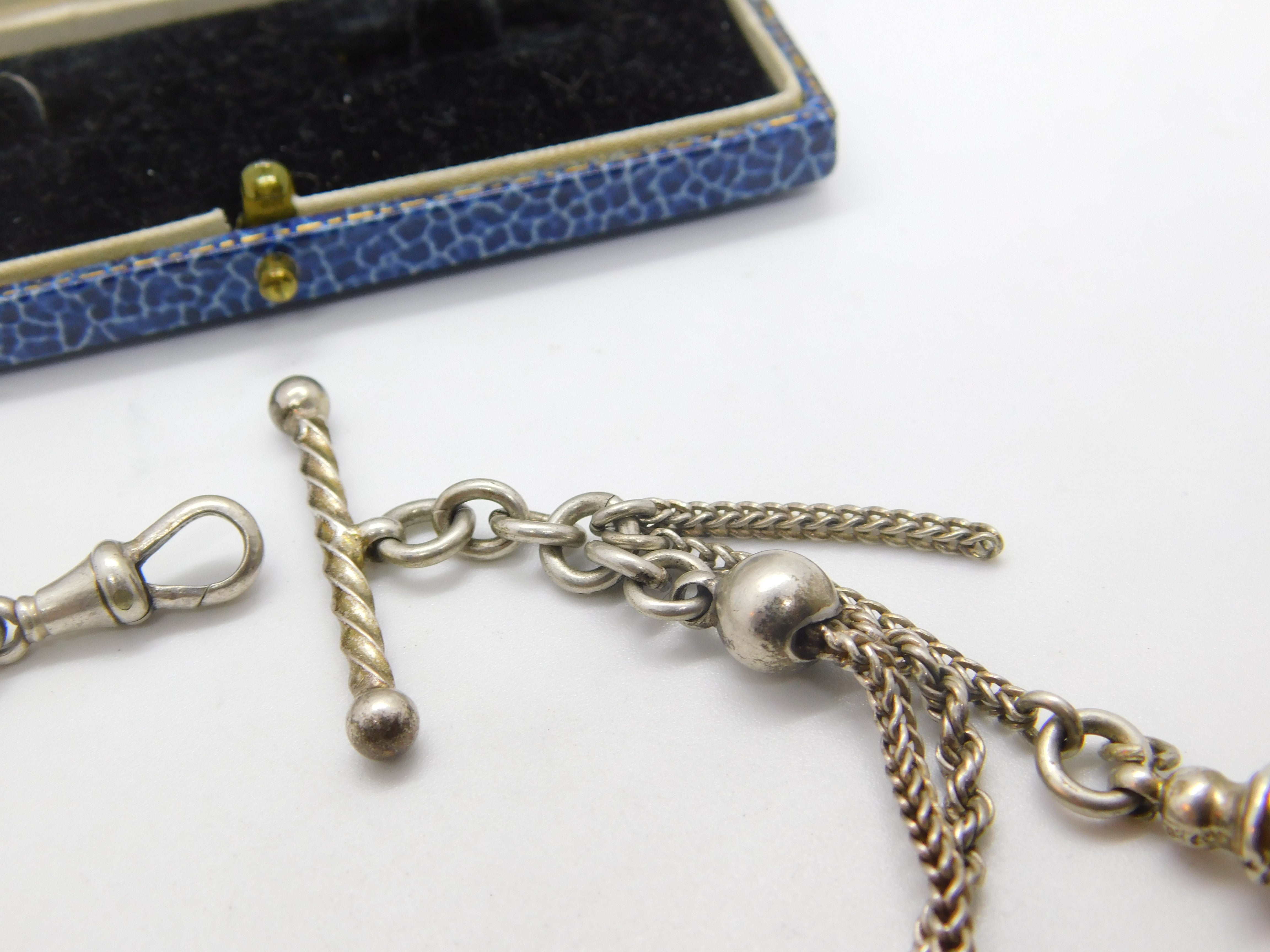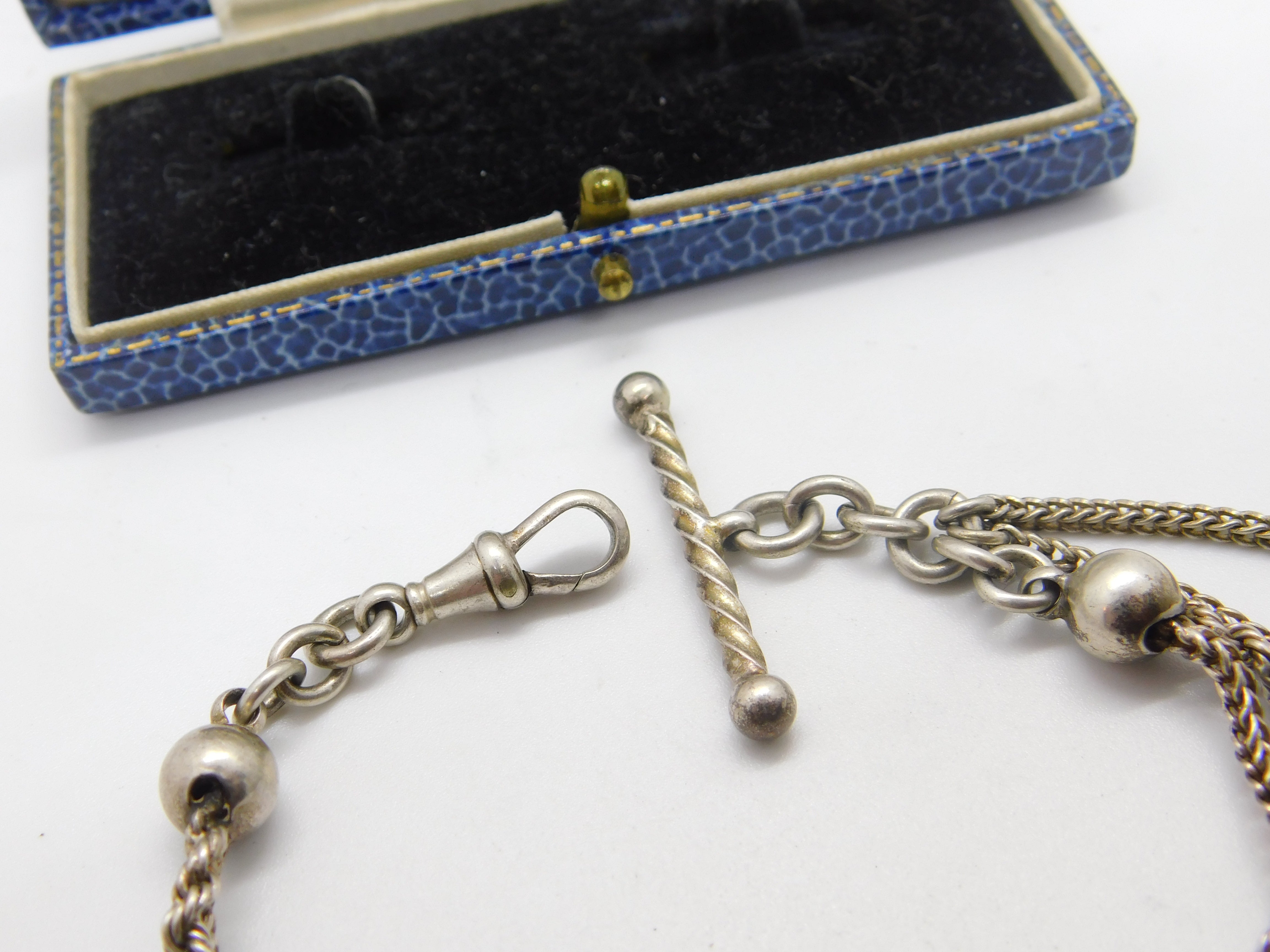 Details: A fantastic and wonderfully designed antique Victorian sterling silver albertina fancy link bracelet with lovely detail including tassel and t-bar c1880. The item is marked silver to the dog clip and XRF tested. This is a wonderful item that would make a perfect gift or addition to any collection. The BOX pictured is for PRESENTATION ONLY and is NOT included in the listings but used to frame the pictures unless specifically stated otherwise.