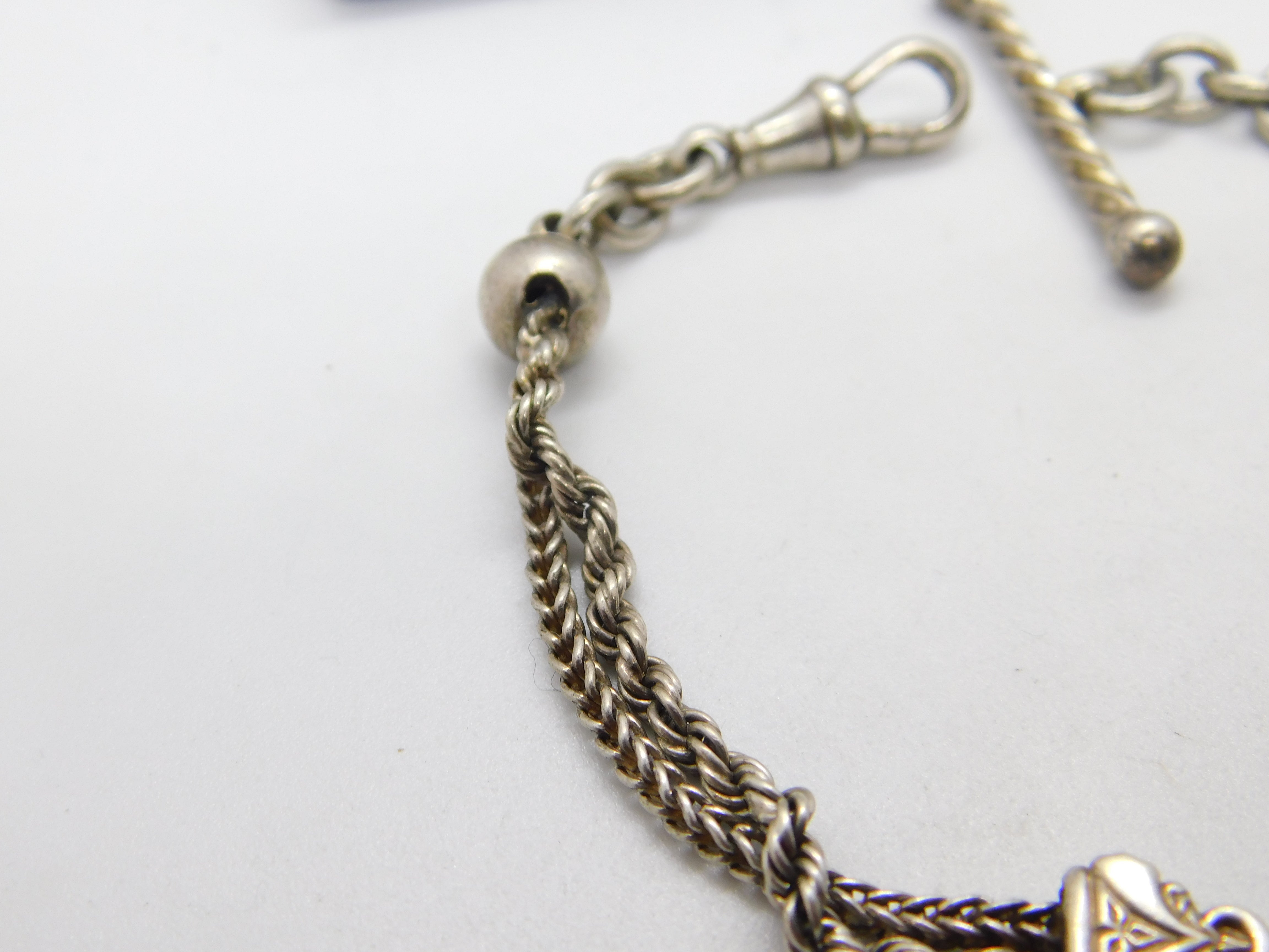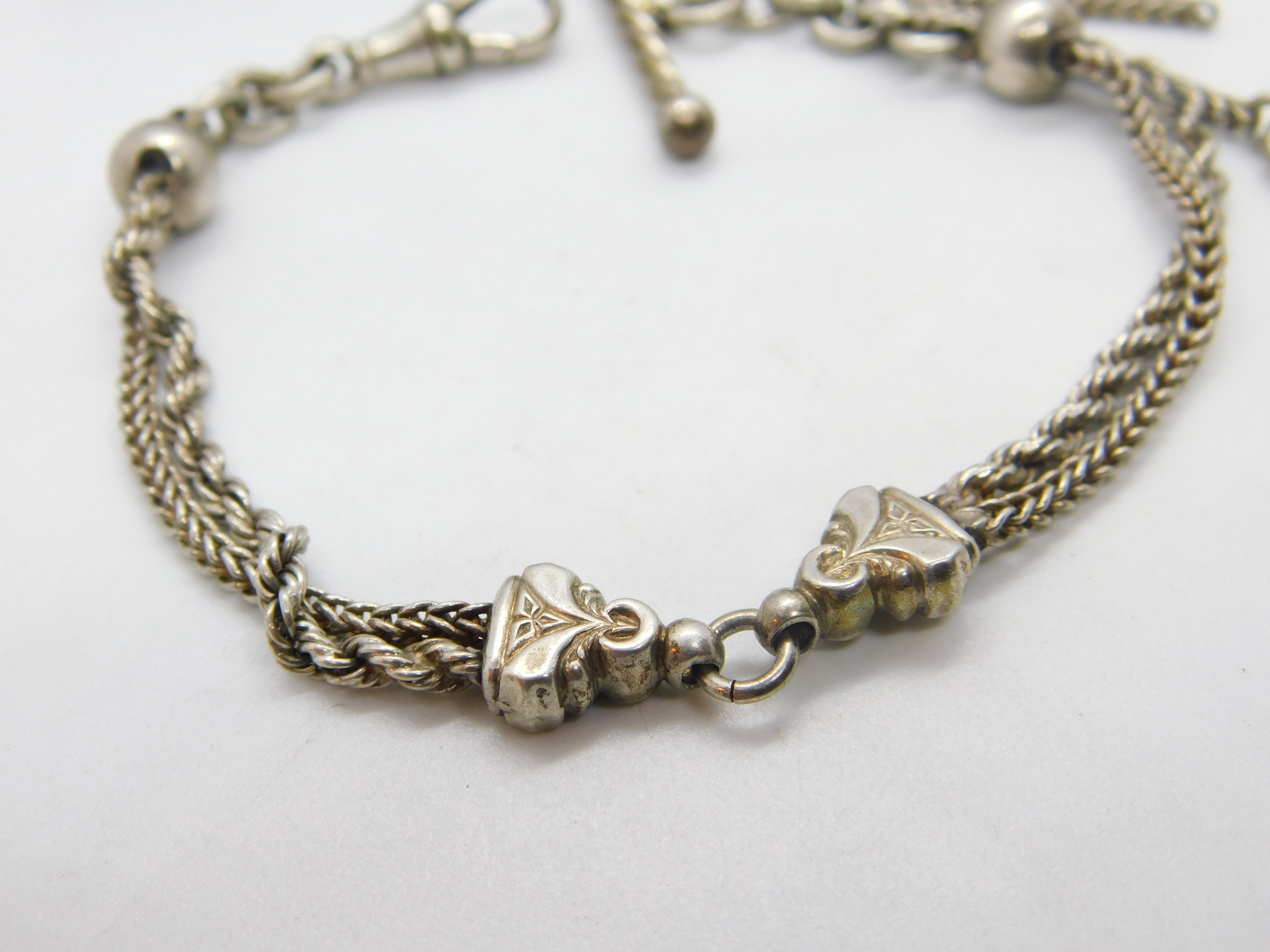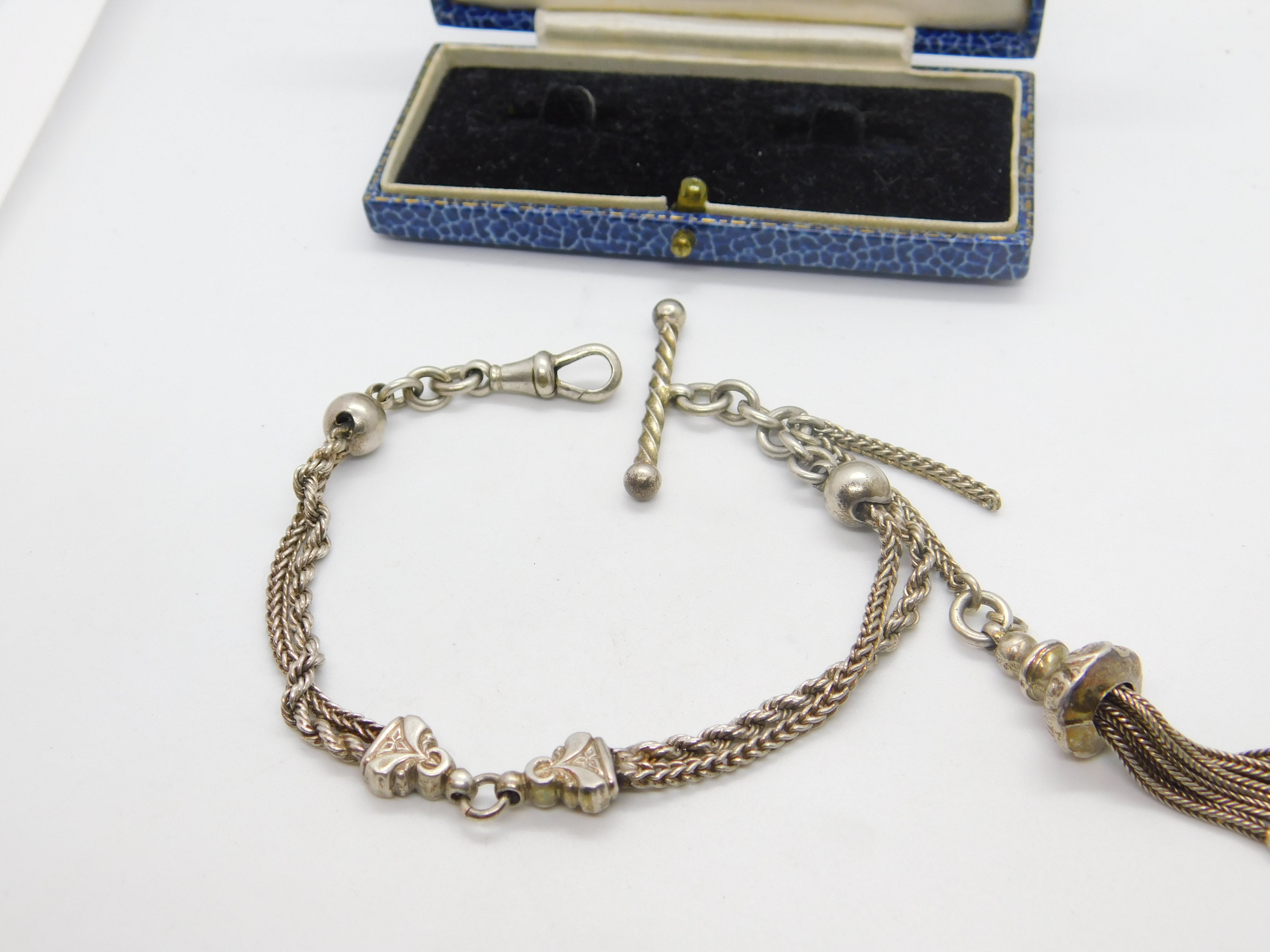 Victorian Sterling Silver Albertina Bracelet with Tassel & T-bar Antique c1880