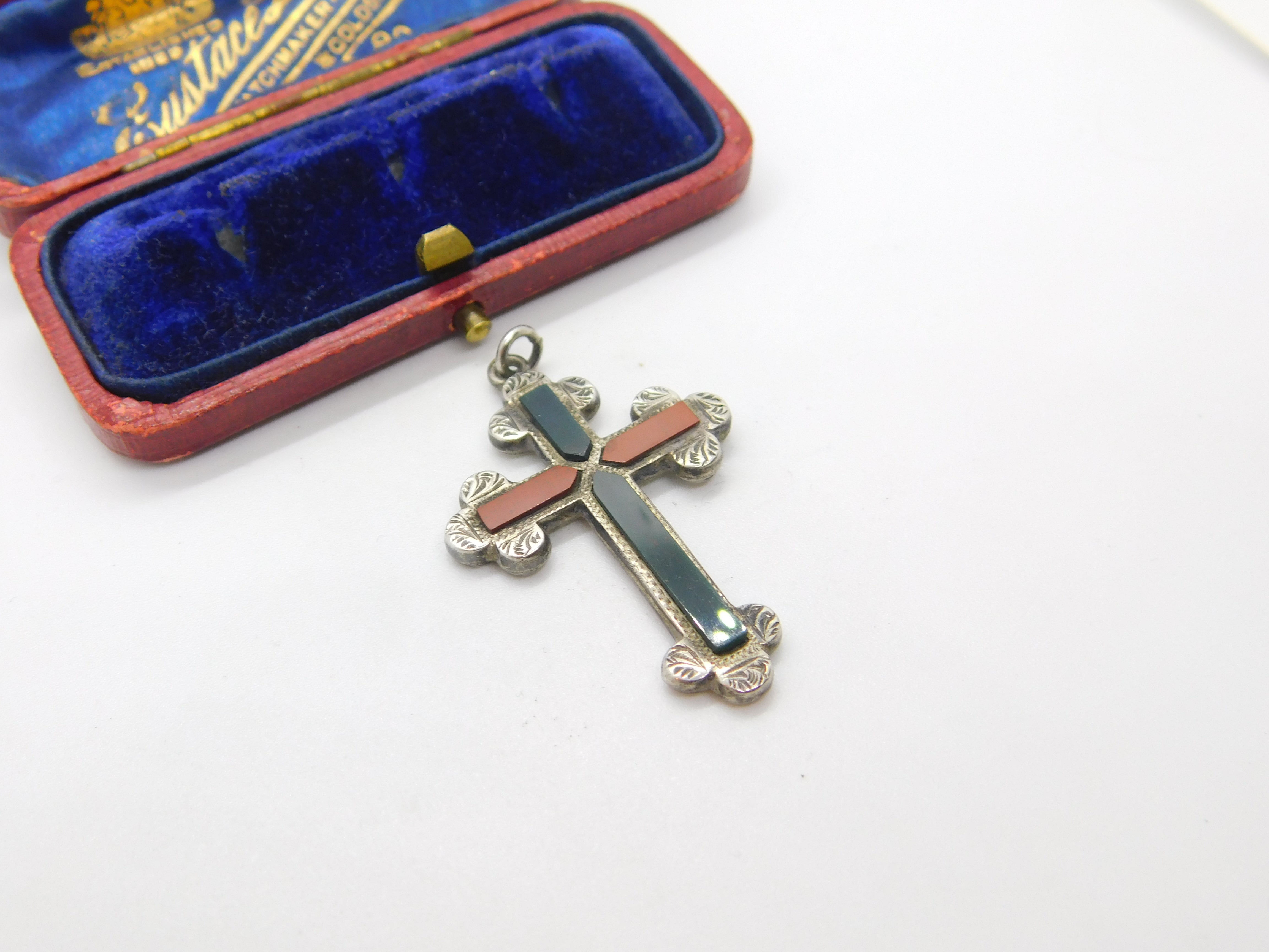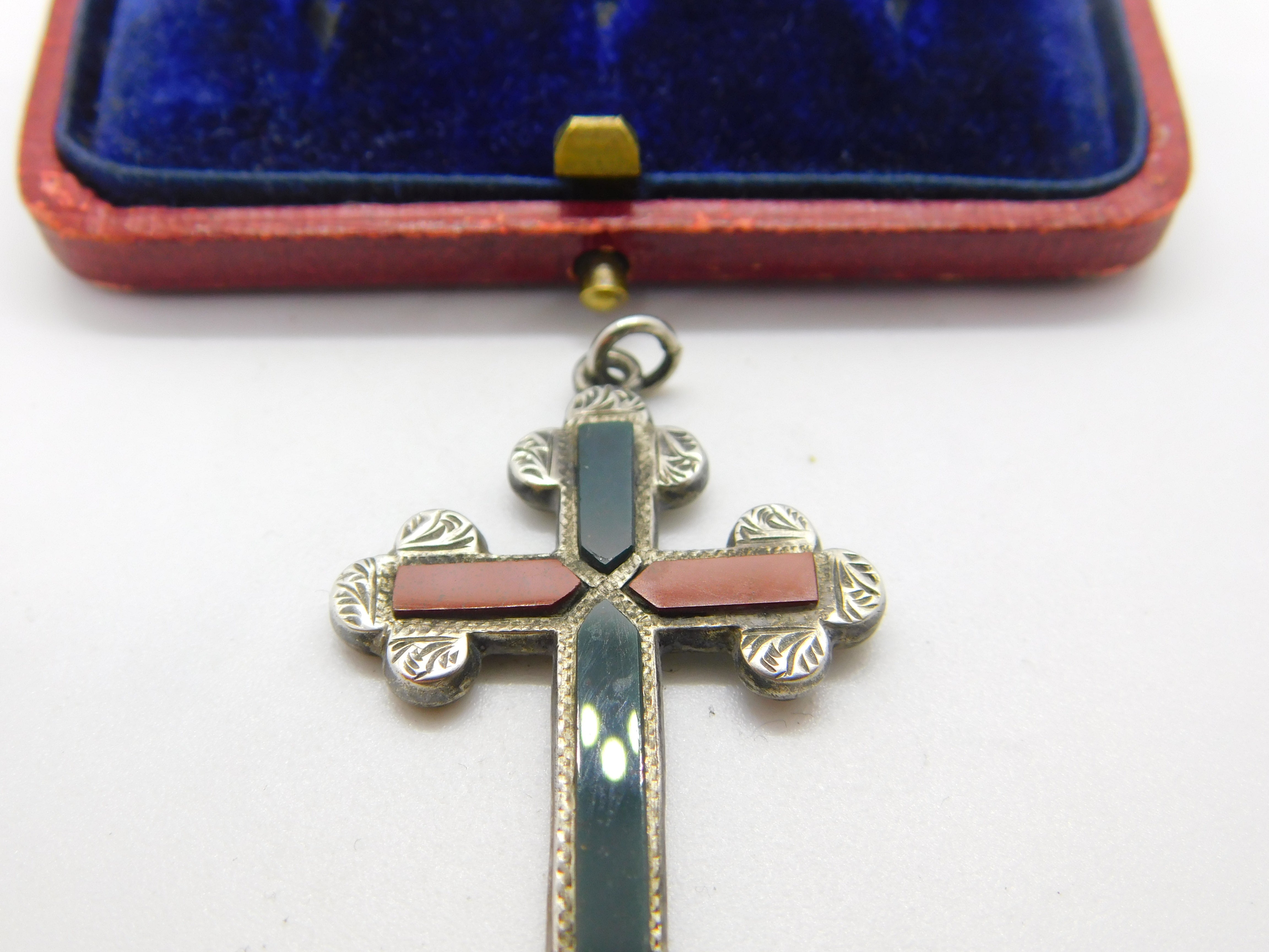 Victorian Sterling Silver Bloodstone & Agate Crucifix Pendant Antique c1860