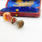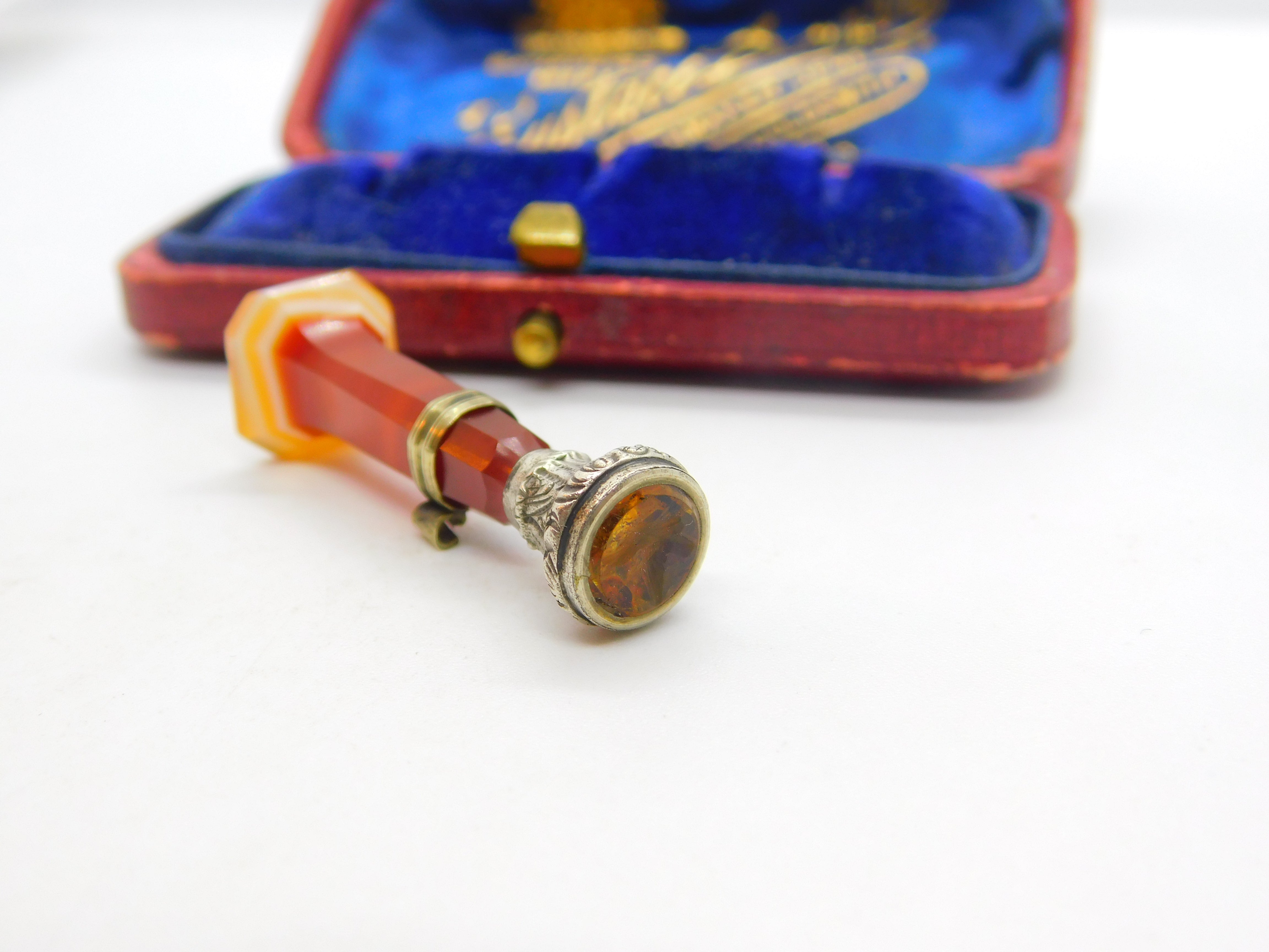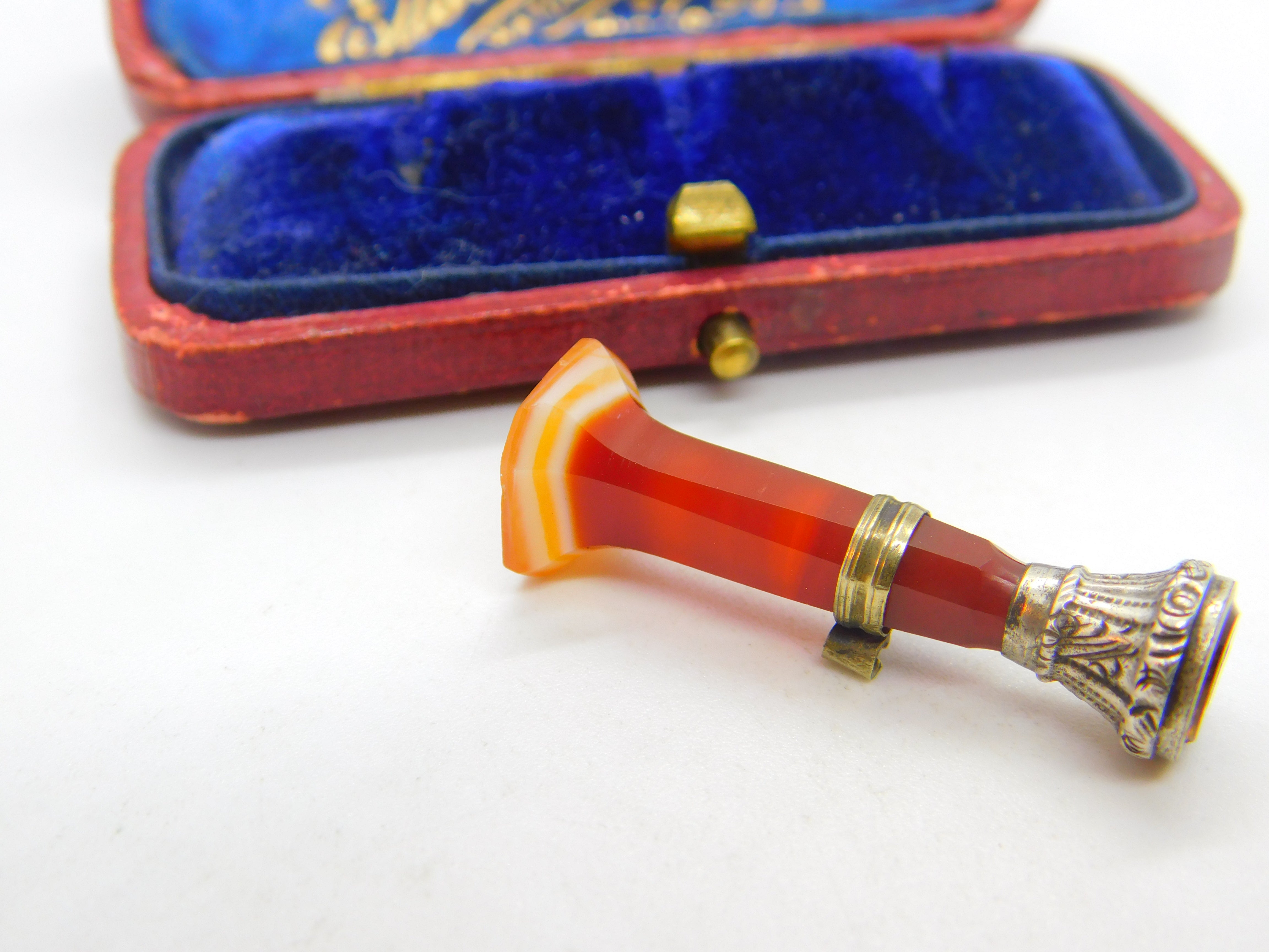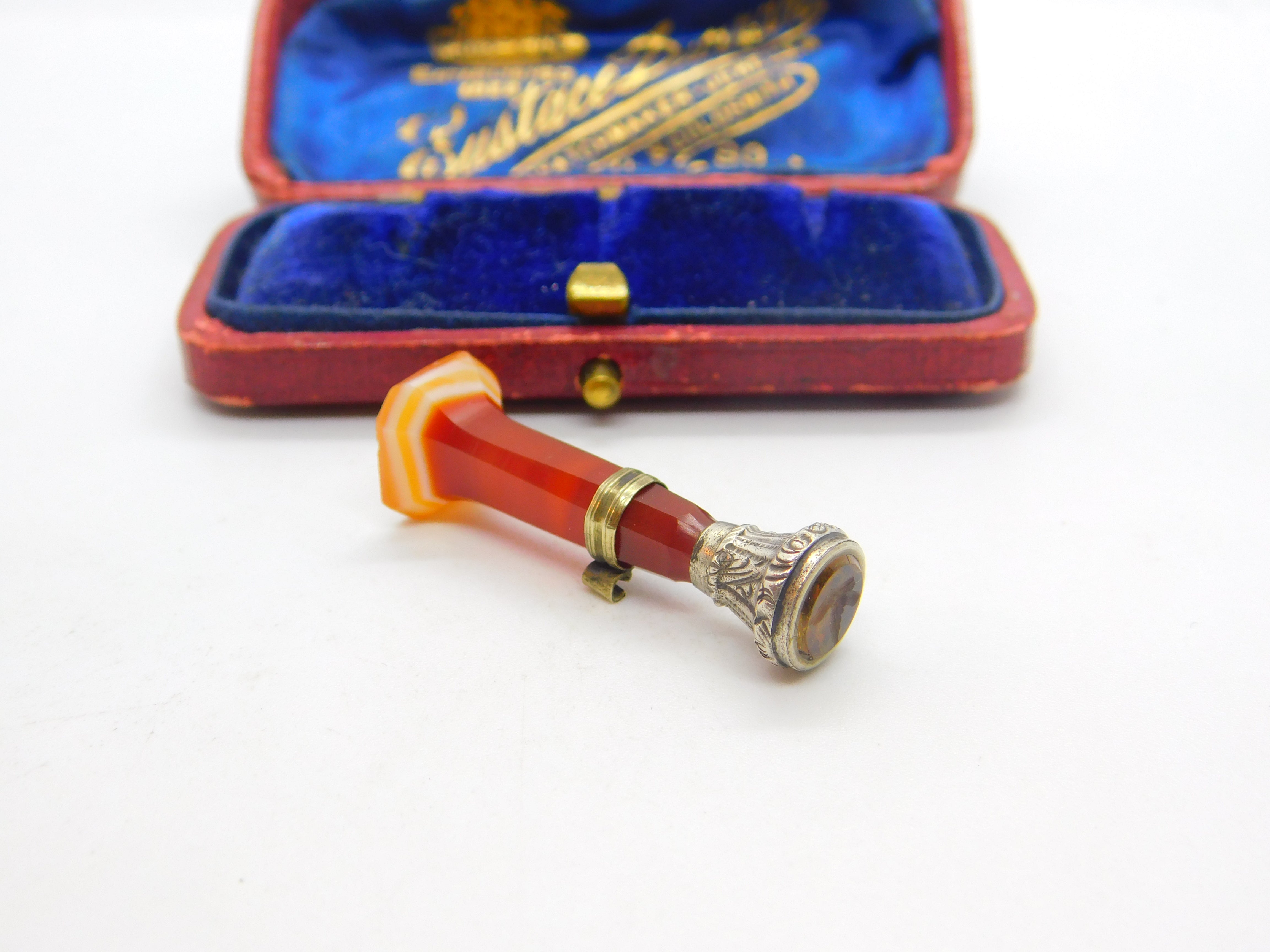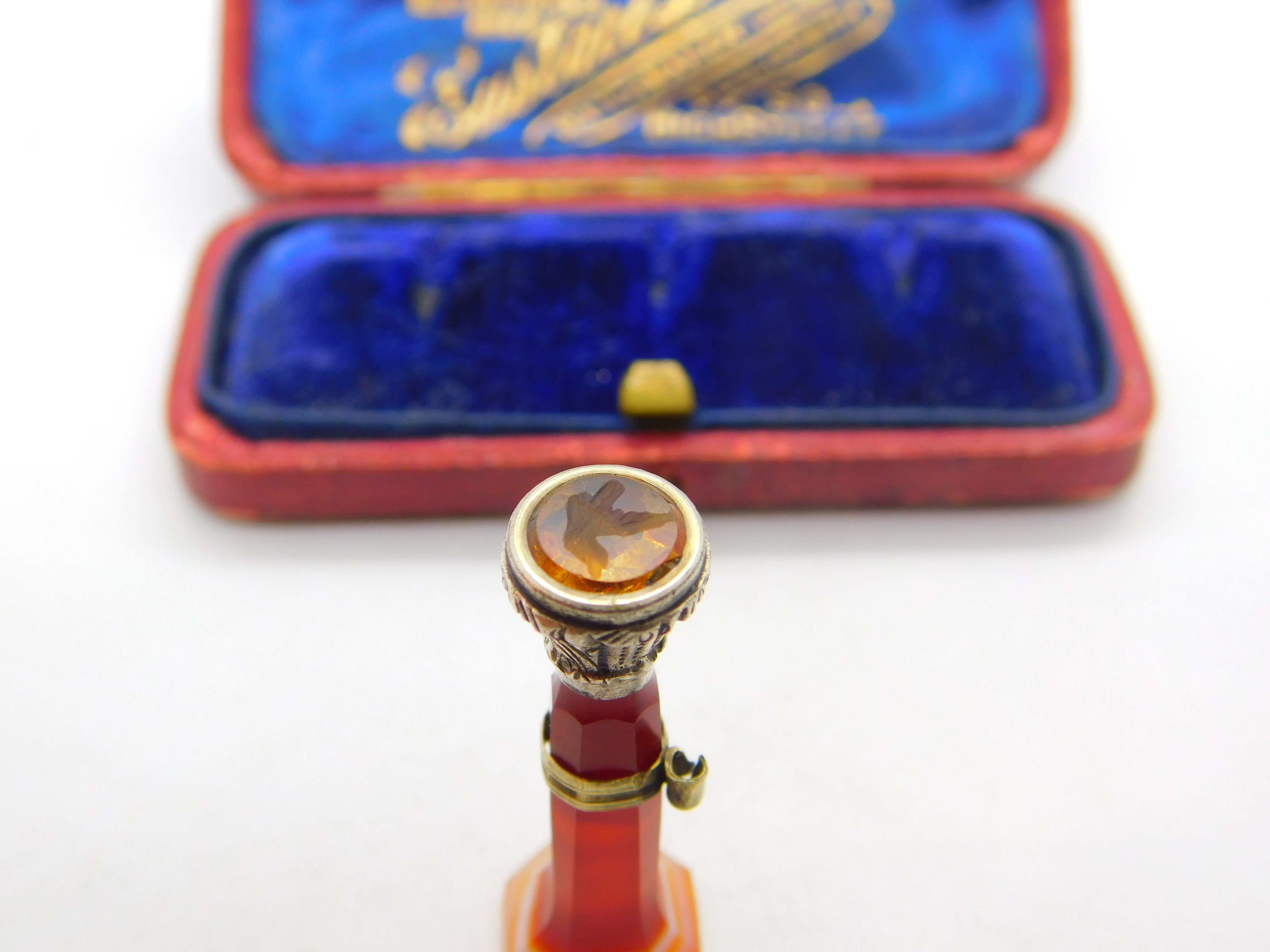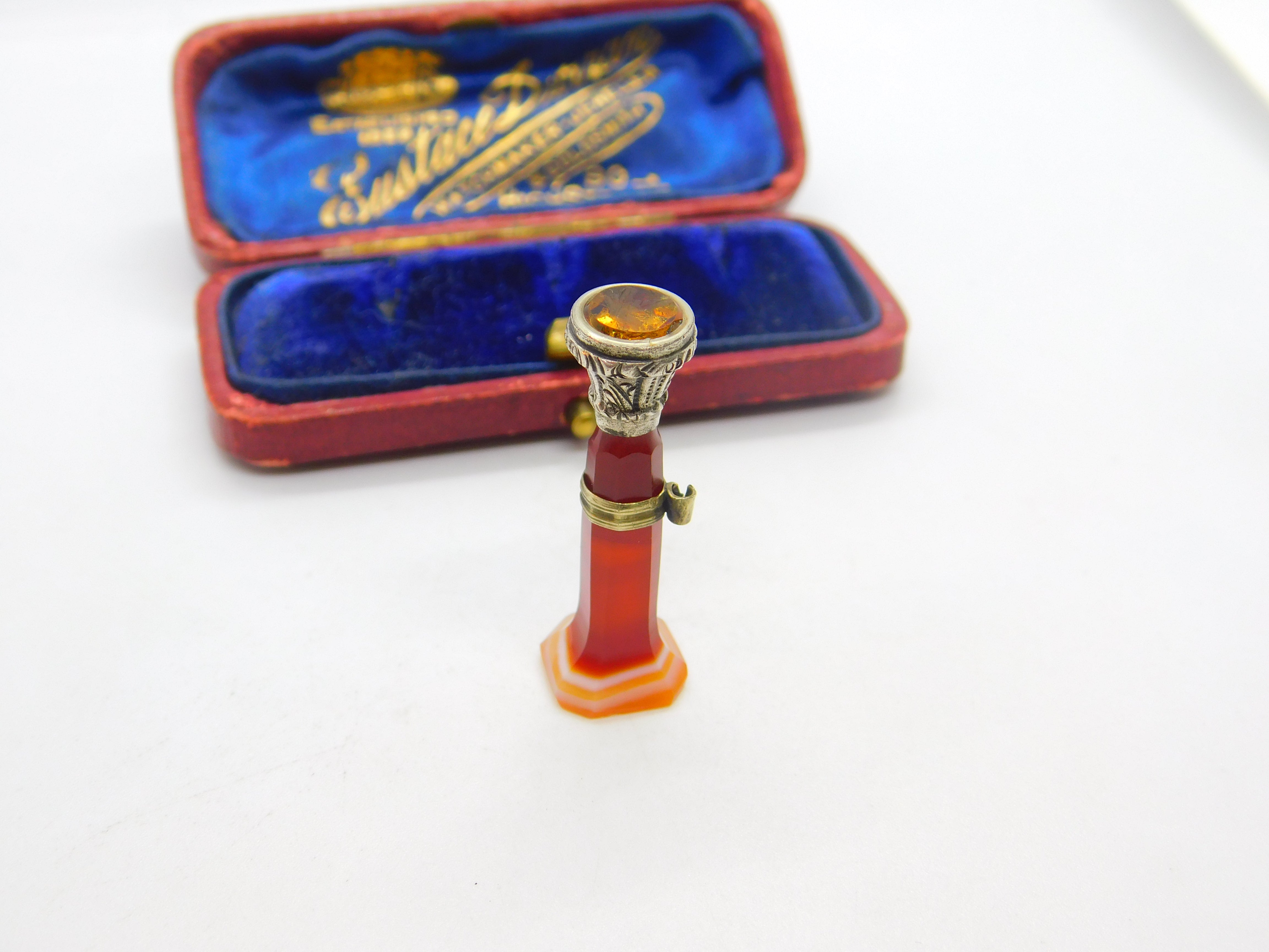 Details: A fantastic and wonderfully designed antique Victorian trumpet carved red banded agate seal stamp with sterling silver mounted carved citrine seal of the dove of peace to the top c1860. iny chip to the base. This is a wonderful item that would make a perfect gift or addition to any collection. The BOX pictured is for PRESENTATION ONLY and is NOT included in the listings but used to frame the pictures unless specifically stated otherwise.