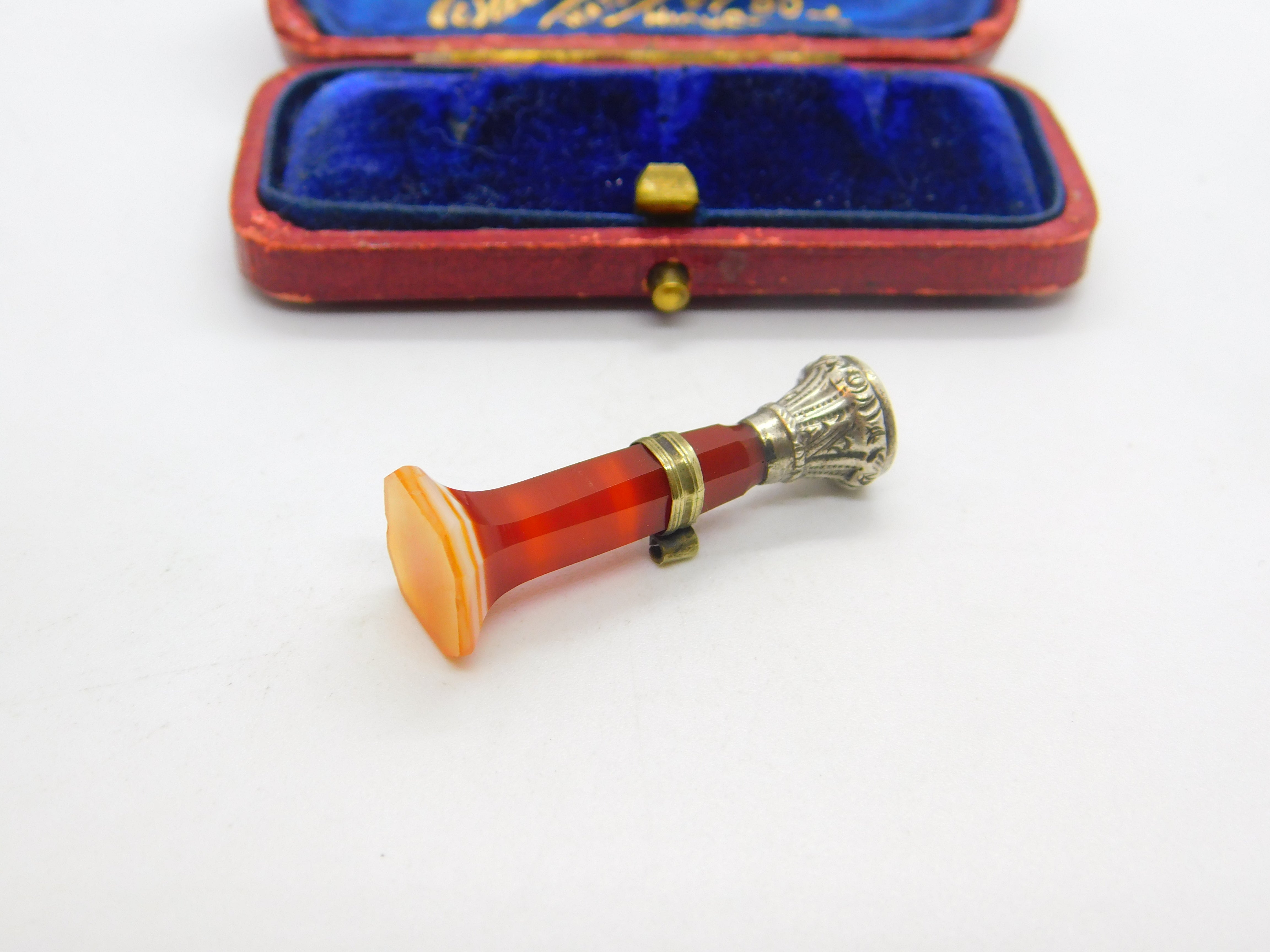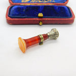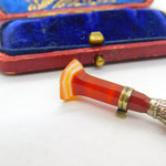 Victorian Sterling Silver & Carved Red Agate Seal Fob Stamp Bird Crest c1860