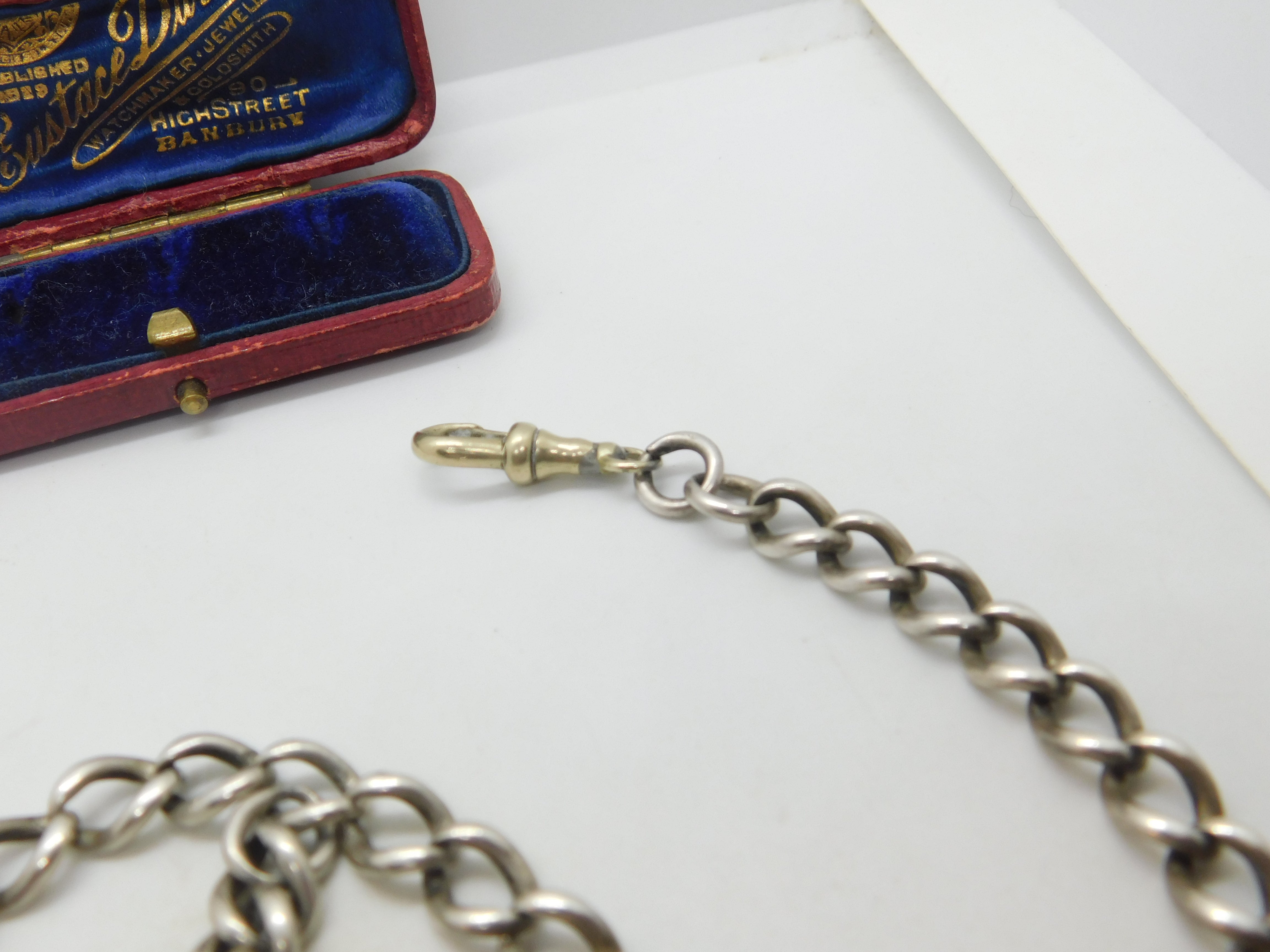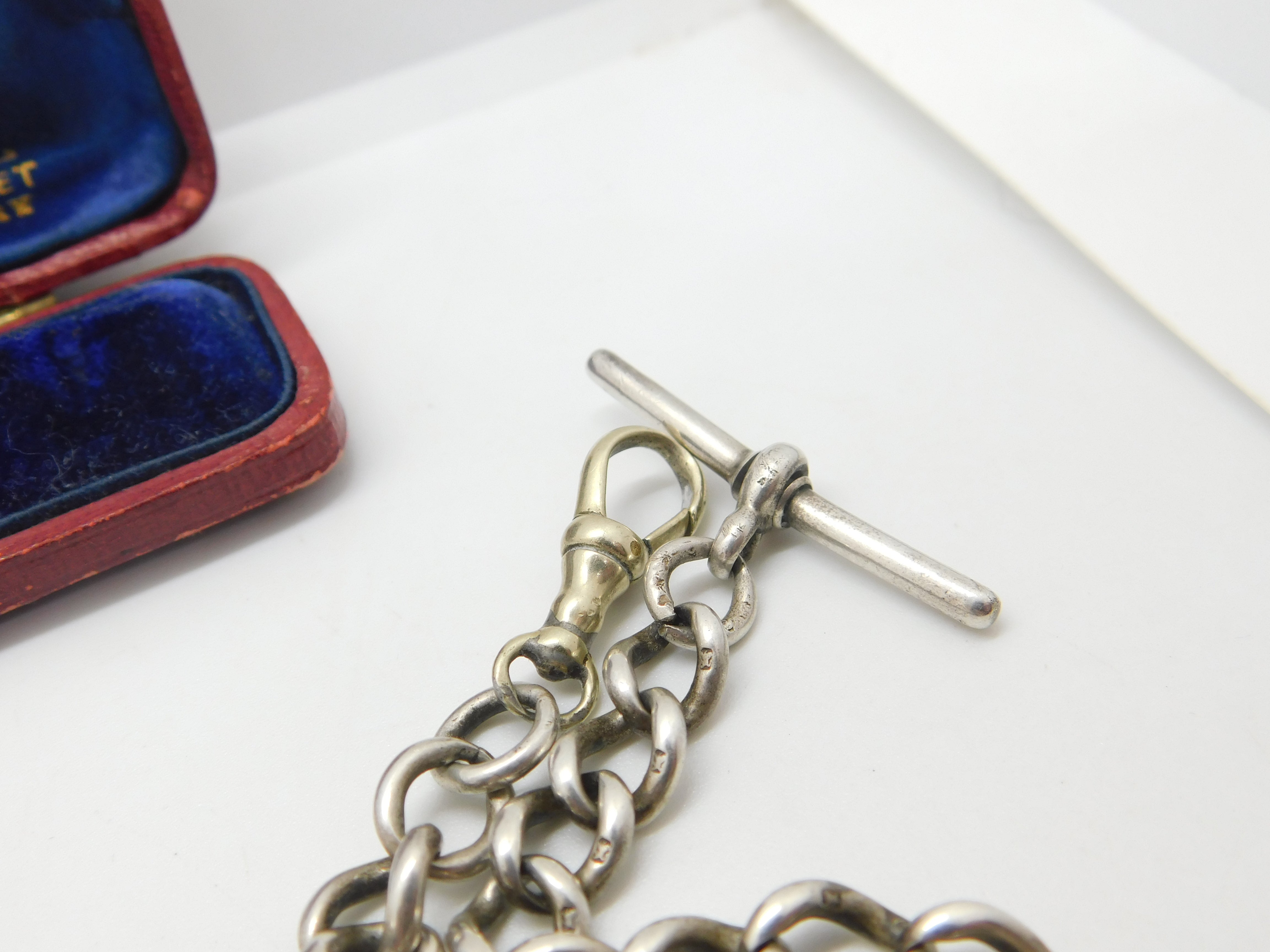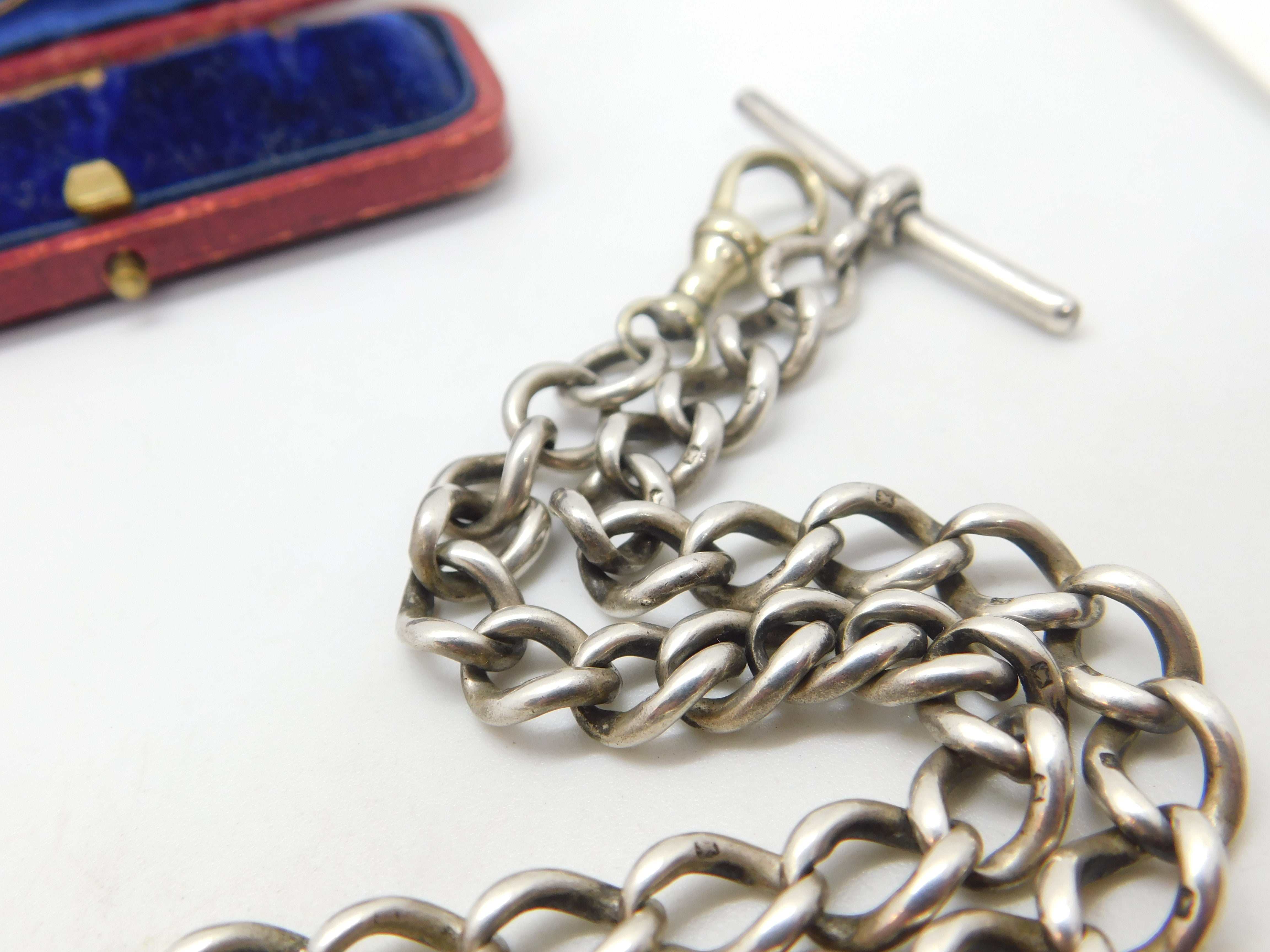 Details: A fantastic and wonderfully designed antique Victorian sterling silver double albert watch chain with Queen Victoria sixpence coin fob hallmarked Birmingham 1897 to the t-bar and equally hallmarked to every link of the watch chain. The dog clip is the only part that is not silver and is likely a later replacement. A great example. This is a wonderful item that would make a perfect gift or addition to any collection. The BOX pictured is for PRESENTATION ONLY and is NOT included in the listings but used to frame the pictures unless specifically stated otherwise.