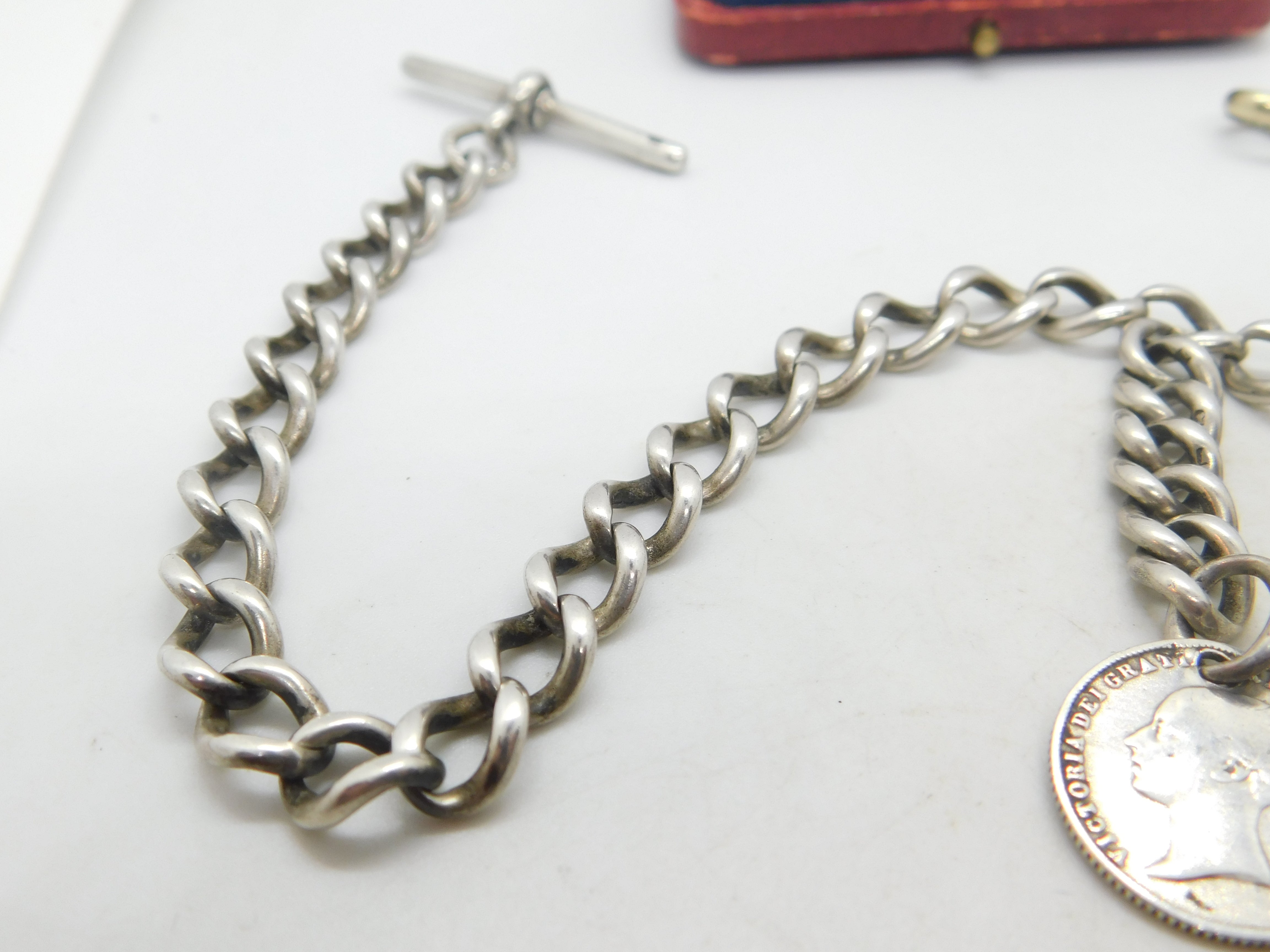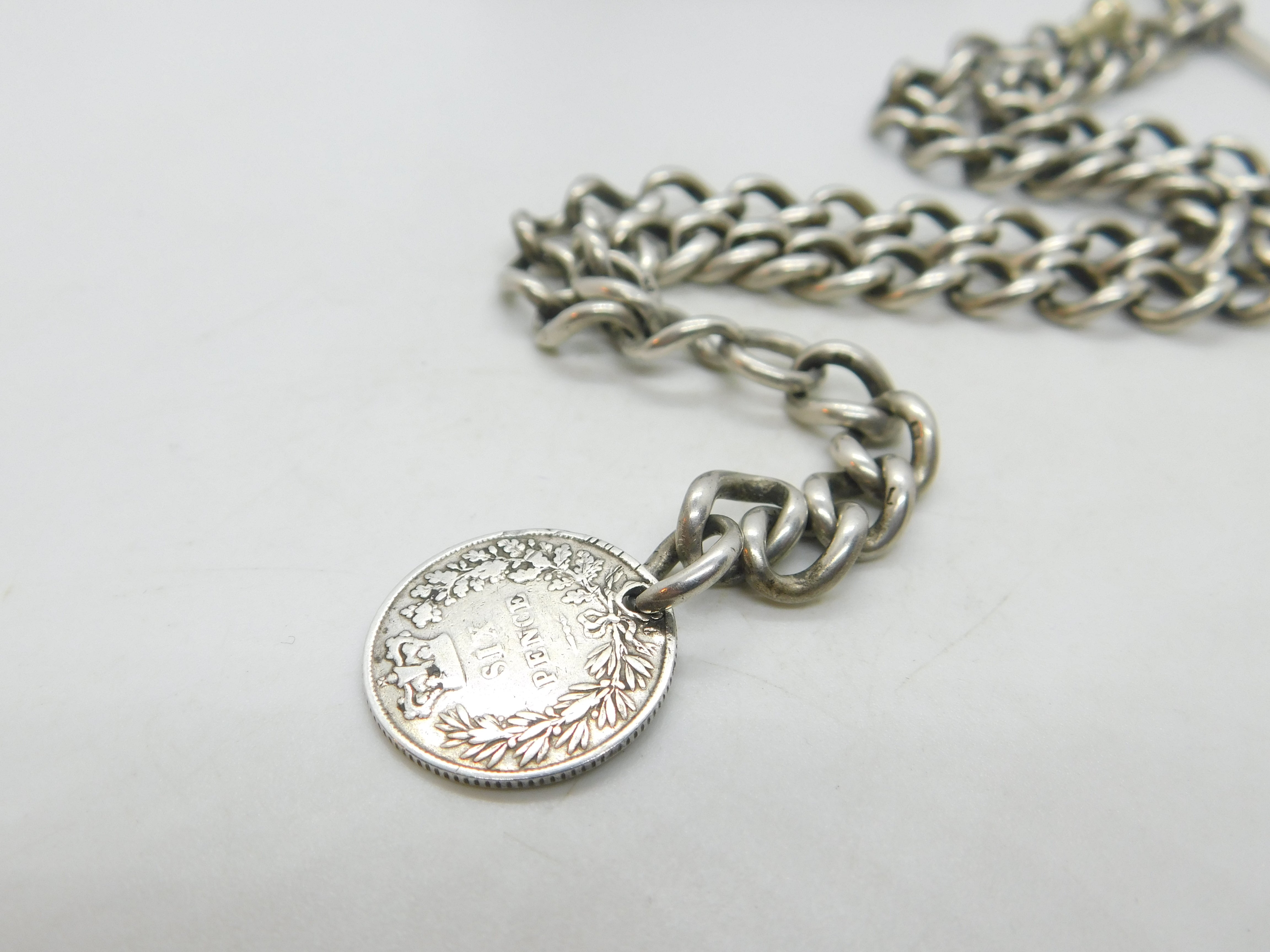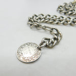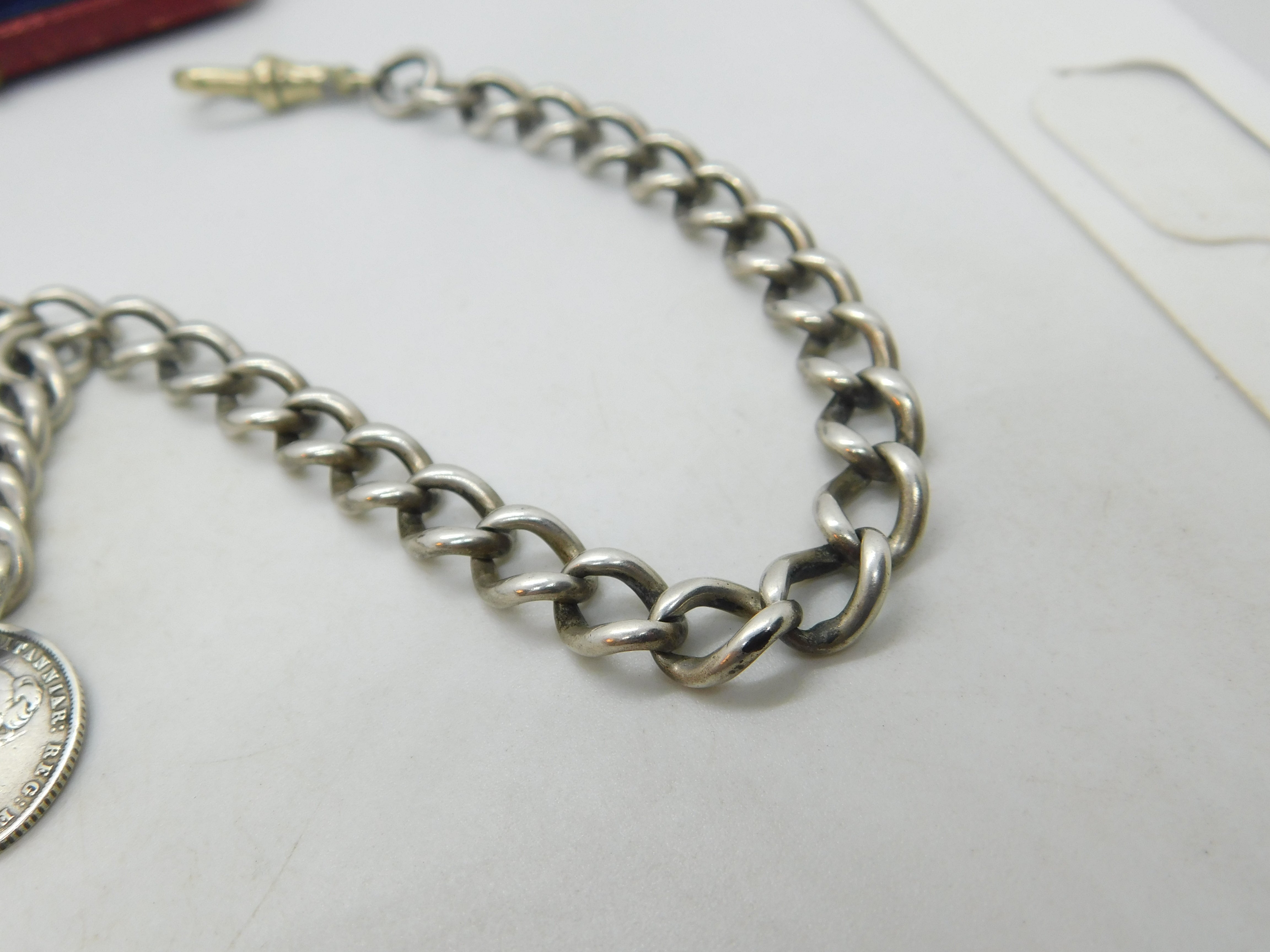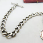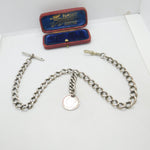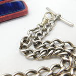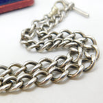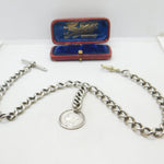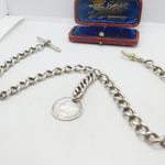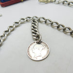 Victorian Sterling Silver Double Albert Watch Chain & Coin Fob Antique 1897