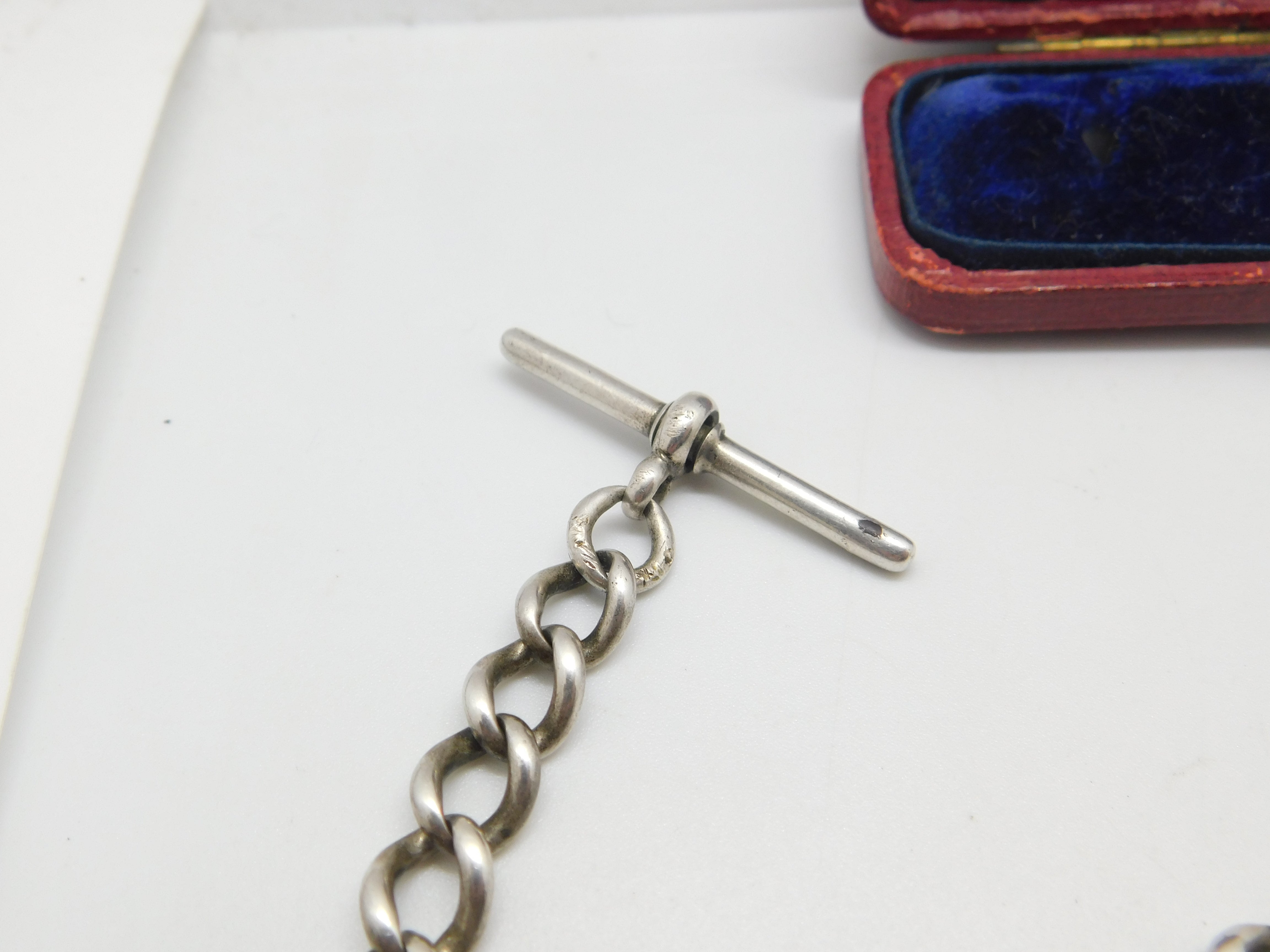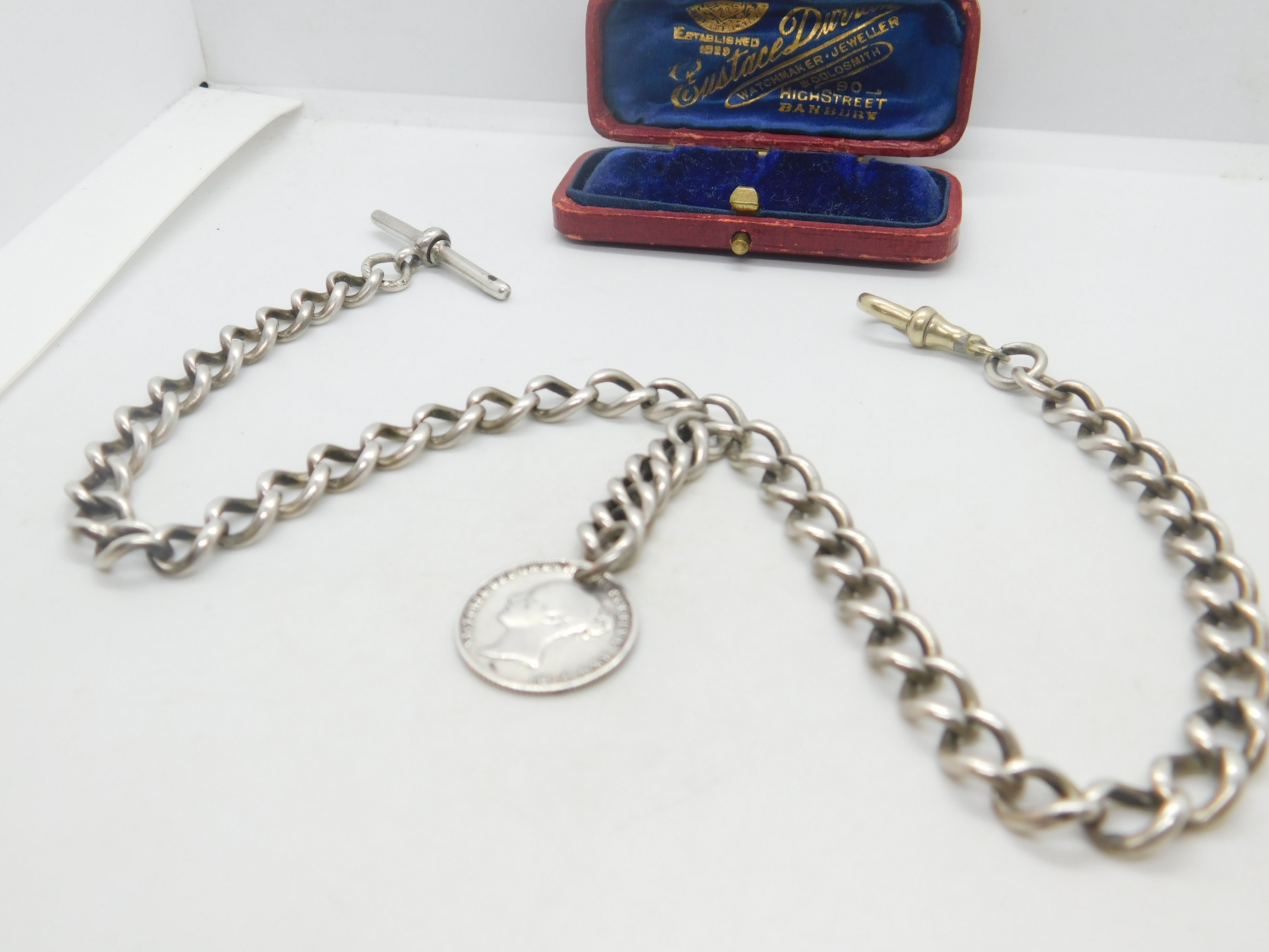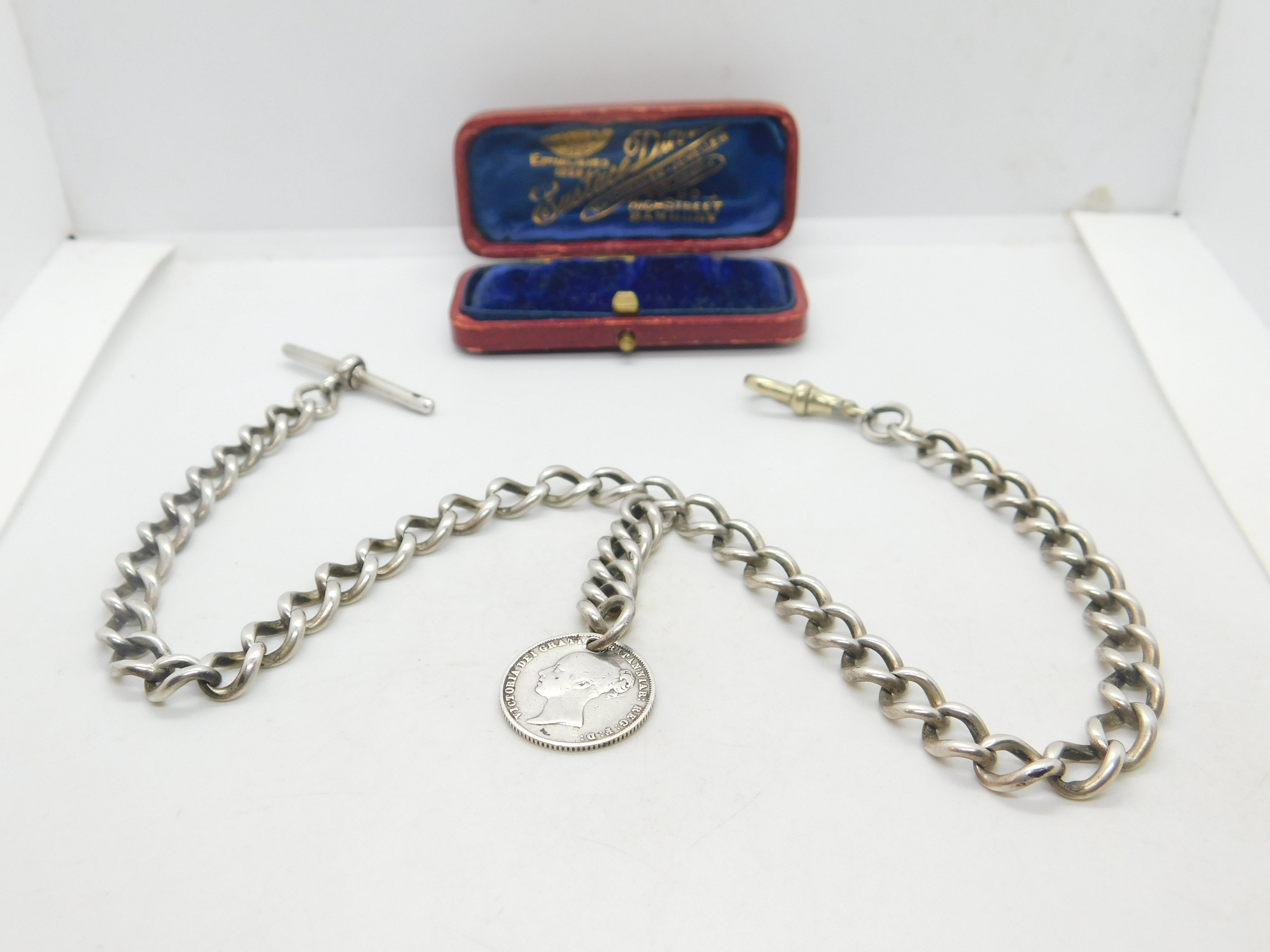 Victorian Sterling Silver Double Albert Watch Chain & Coin Fob Antique 1897