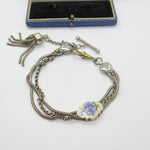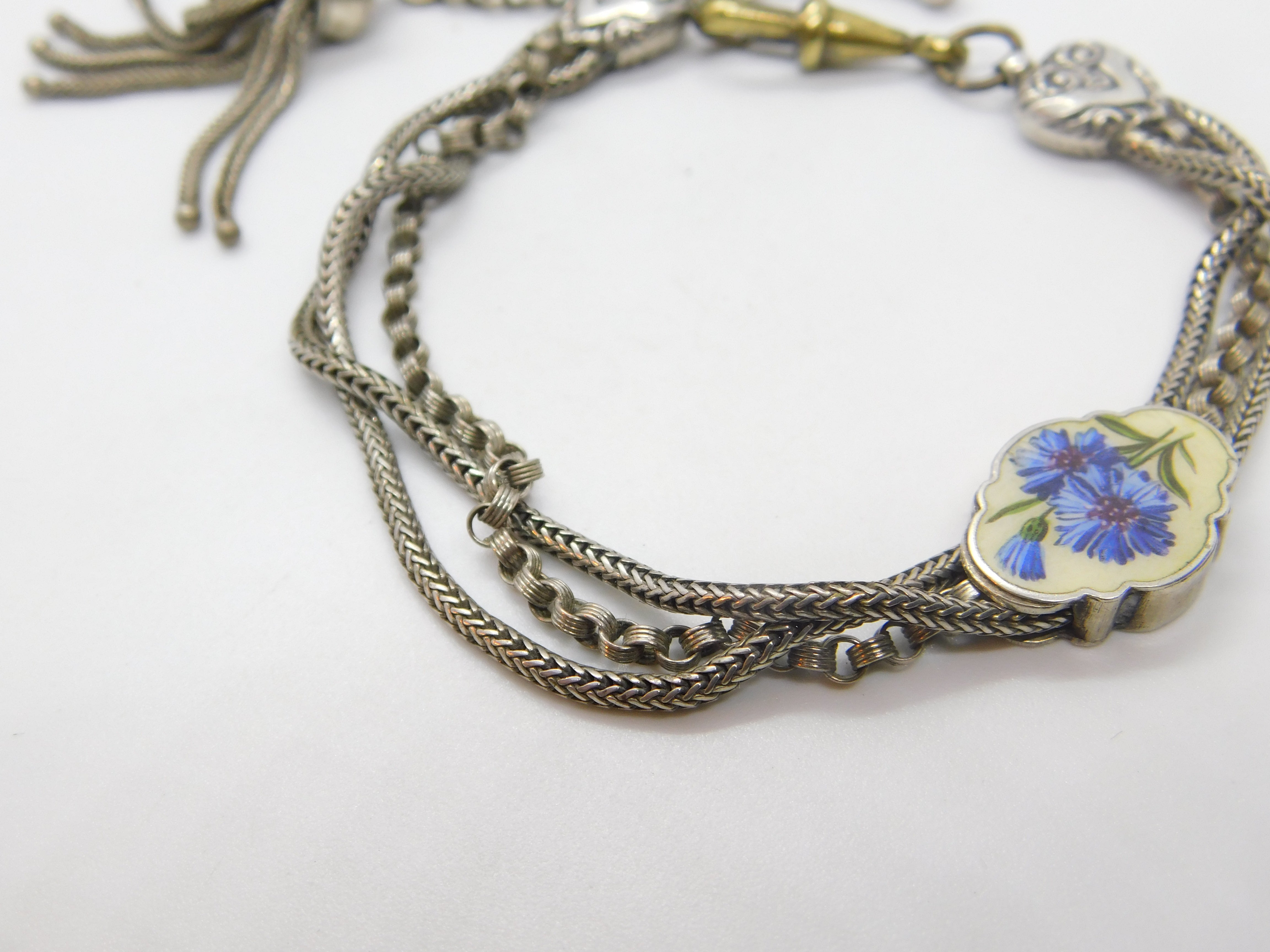 Victorian Sterling Silver & Enamel Floral Albertina Tassel Bracelet Antique c1860