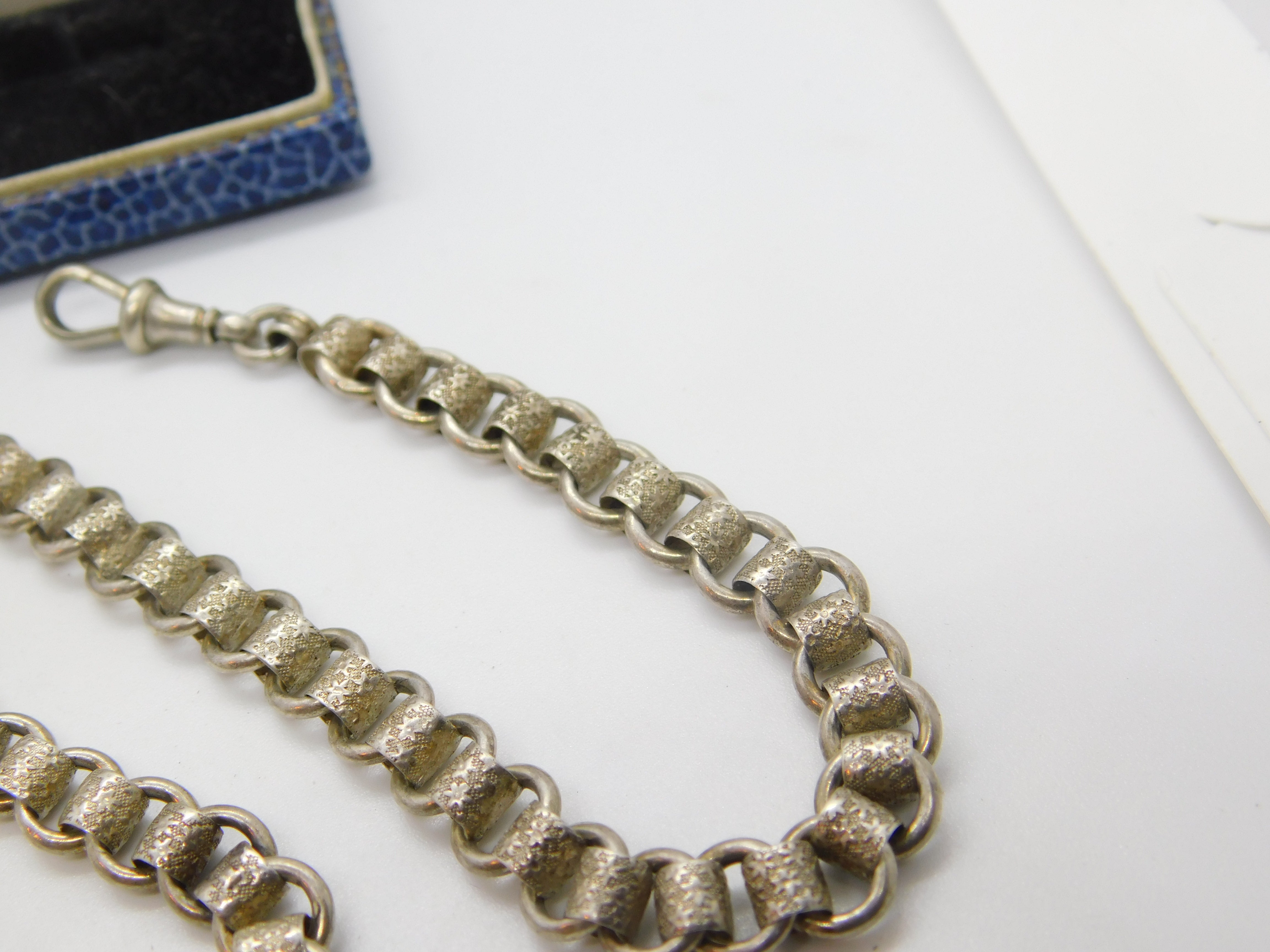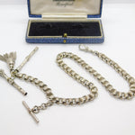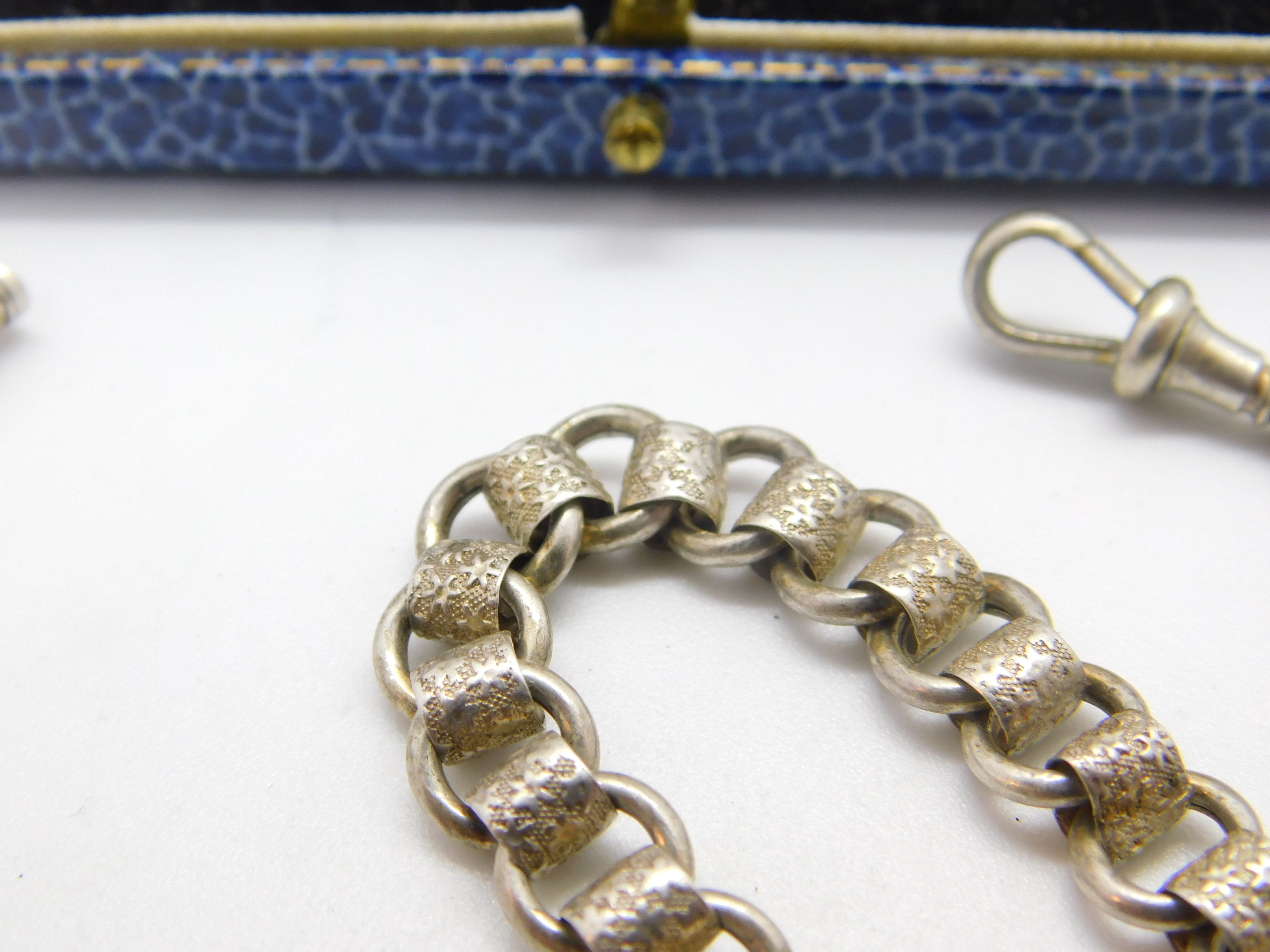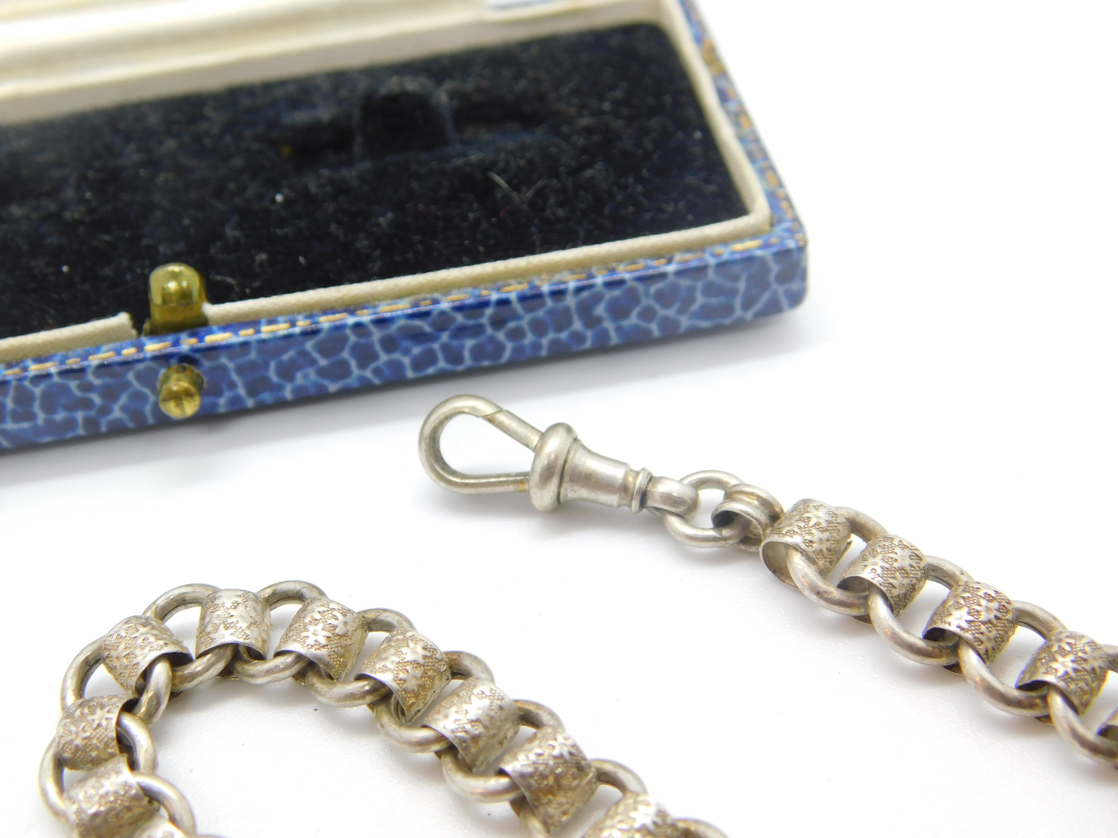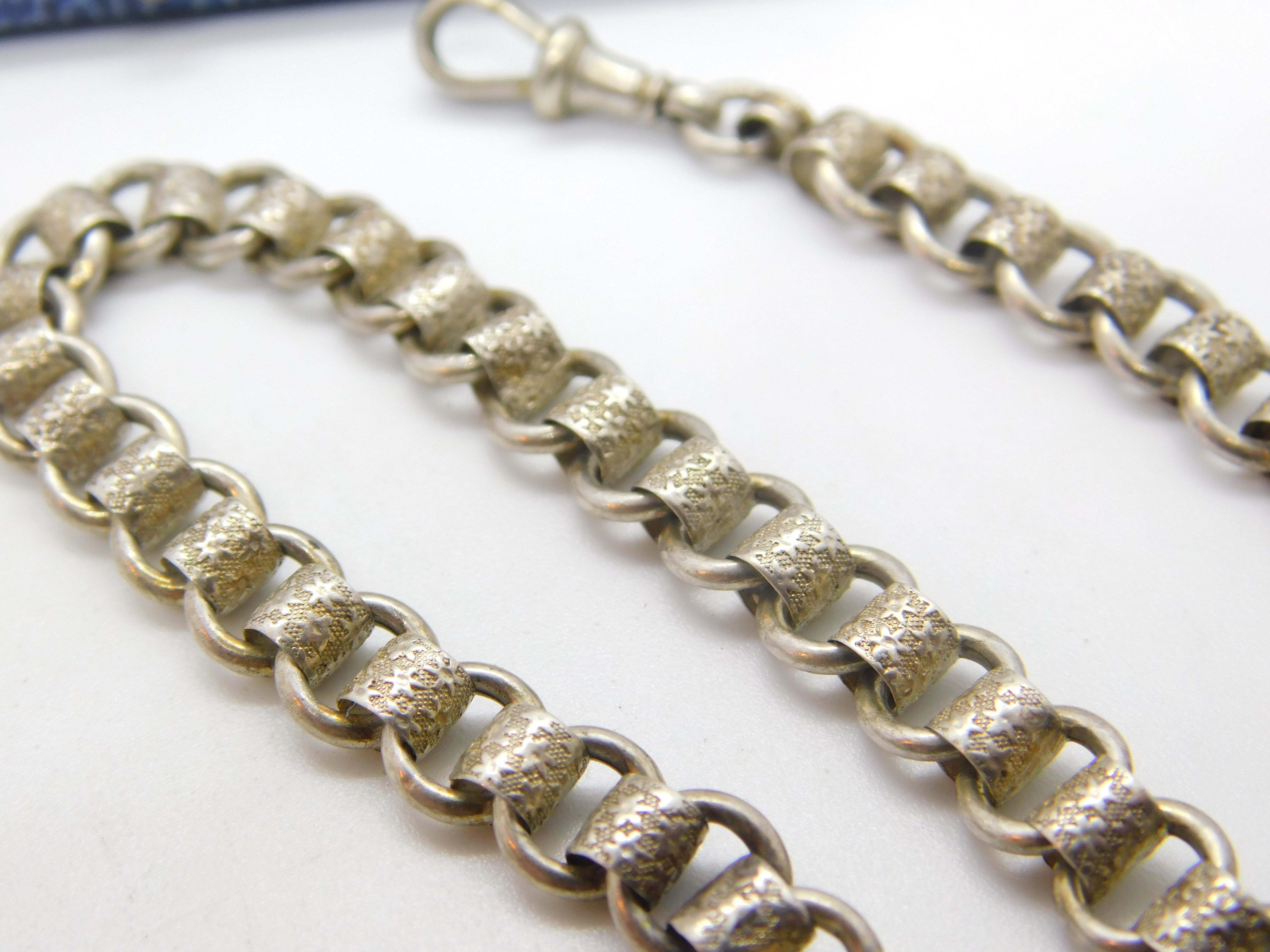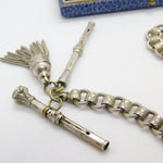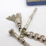 Details: A fantastic and wonderfully designed antique Victorian sterling silver floral collar form watch chain with gorgeous links c1860. The chain has multiple fobs to include propelling pencil, albertina tassel and a further damaged fob. The silver has been XRF tested. This is a wonderful item that would make a perfect gift or addition to any collection. The BOX pictured is for PRESENTATION ONLY and is NOT included in the listings but used to frame the pictures unless specifically stated otherwise.