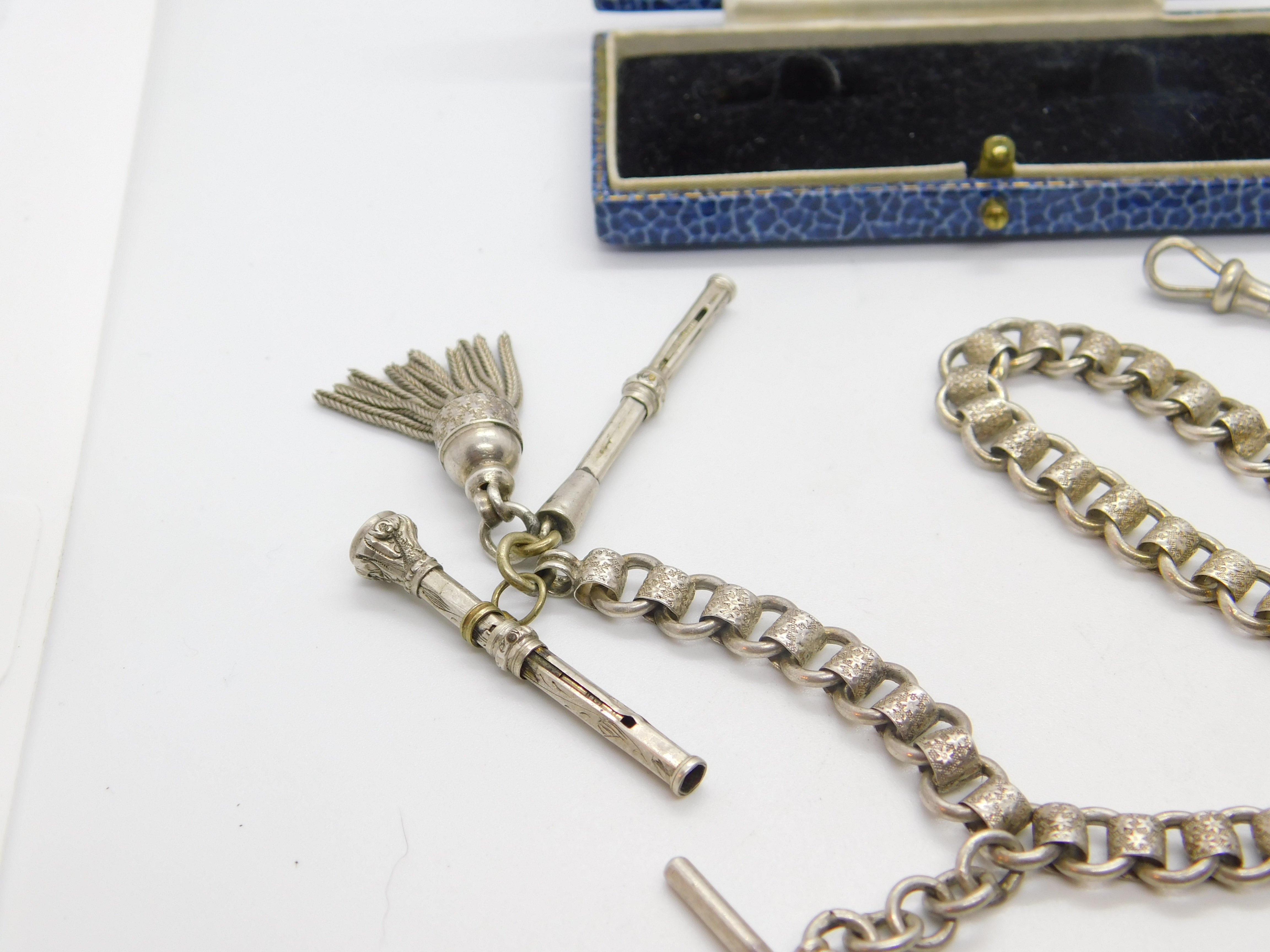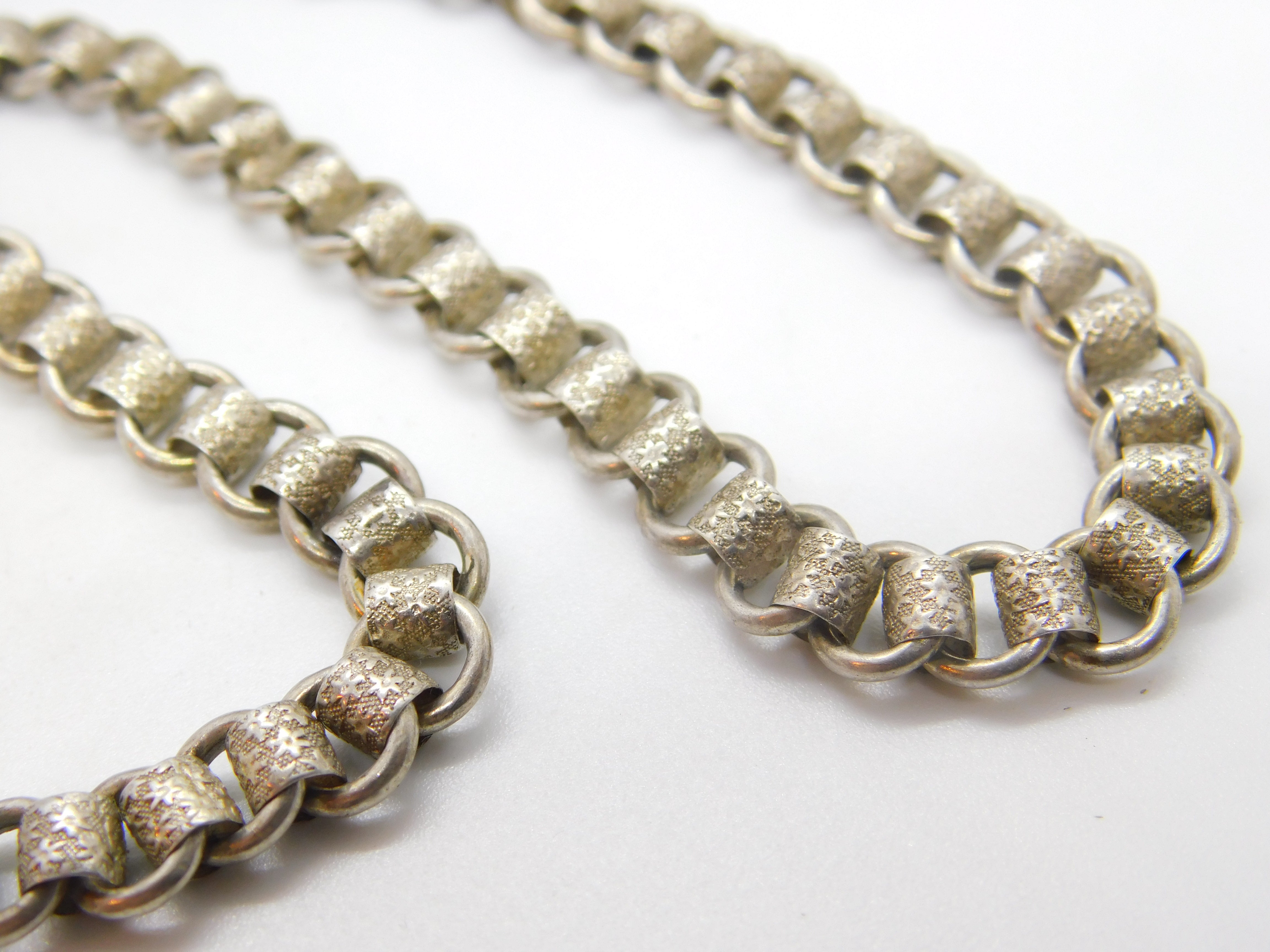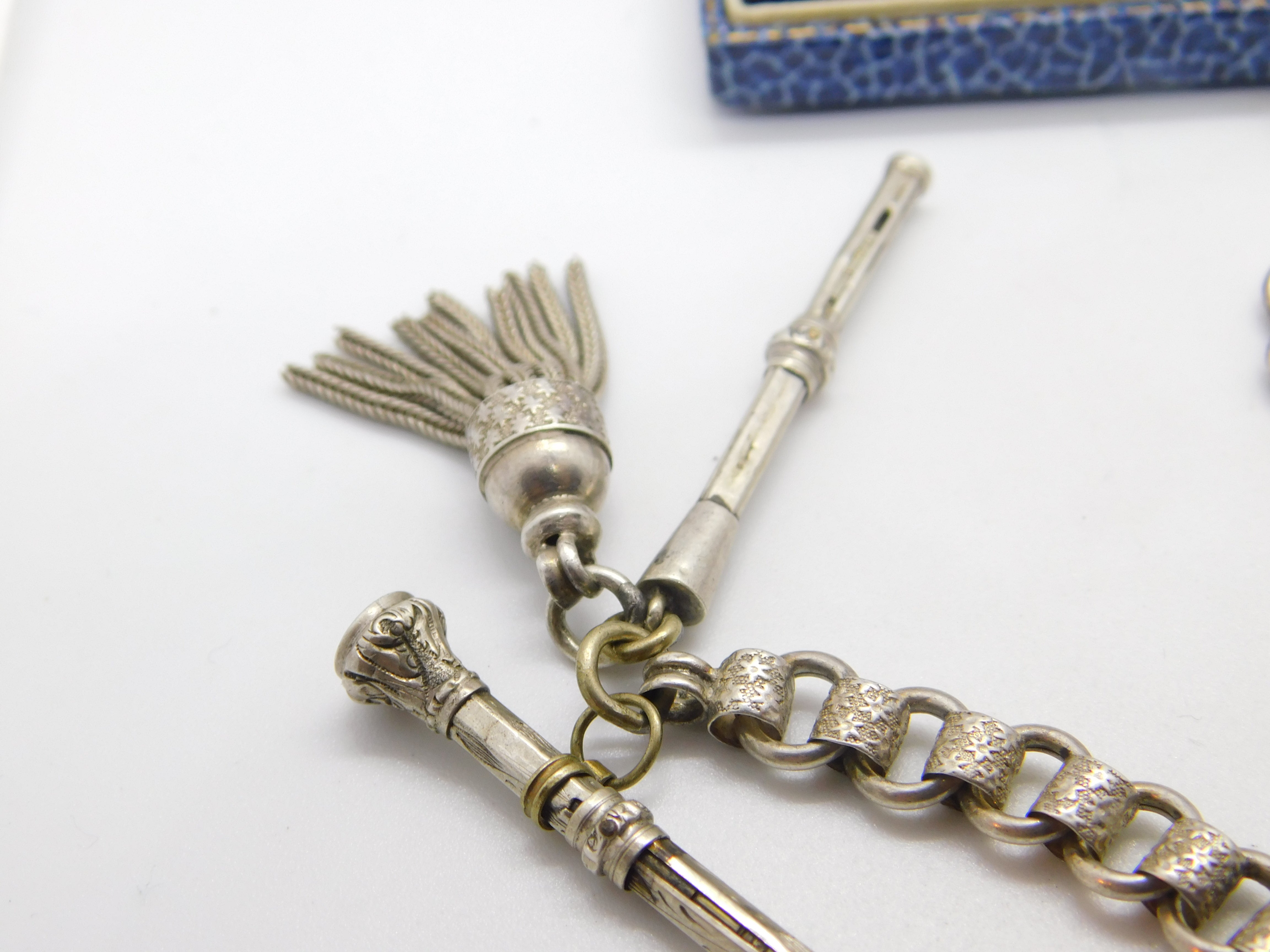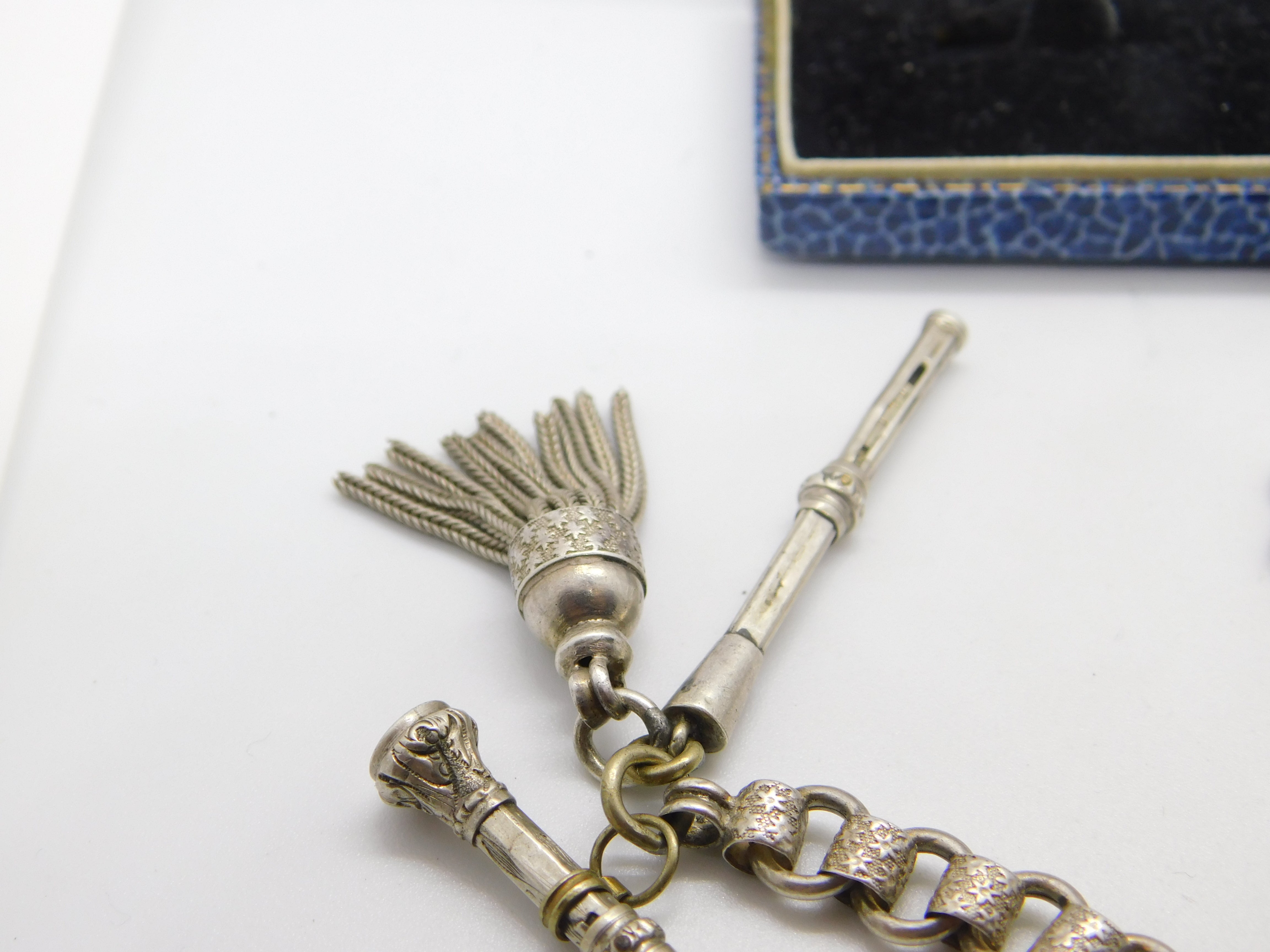 Details: A fantastic and wonderfully designed antique Victorian sterling silver floral collar form watch chain with gorgeous links c1860. The chain has multiple fobs to include propelling pencil, albertina tassel and a further damaged fob. The silver has been XRF tested. This is a wonderful item that would make a perfect gift or addition to any collection. The BOX pictured is for PRESENTATION ONLY and is NOT included in the listings but used to frame the pictures unless specifically stated otherwise.