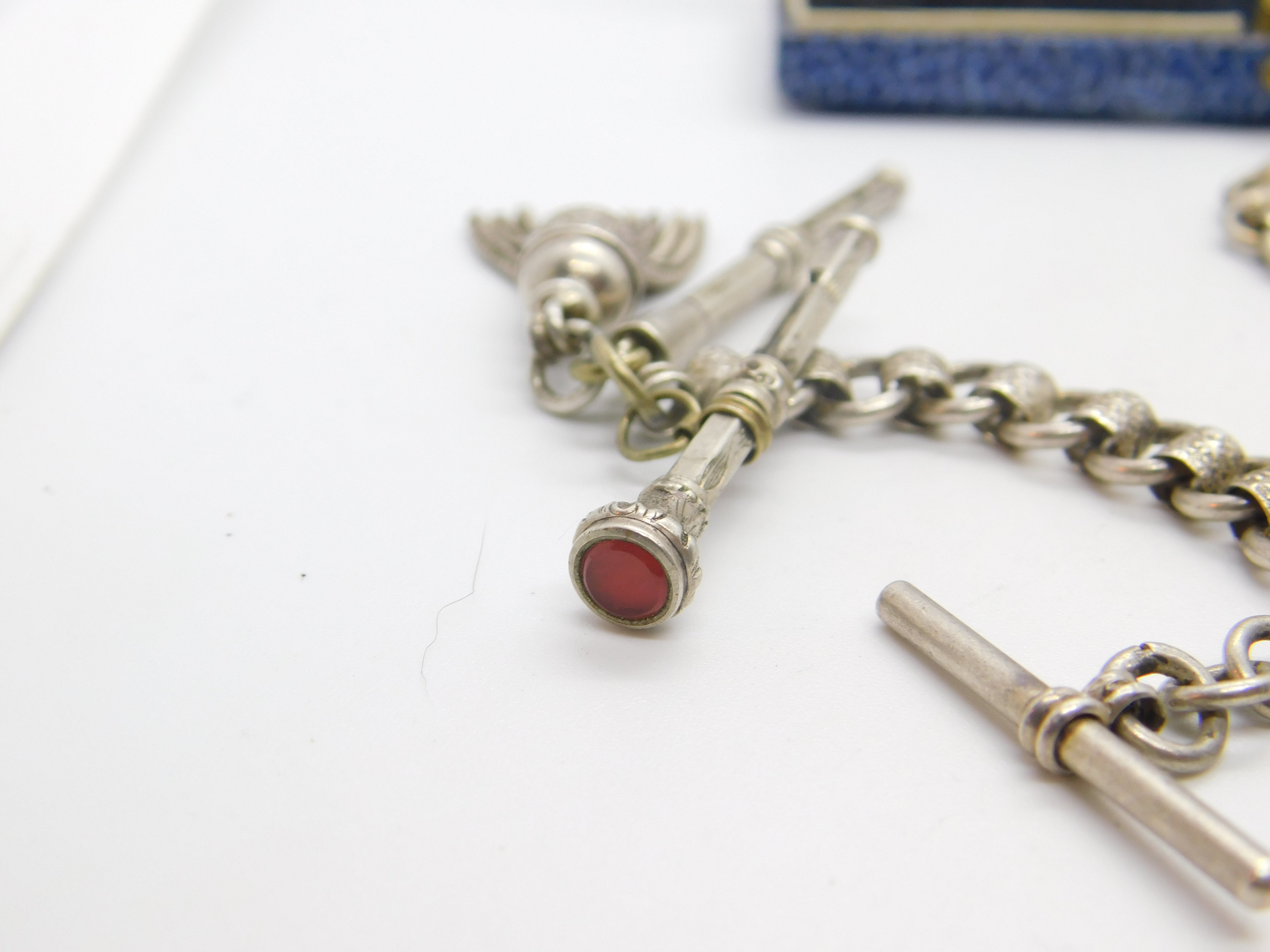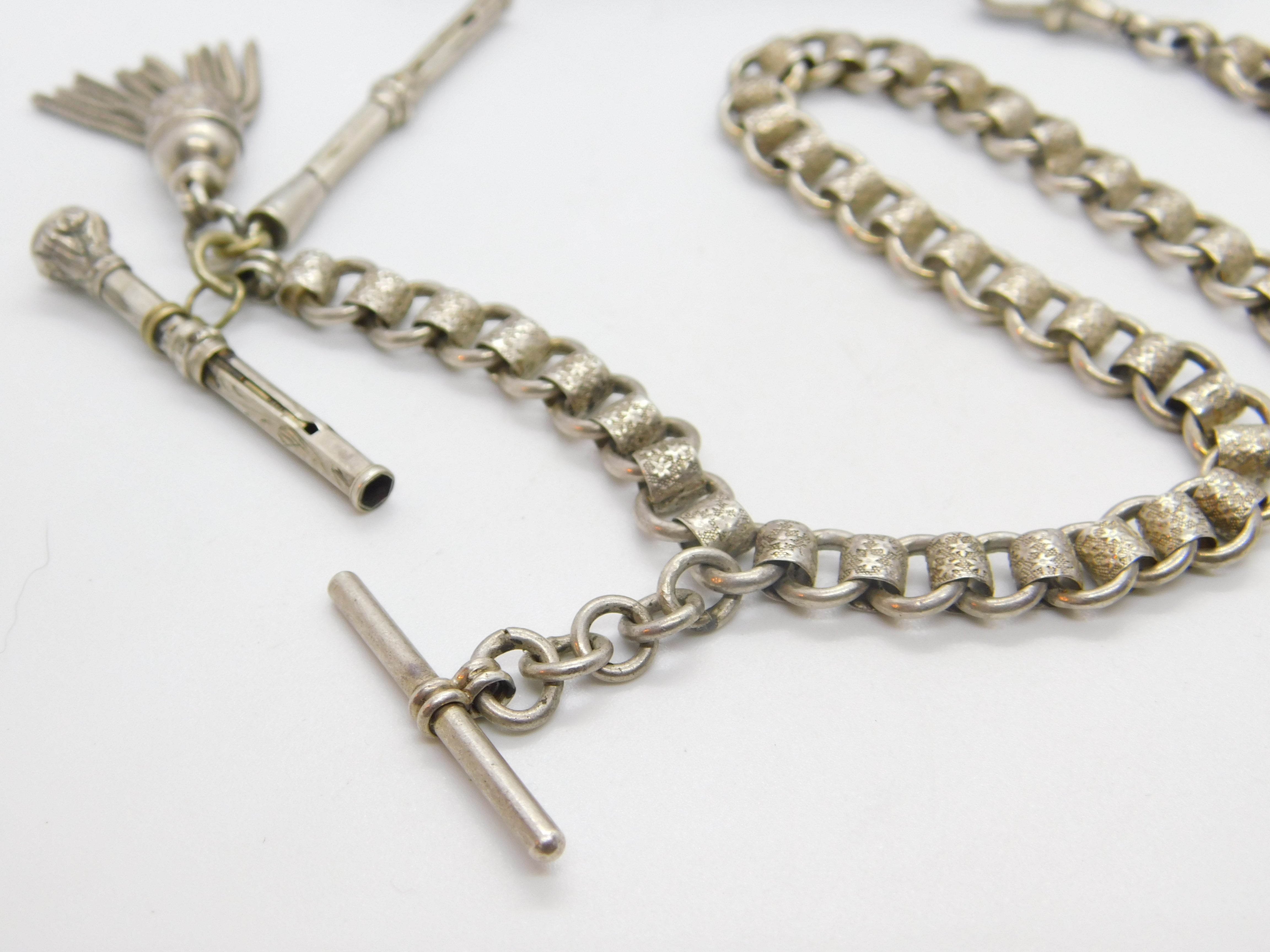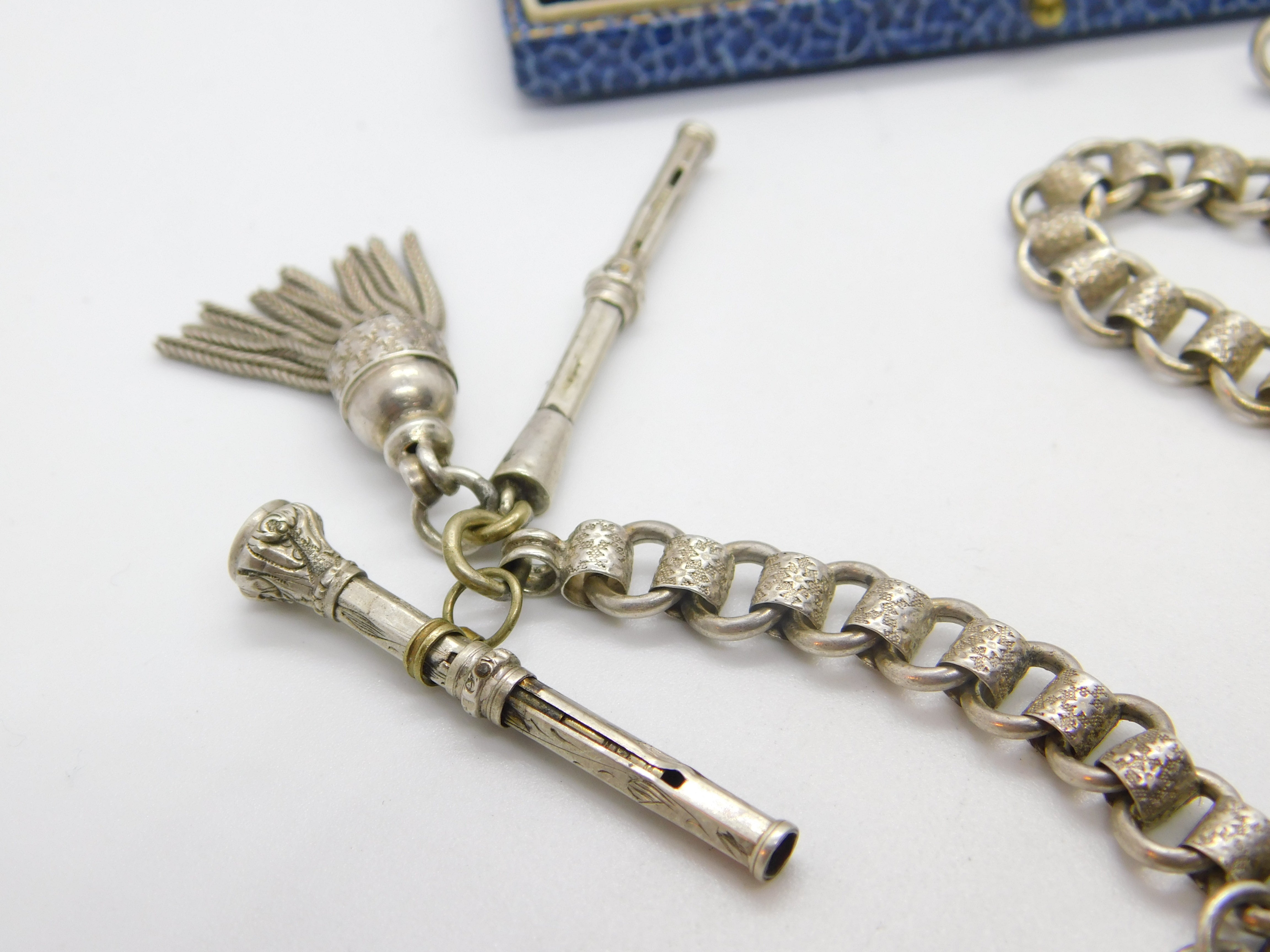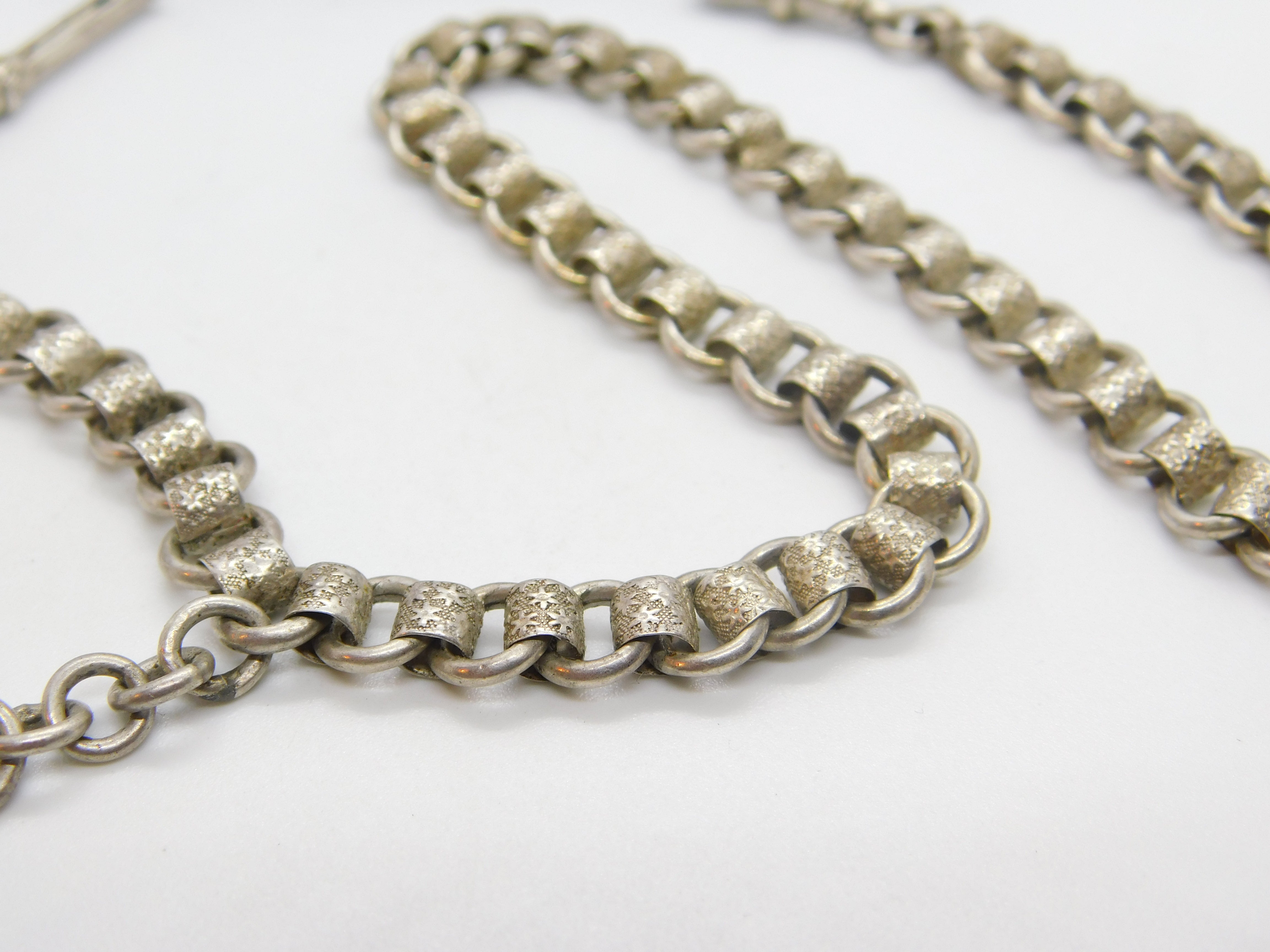 Victorian Sterling Silver Floral Collar Watch Chain with Fobs Antique c1860