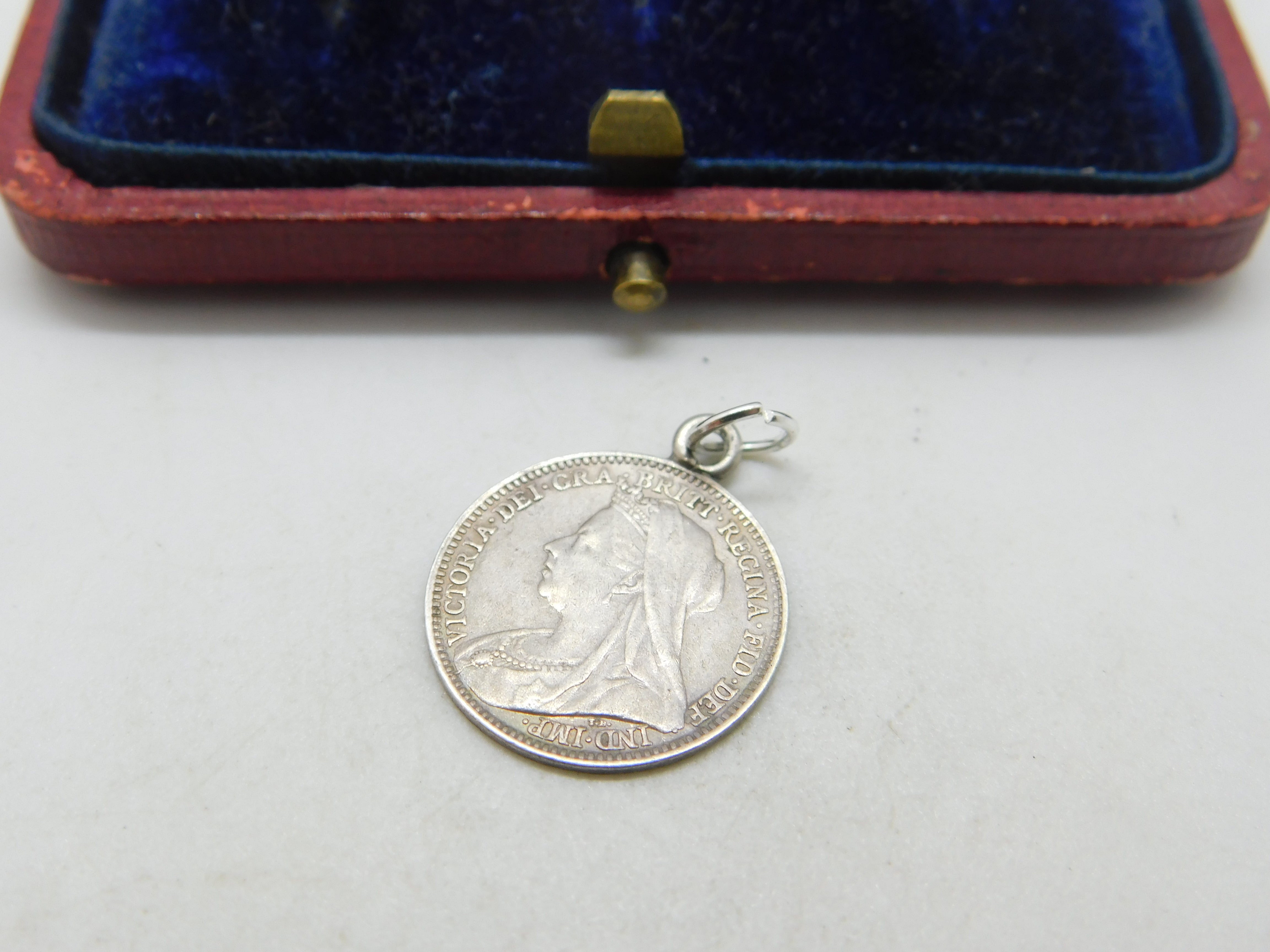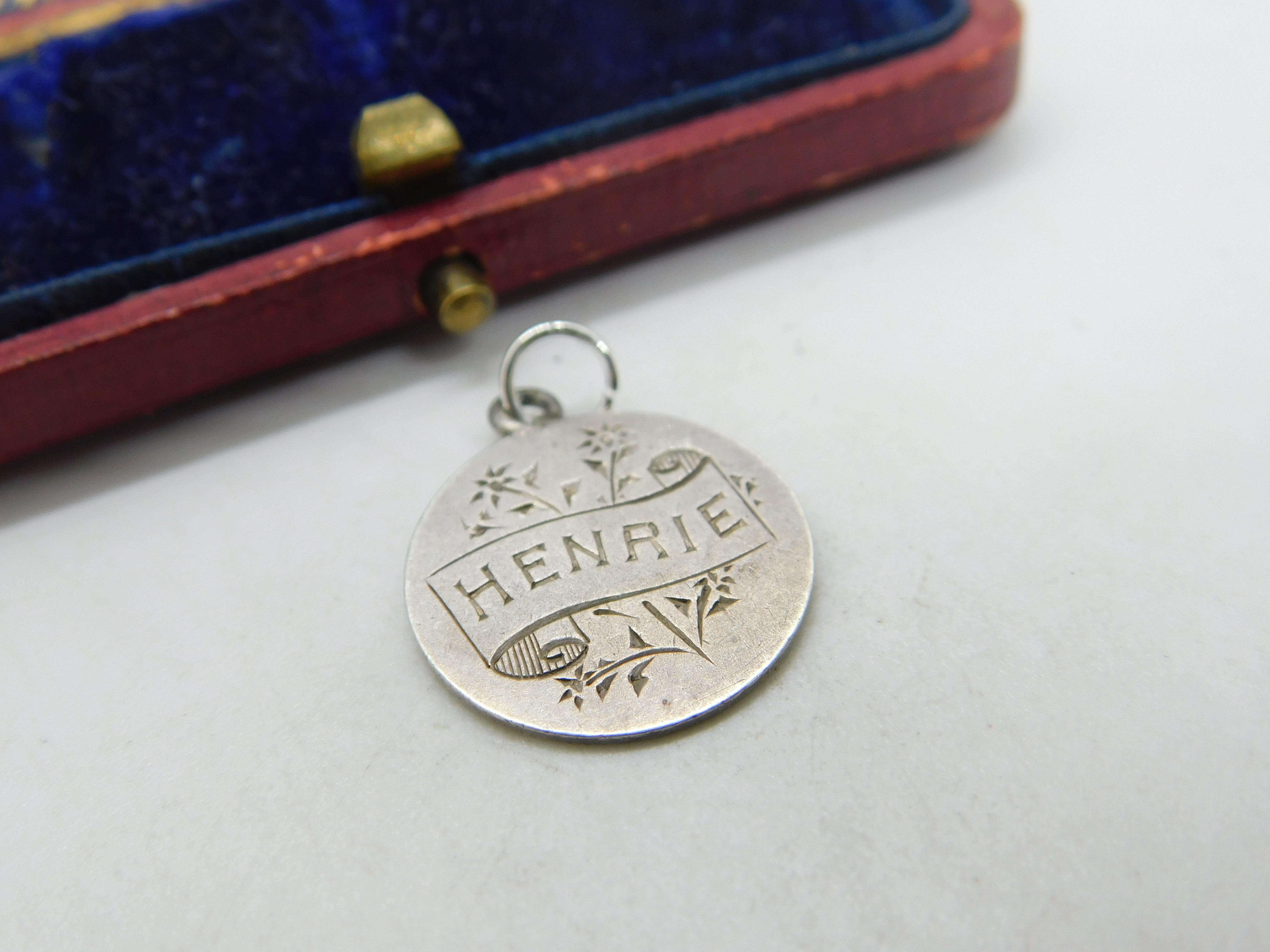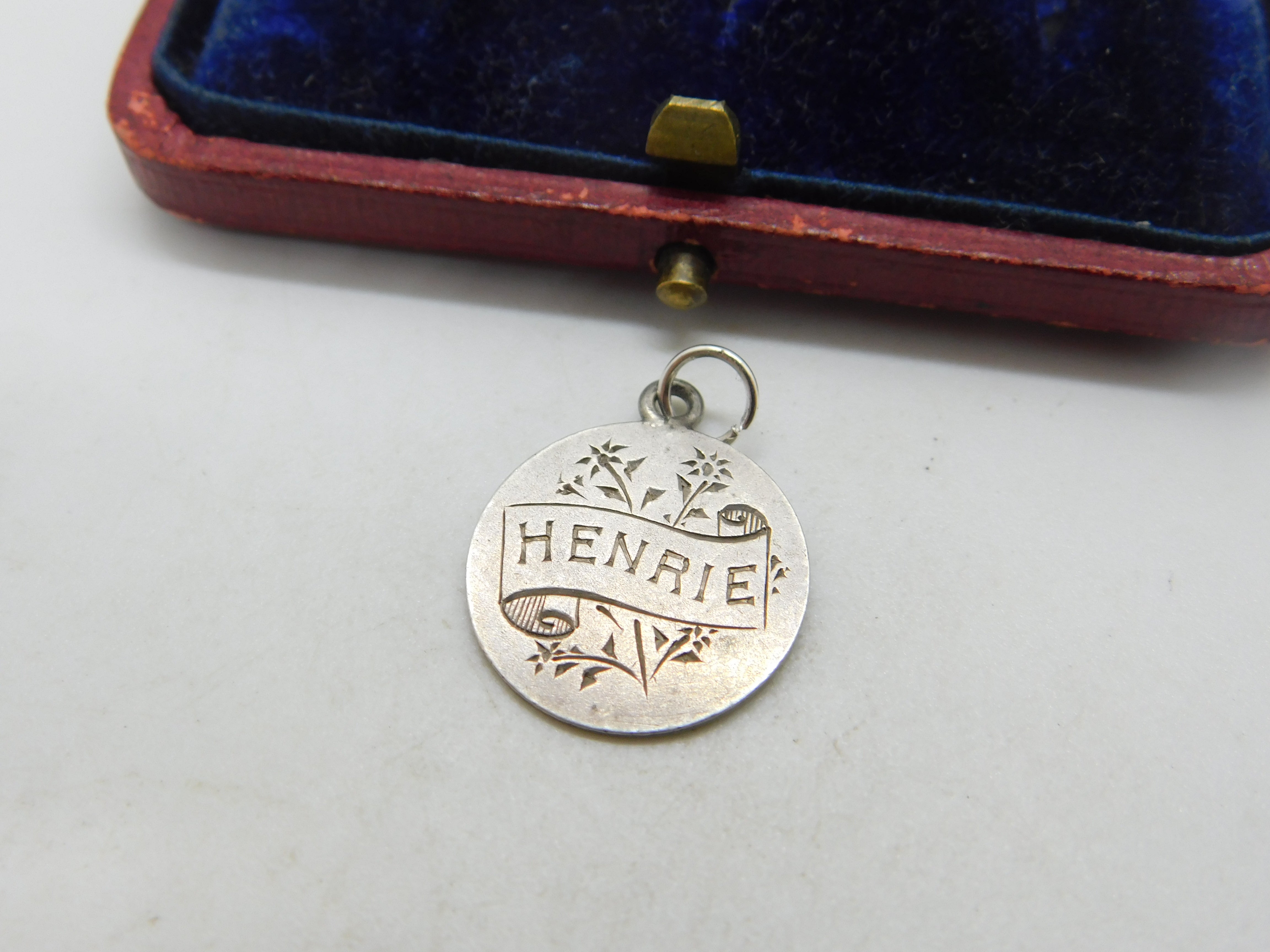 Details: A fantastic and wonderfully designed antique Victorian sterling silver Love Token crafted from a Queen Victoria threepence coin with the name Henrie to the front c1890. This is a wonderful item that would make a perfect gift or addition to any collection. The BOX pictured is for PRESENTATION ONLY and is NOT included in the listings but used to frame the pictures unless specifically stated otherwise.