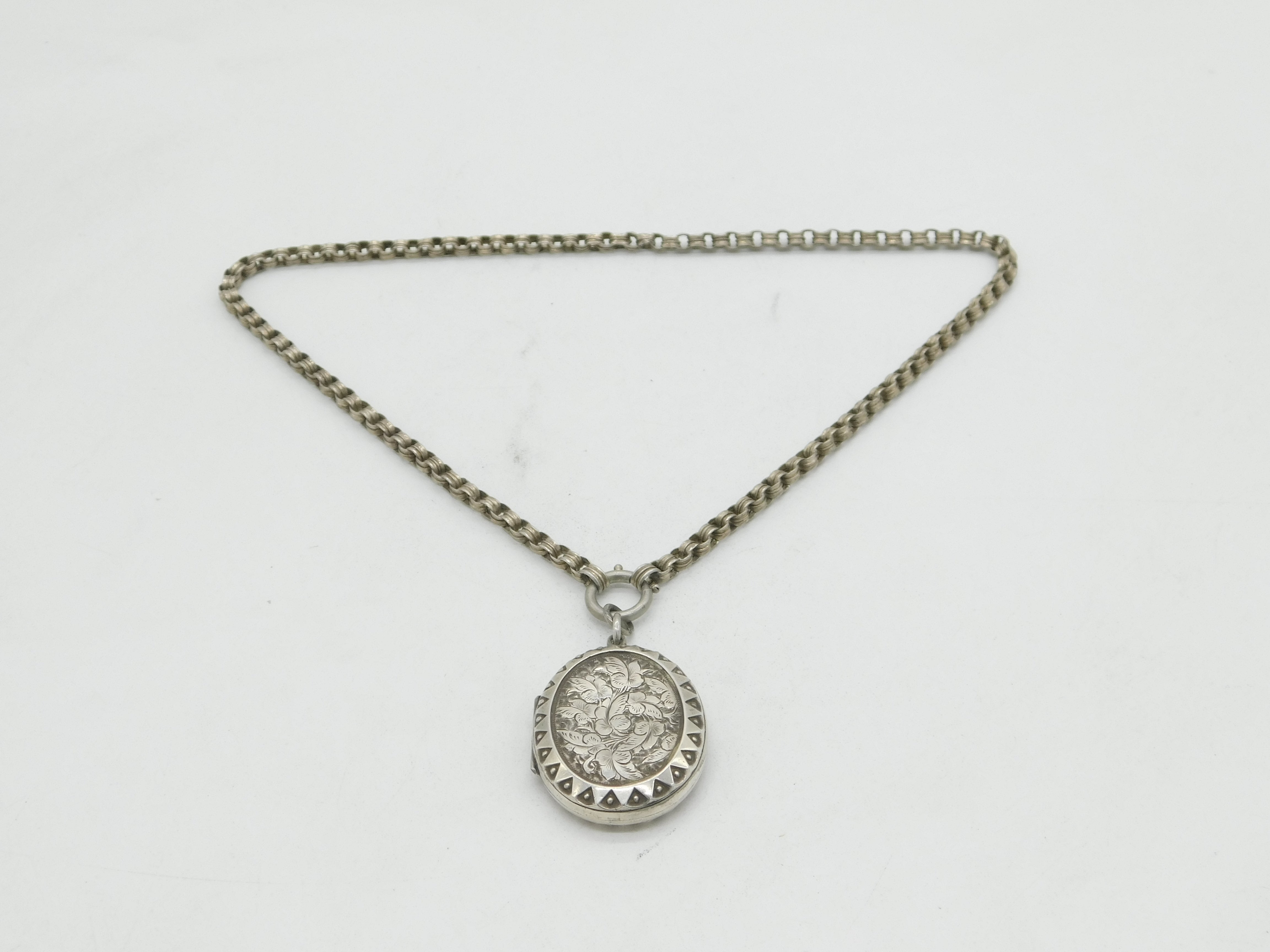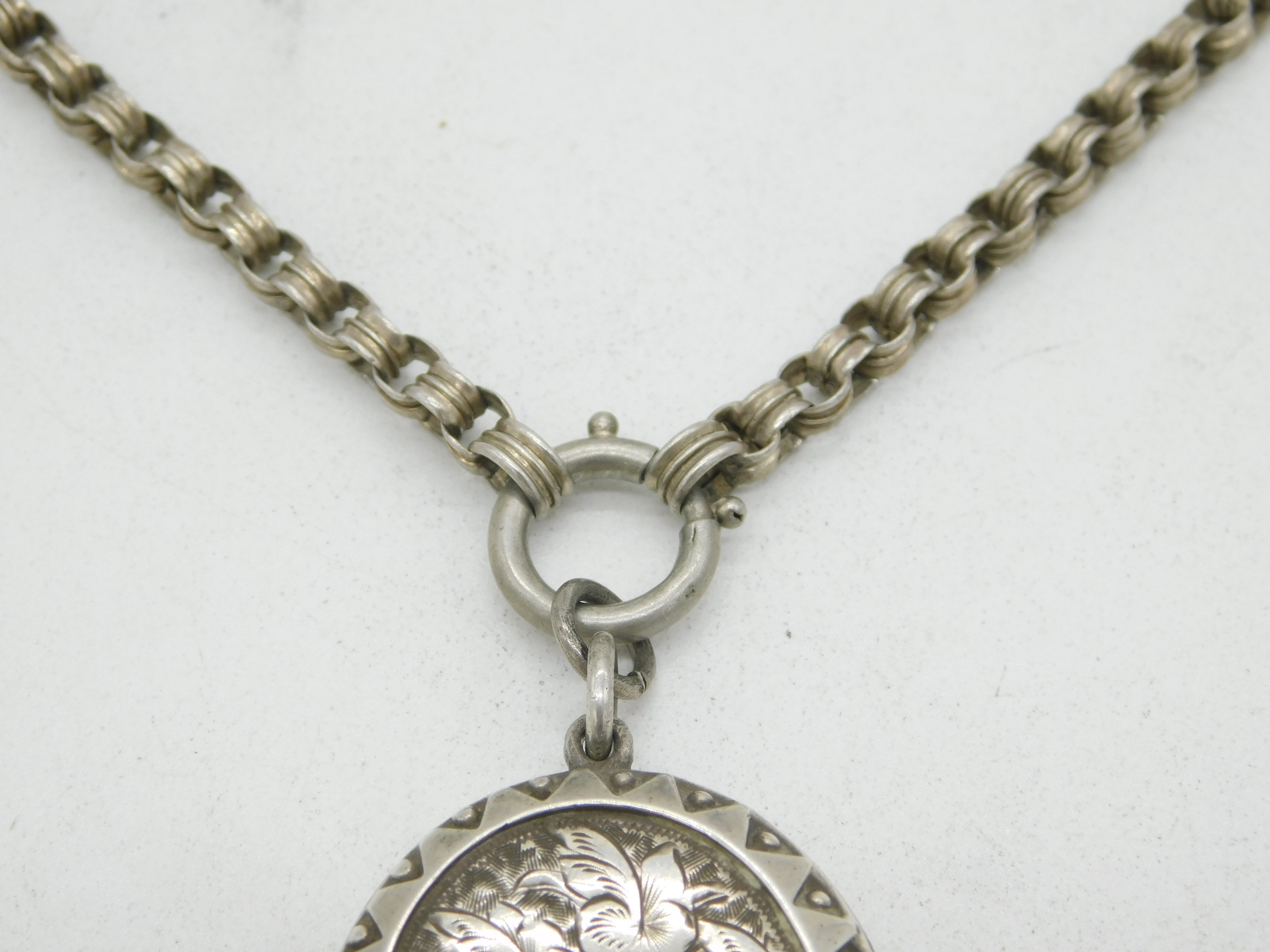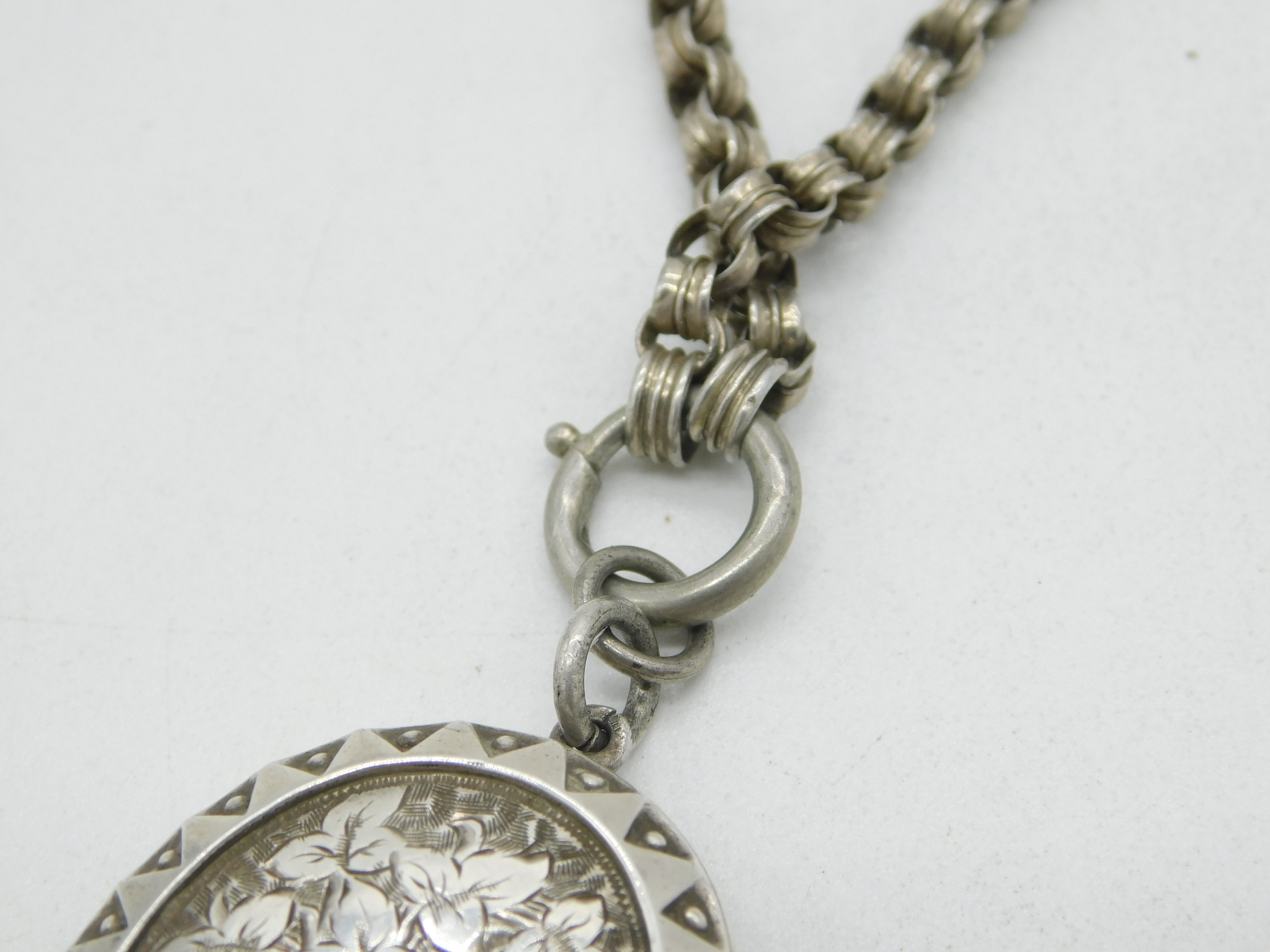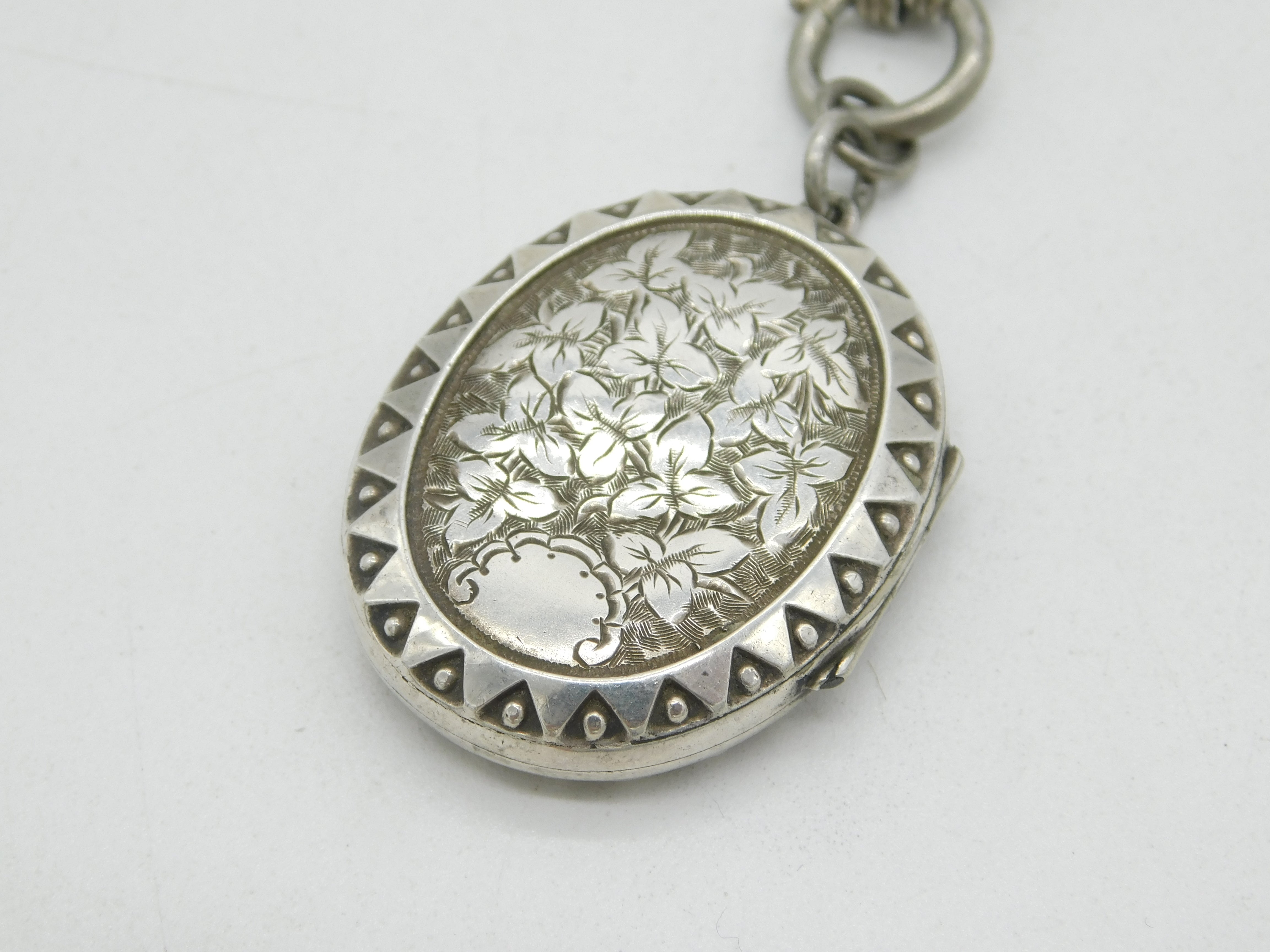 Victorian Sterling Silver Ivy Leaf Pattern Locket Necklace Antique c1880