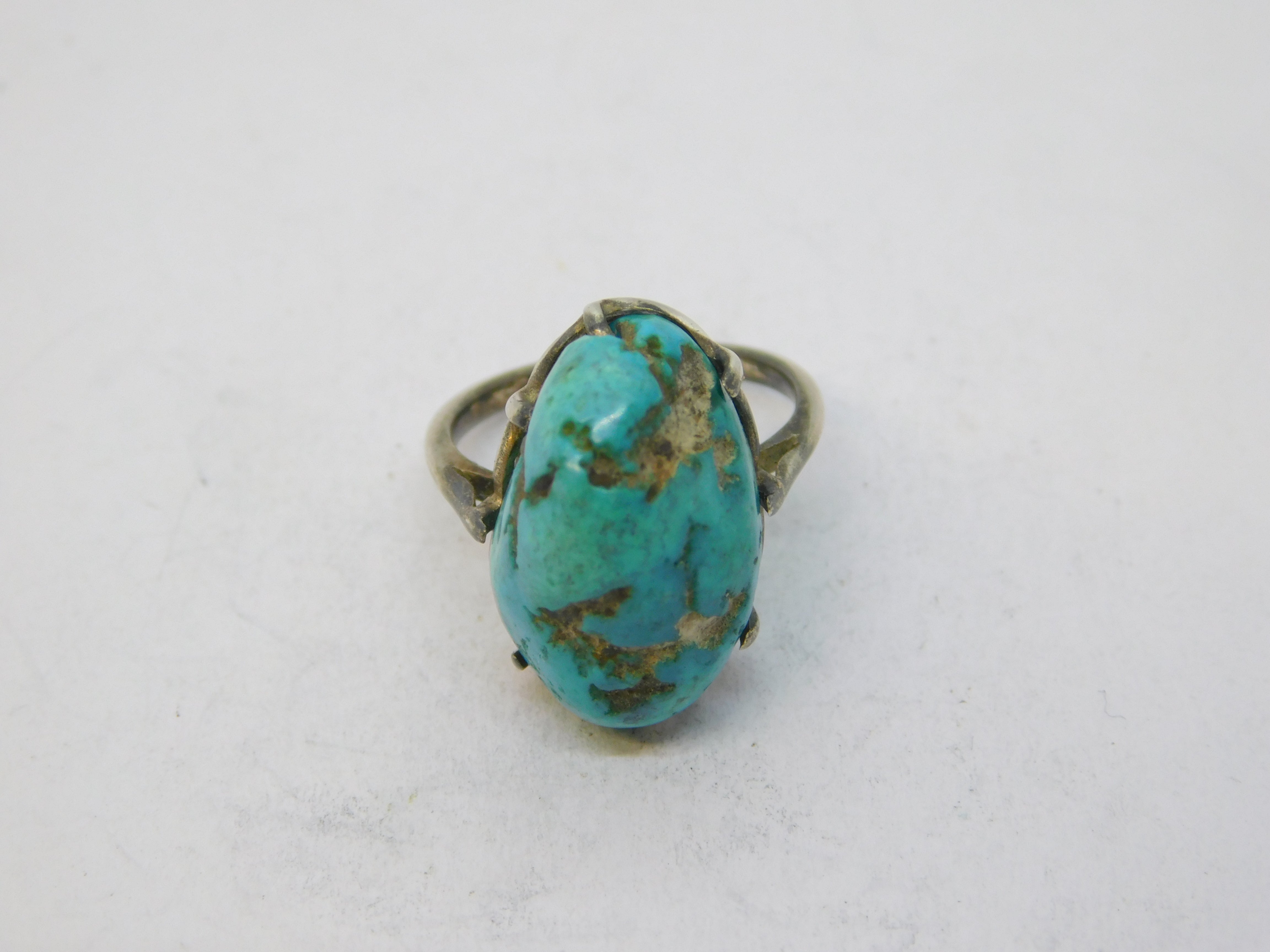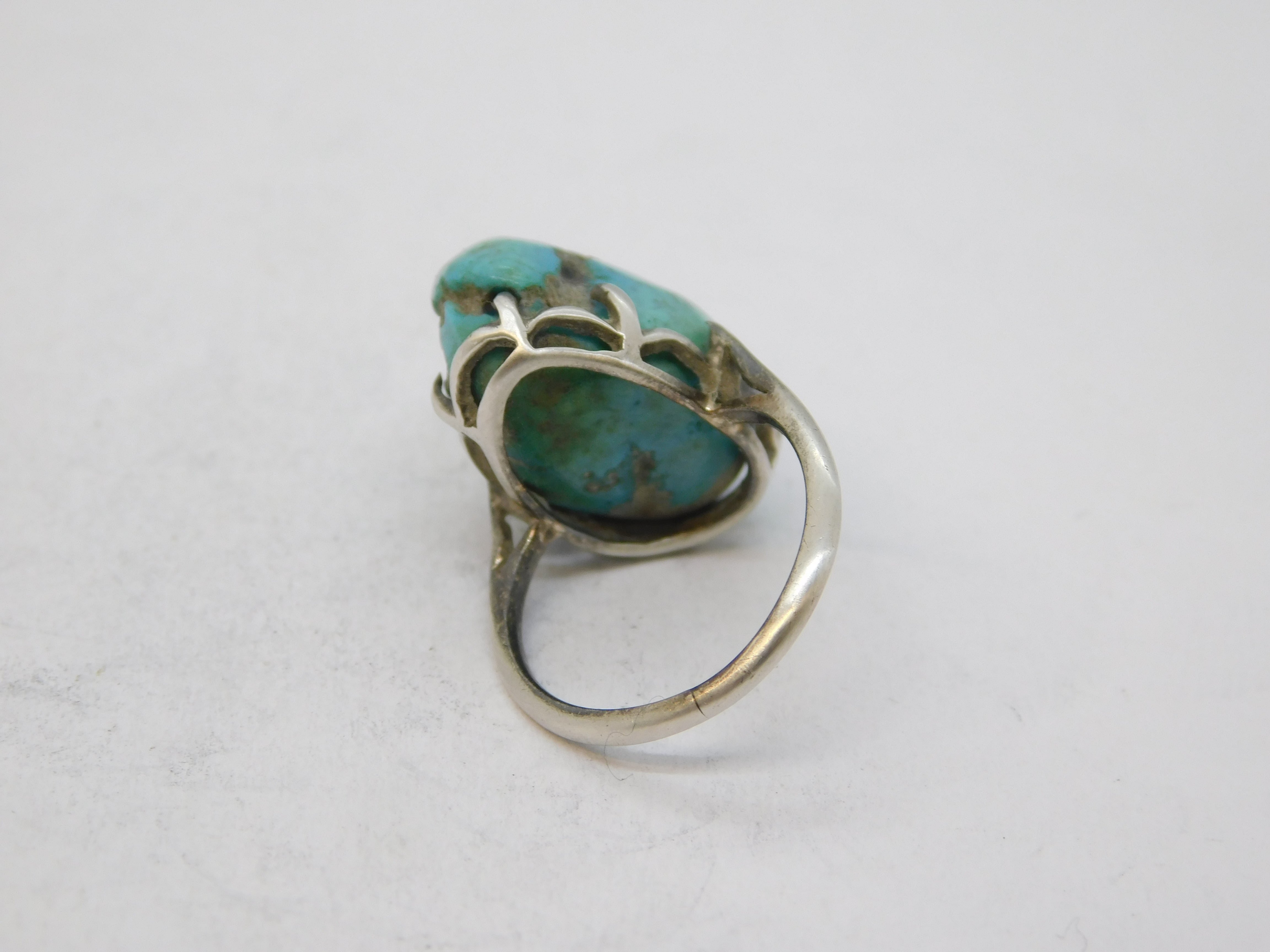 Victorian Sterling Silver Large Natural Turquoise Dress Ring Antique c1900