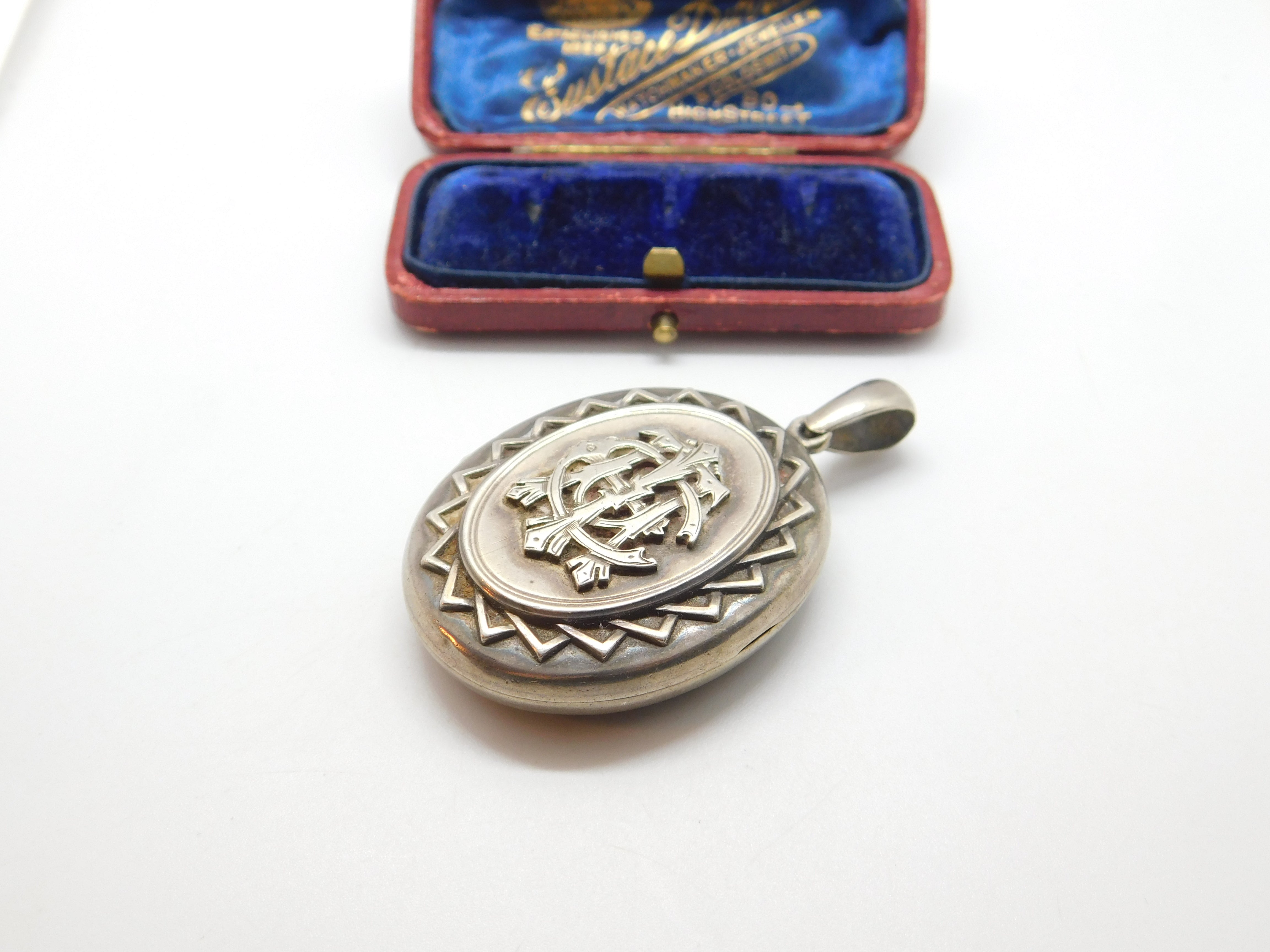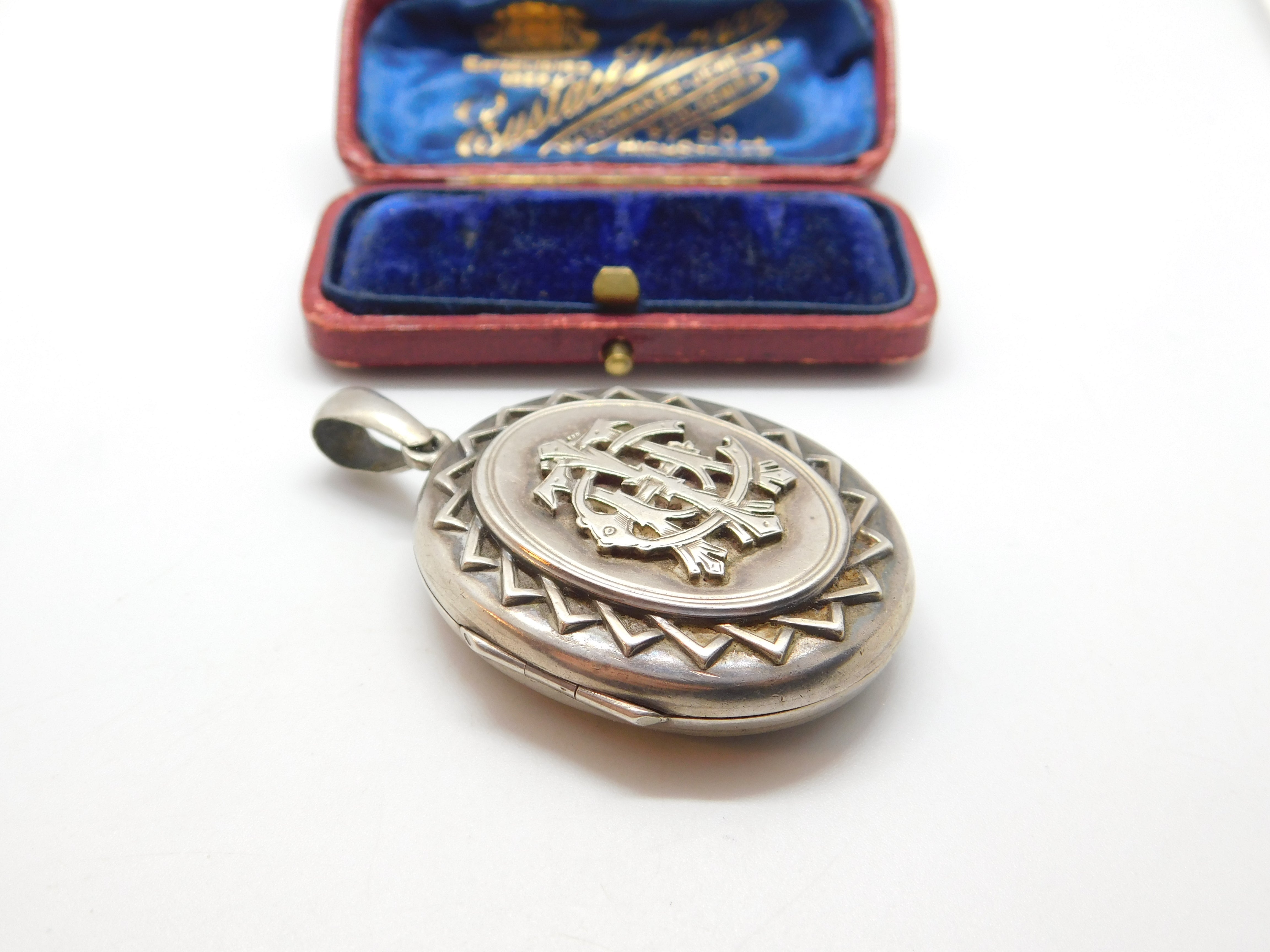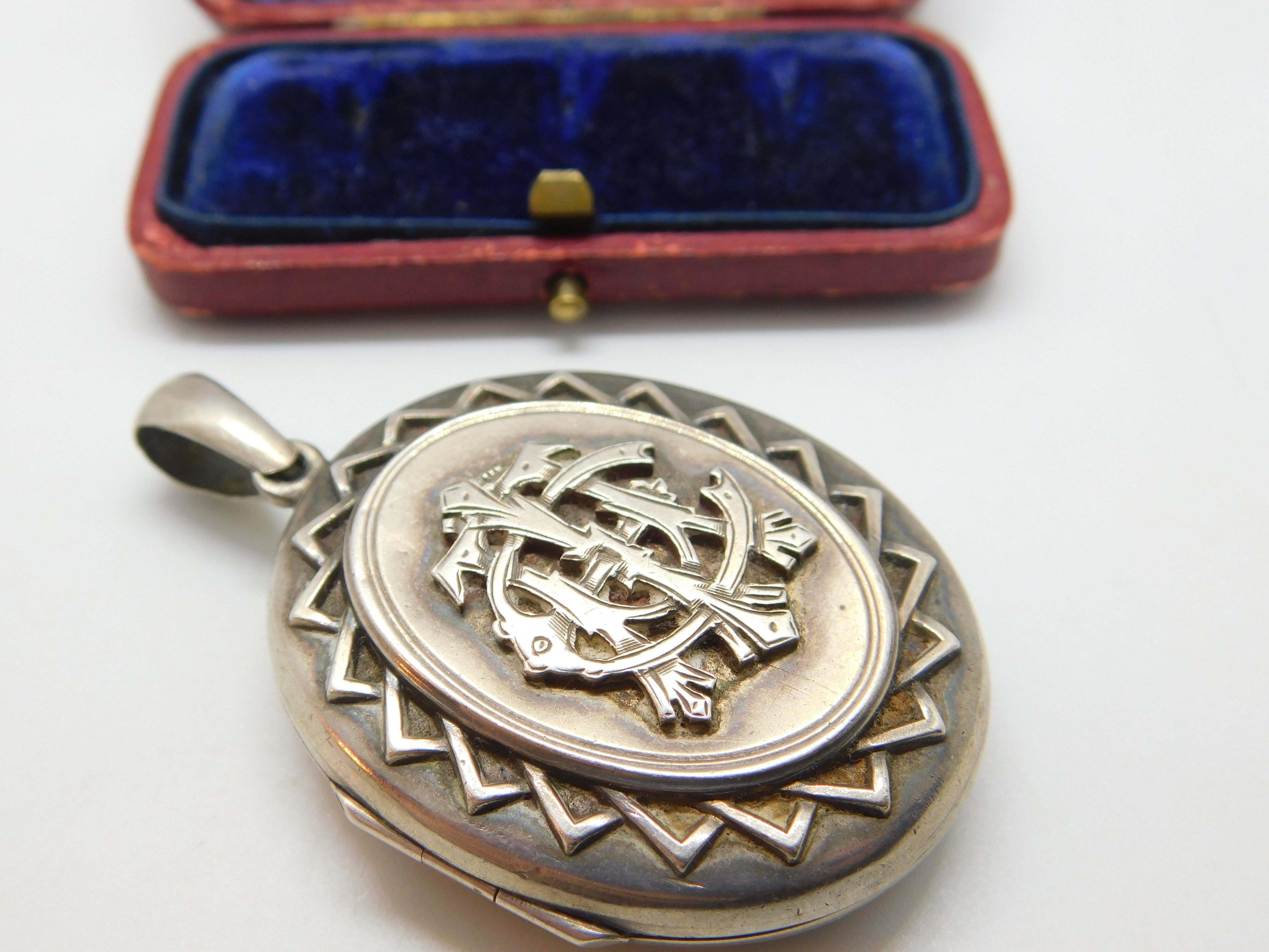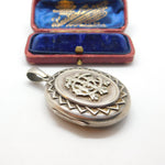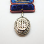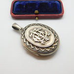 Victorian Sterling Silver Monogram Mourning Locket Pendant Antique c1860