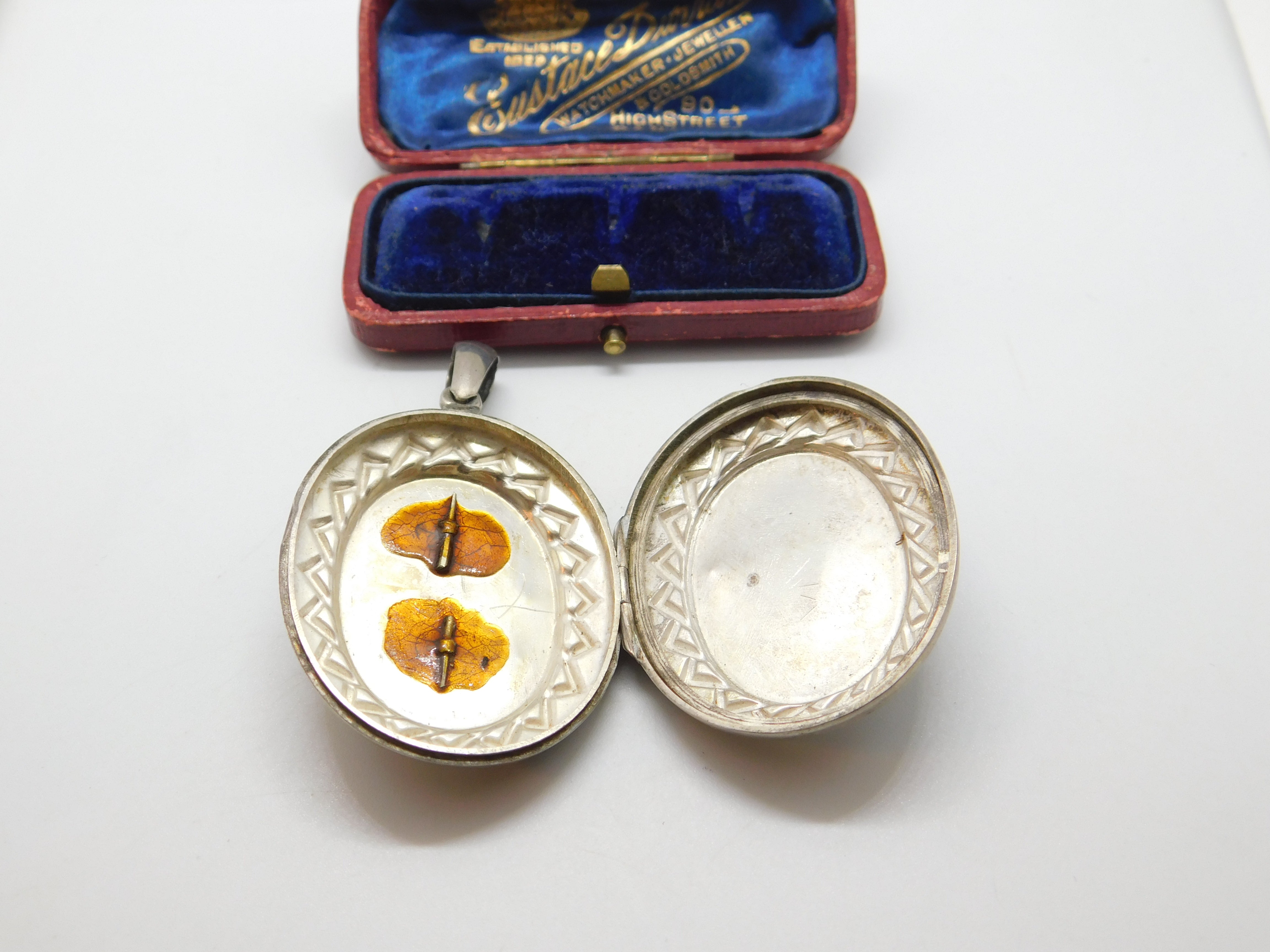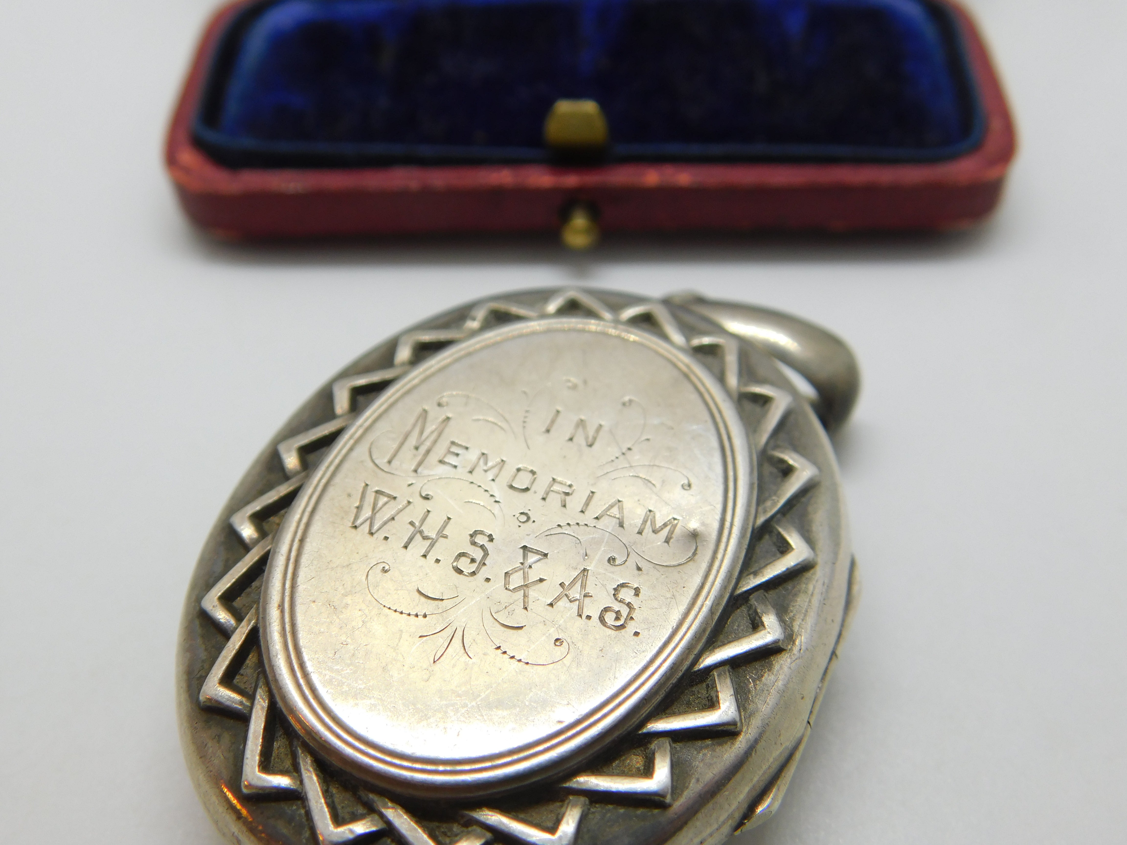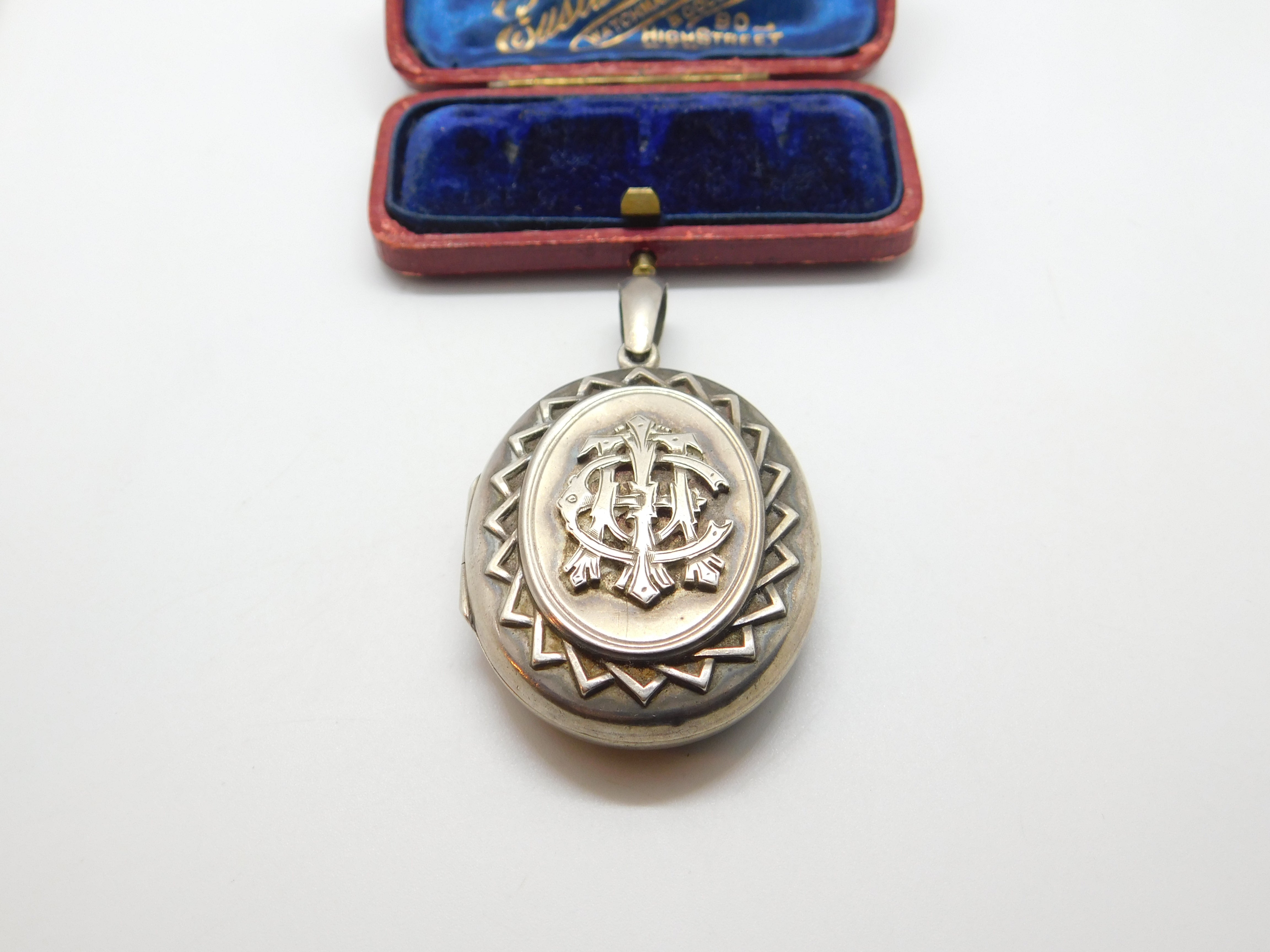 Victorian Sterling Silver Monogram Mourning Locket Pendant Antique c1860