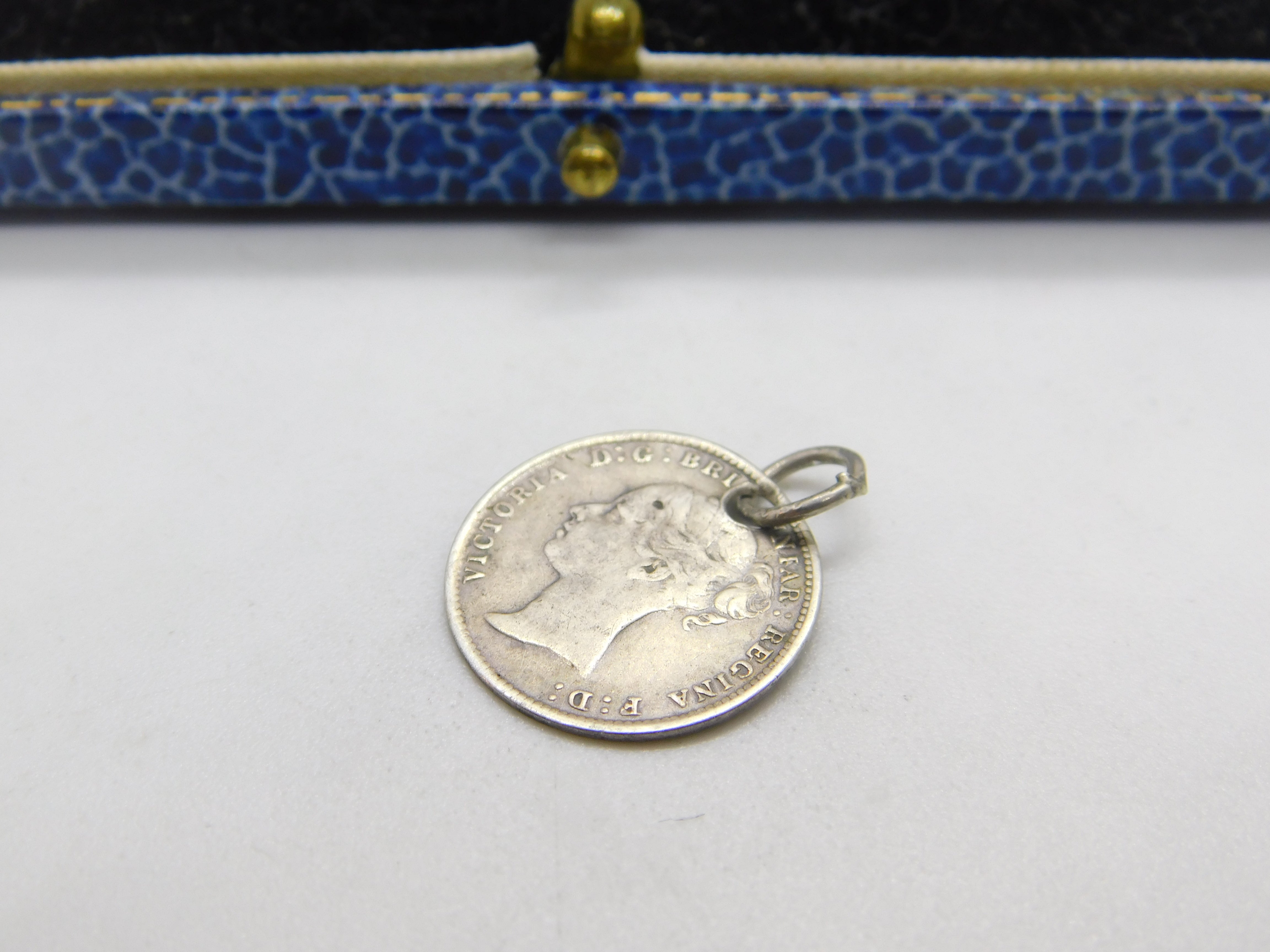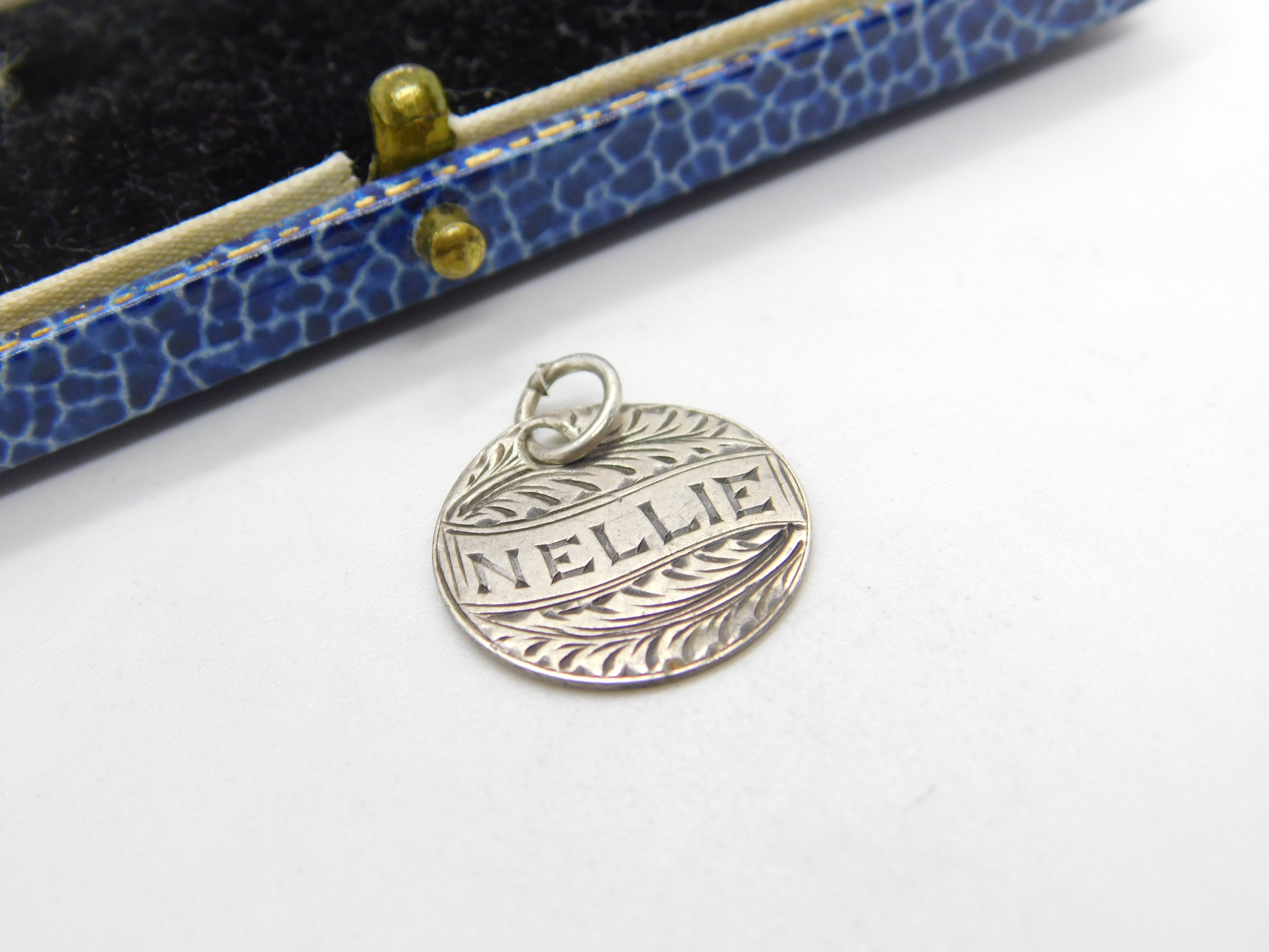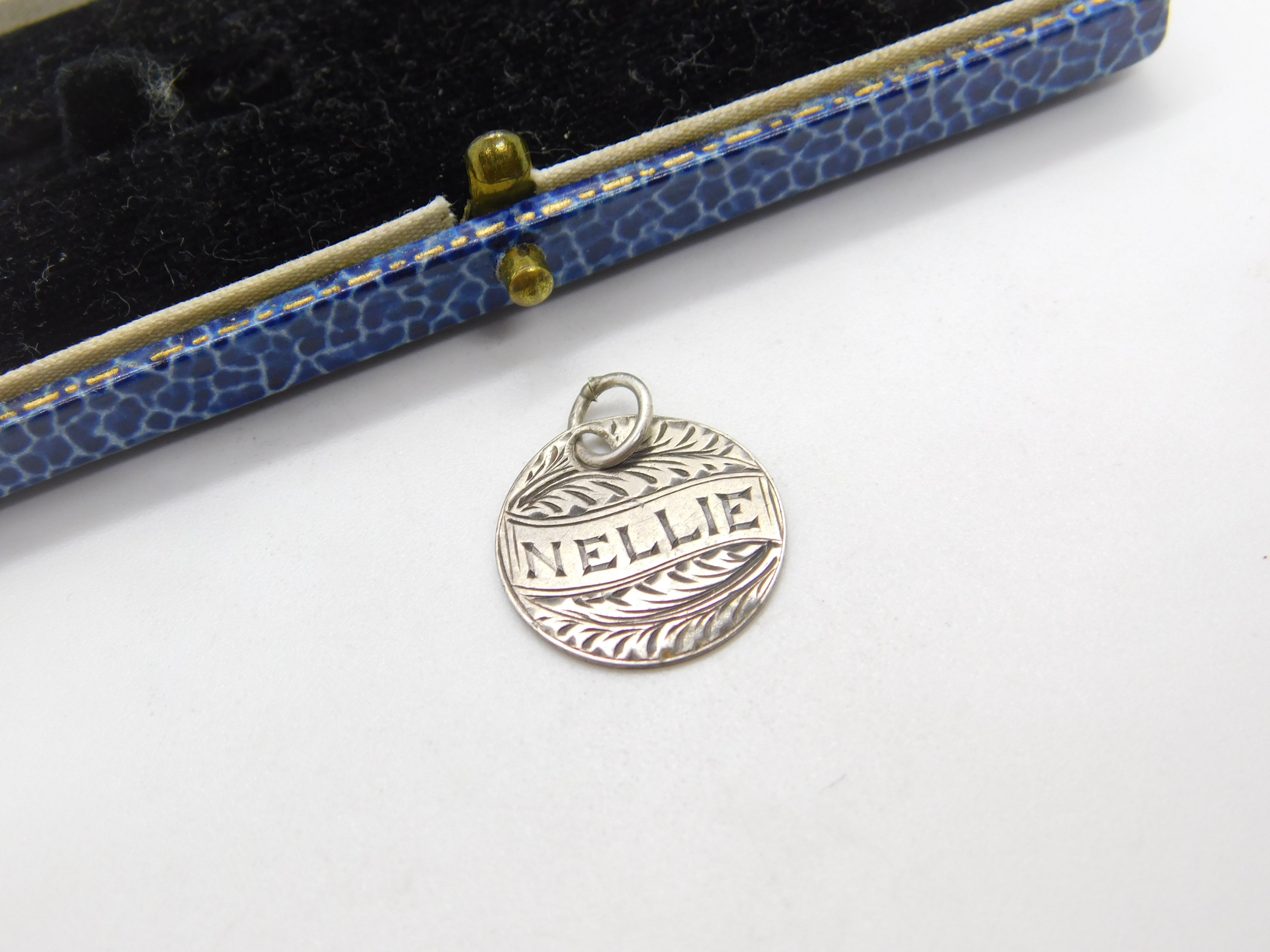 Victorian Sterling Silver 'Nellie' Love Token Charm Pendant Threepence c1885