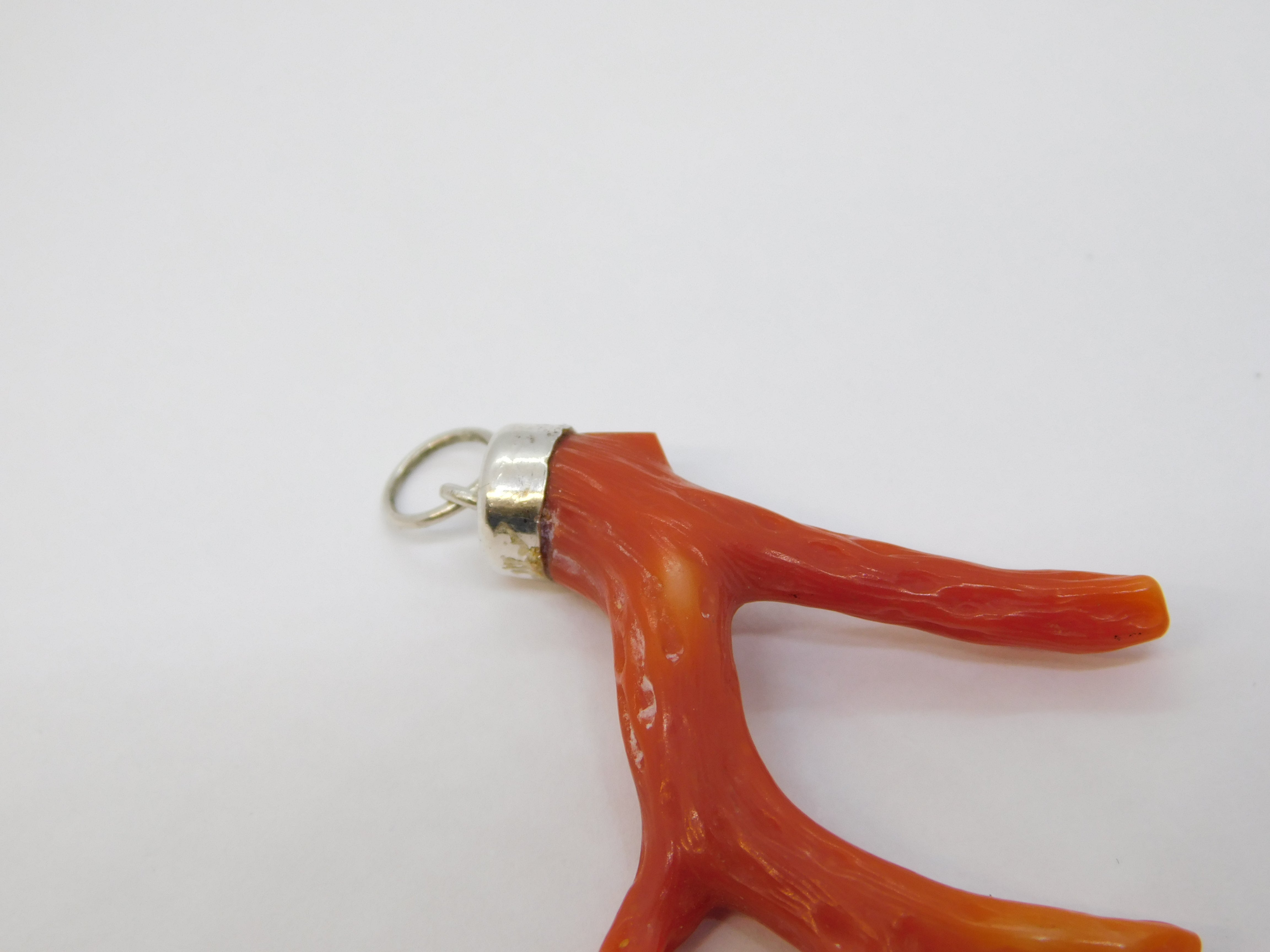 Victorian Sterling Silver Red Coral Specimen Pendant Antique c1880