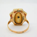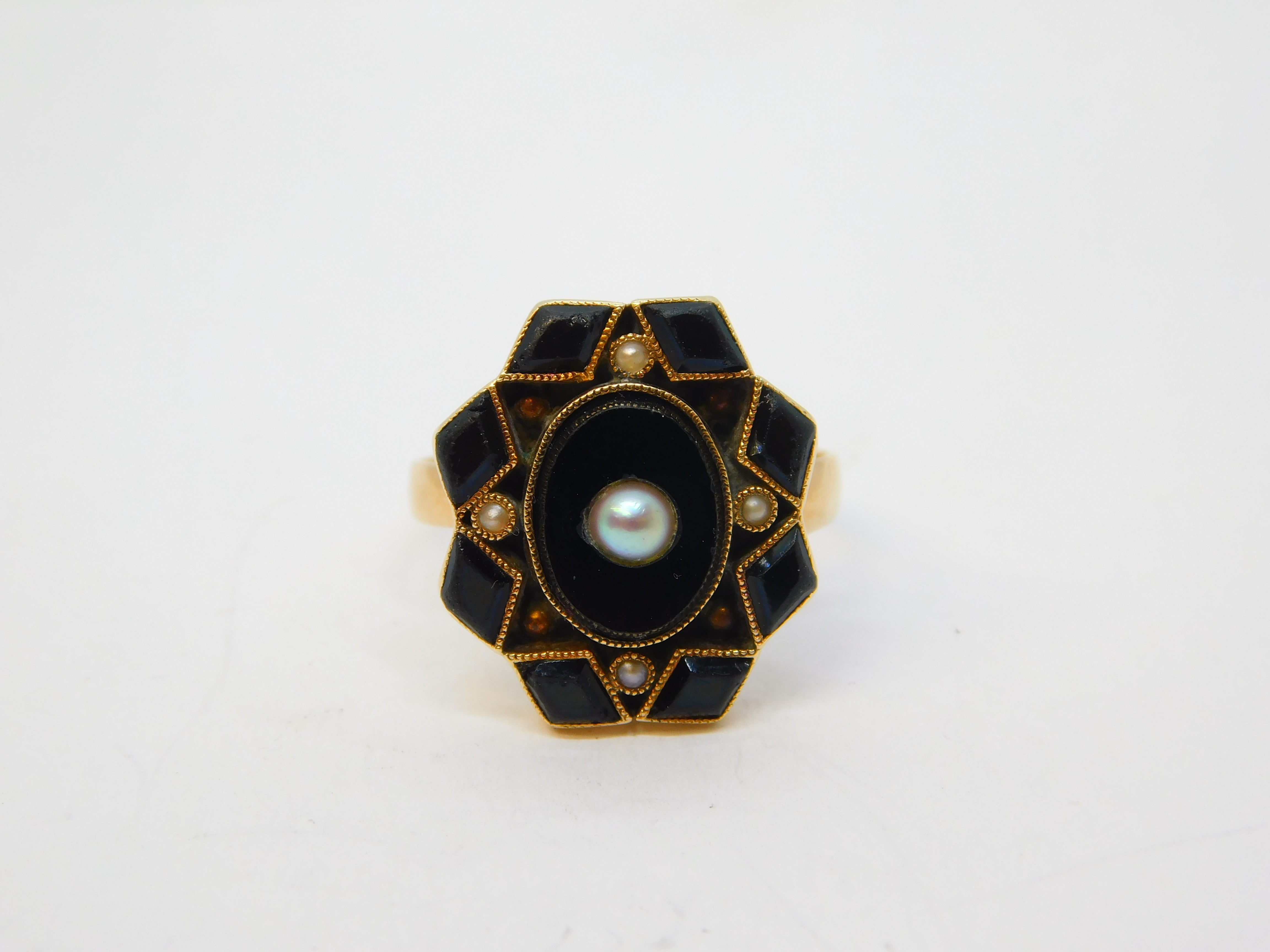 Details: A fantastic and wonderfully designed antique Victorian yellow gold ornate mourning ring set with multiple panels of carved jet alongside seed pearls c1860, the gold has been XRF tested - please see pictures for report - tests as 11ct gold. This is a wonderful item that would make a perfect gift or addition to any collection. We are more than happy to provide XRF reports for items upon request.