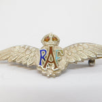 WWII-era Sterling Silver & Enamel RAF Wings Sweetheart Brooch Antique c1940