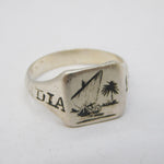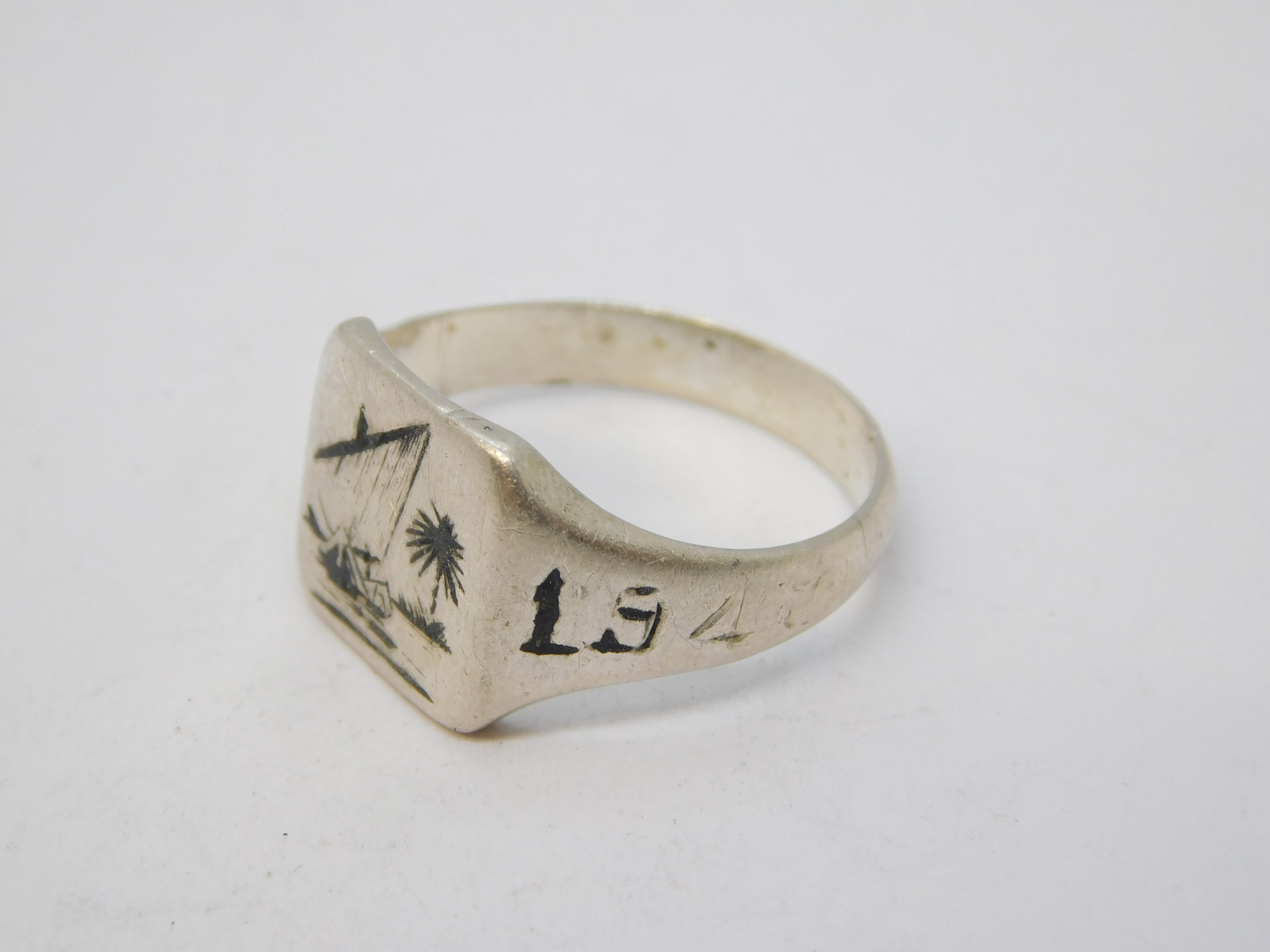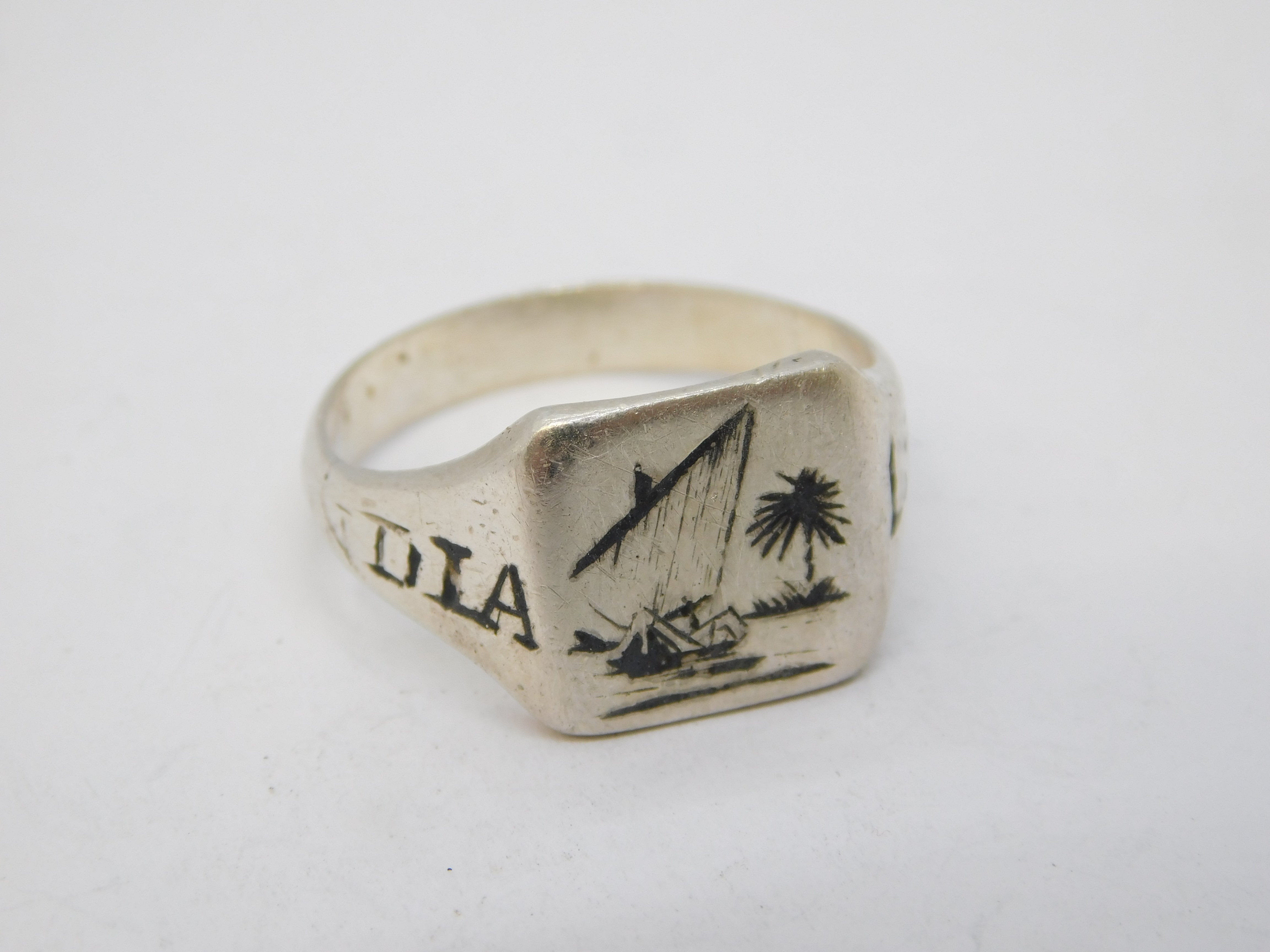 WWII-era Sterling Silver Niello 'India, 1943' Wartime Signet Ring Antique