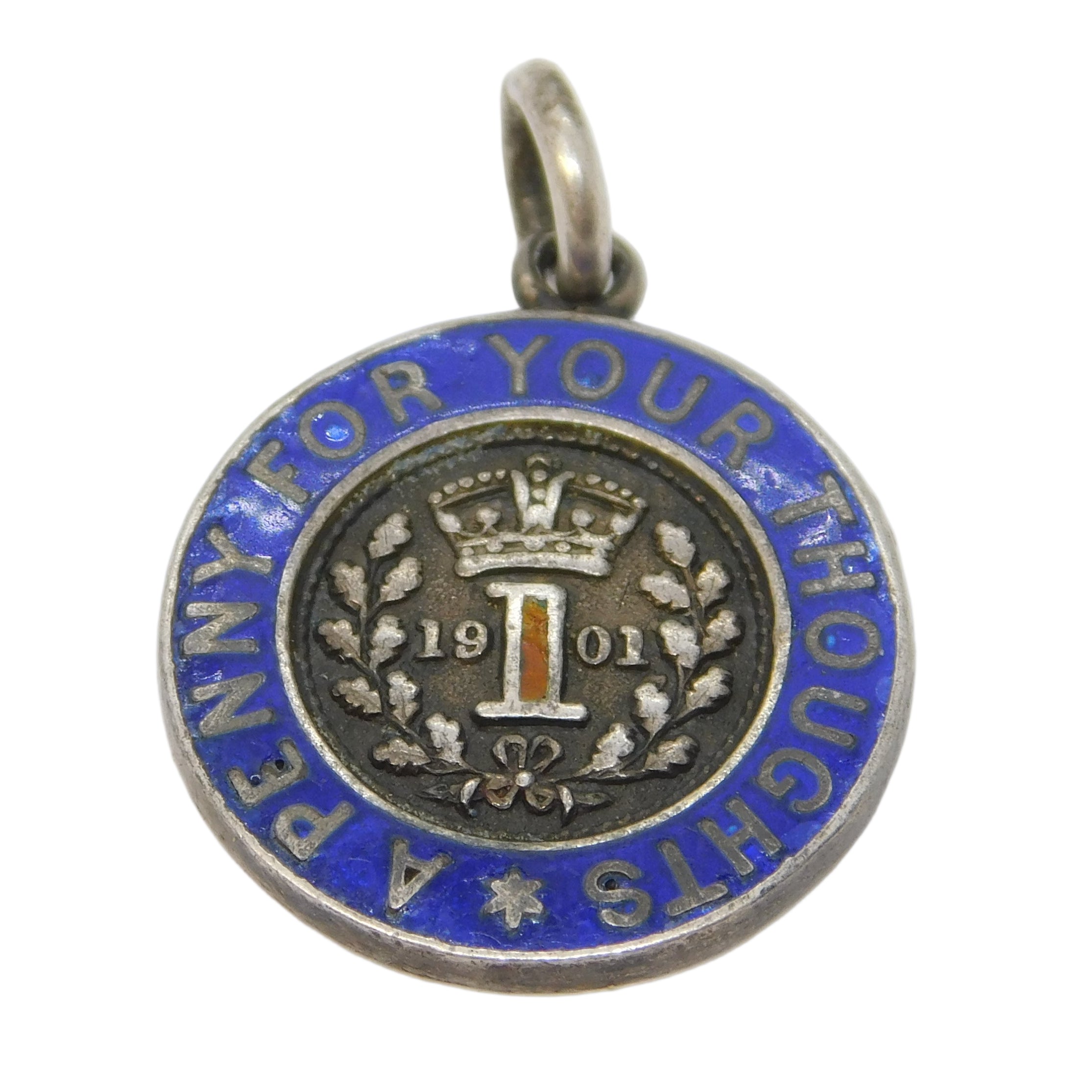 Victorian Silver & Enamel 'Penny for Your Thoughts' Maundy Charm Antique 1901