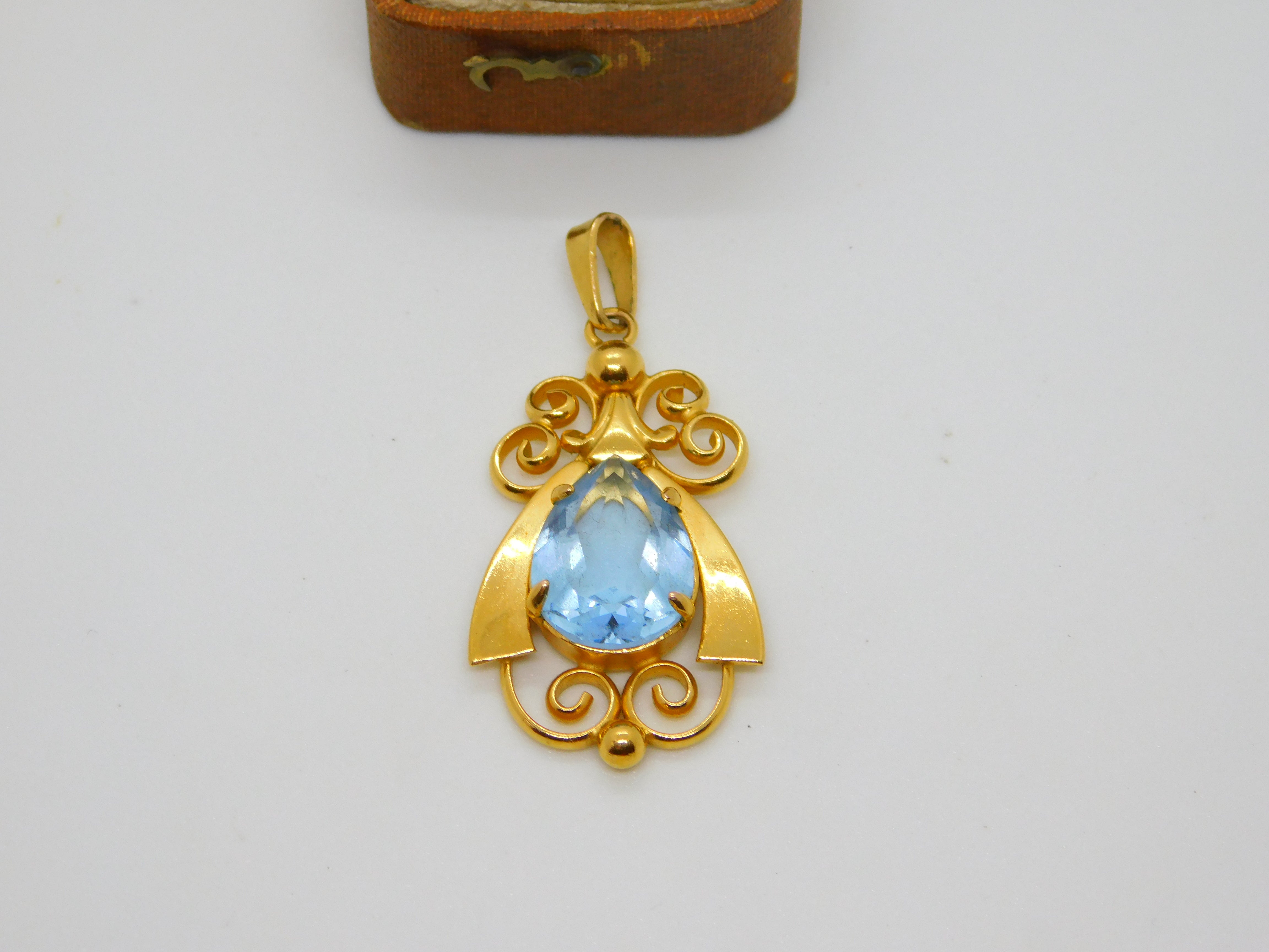 Charmaine Paris 15ct Rolled Gold Blue Topaz Set Drop Pendant Vintage c1960
