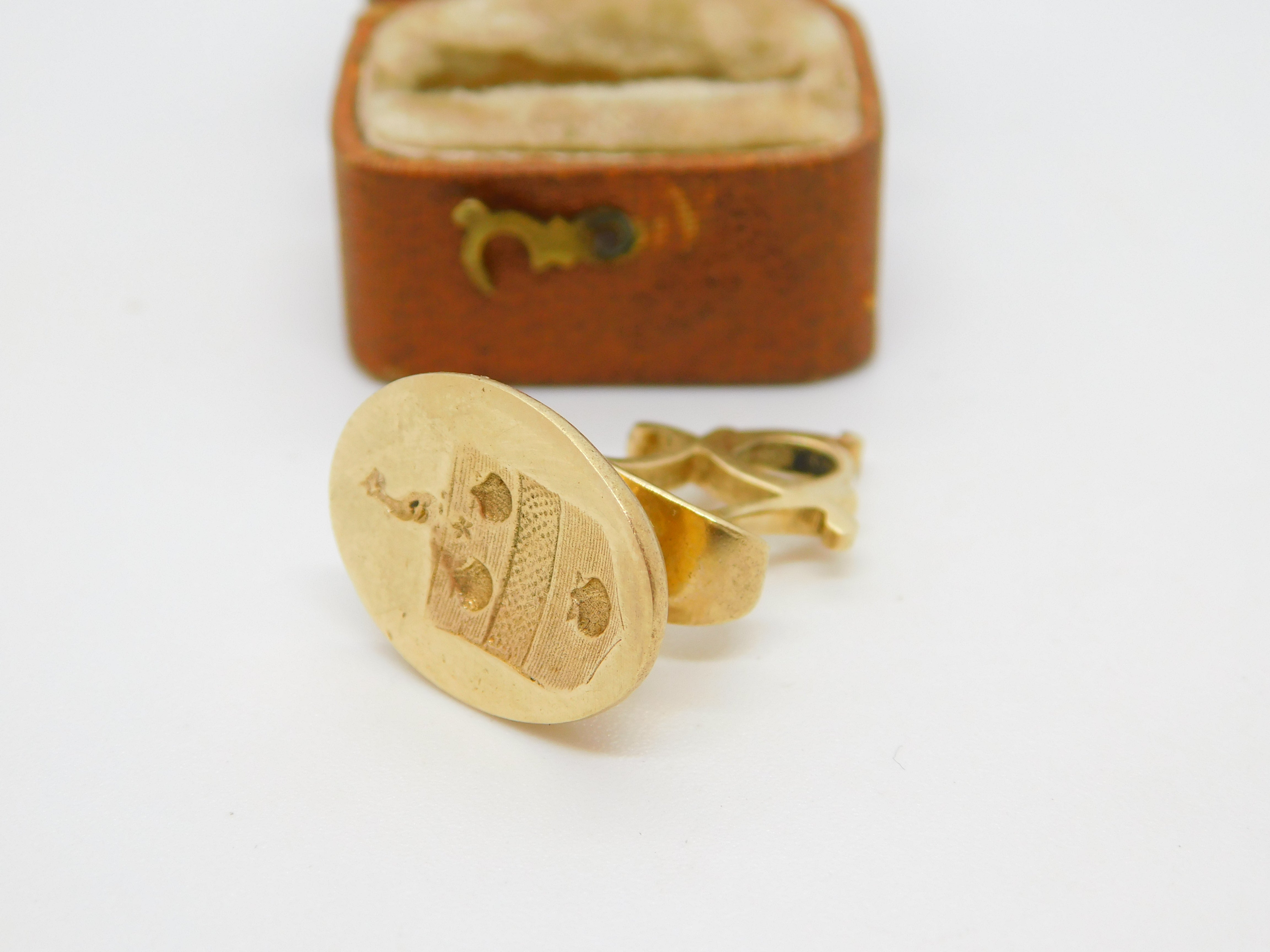 Georgian Cast 9ct Yellow Gold Heraldic Armorial Intaglio Seal Fob c1790 Antique