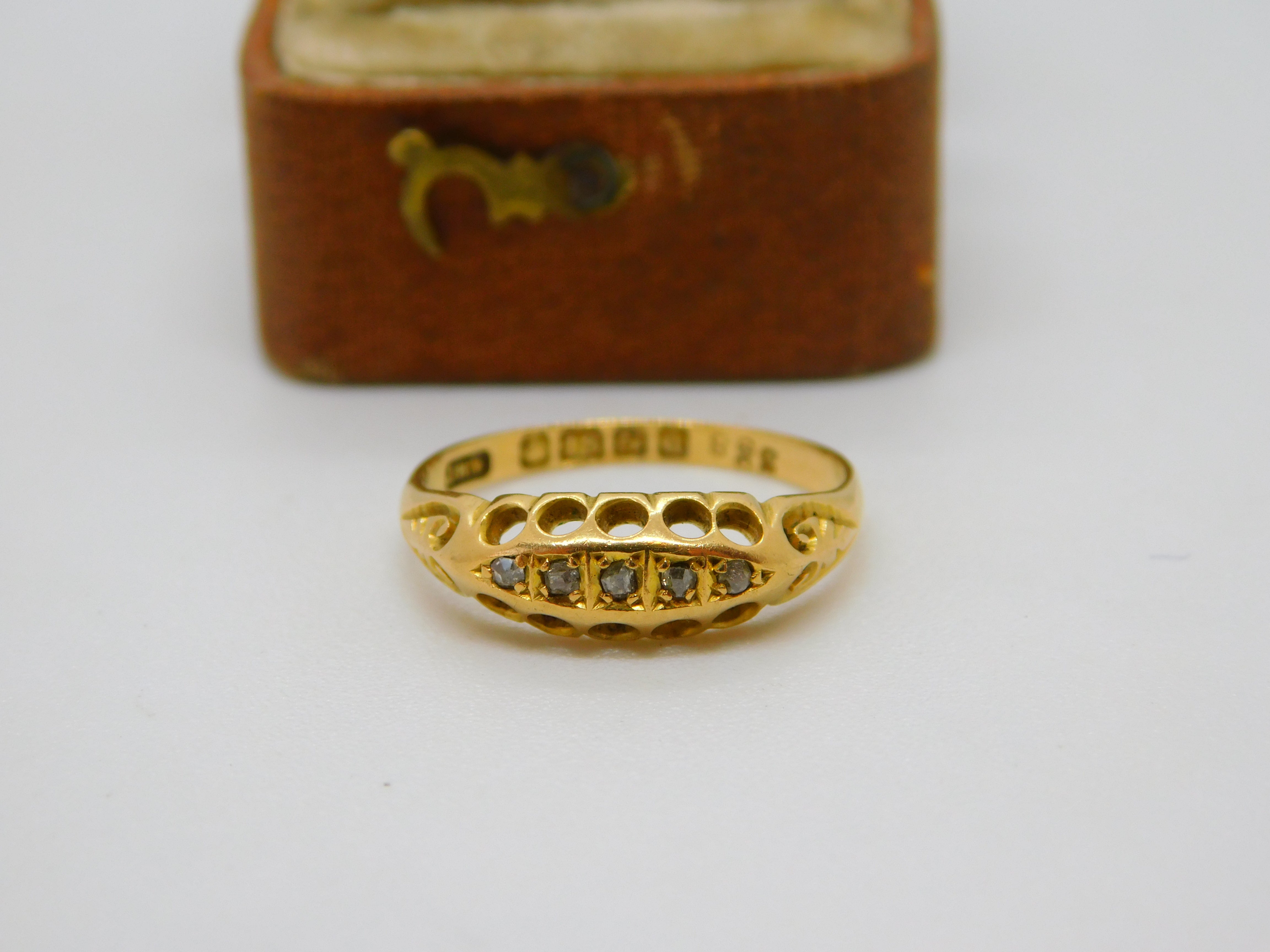 Edwardian 18ct Yellow Gold Five Stone Diamond Boat Ring 1903 Birmingham Antique