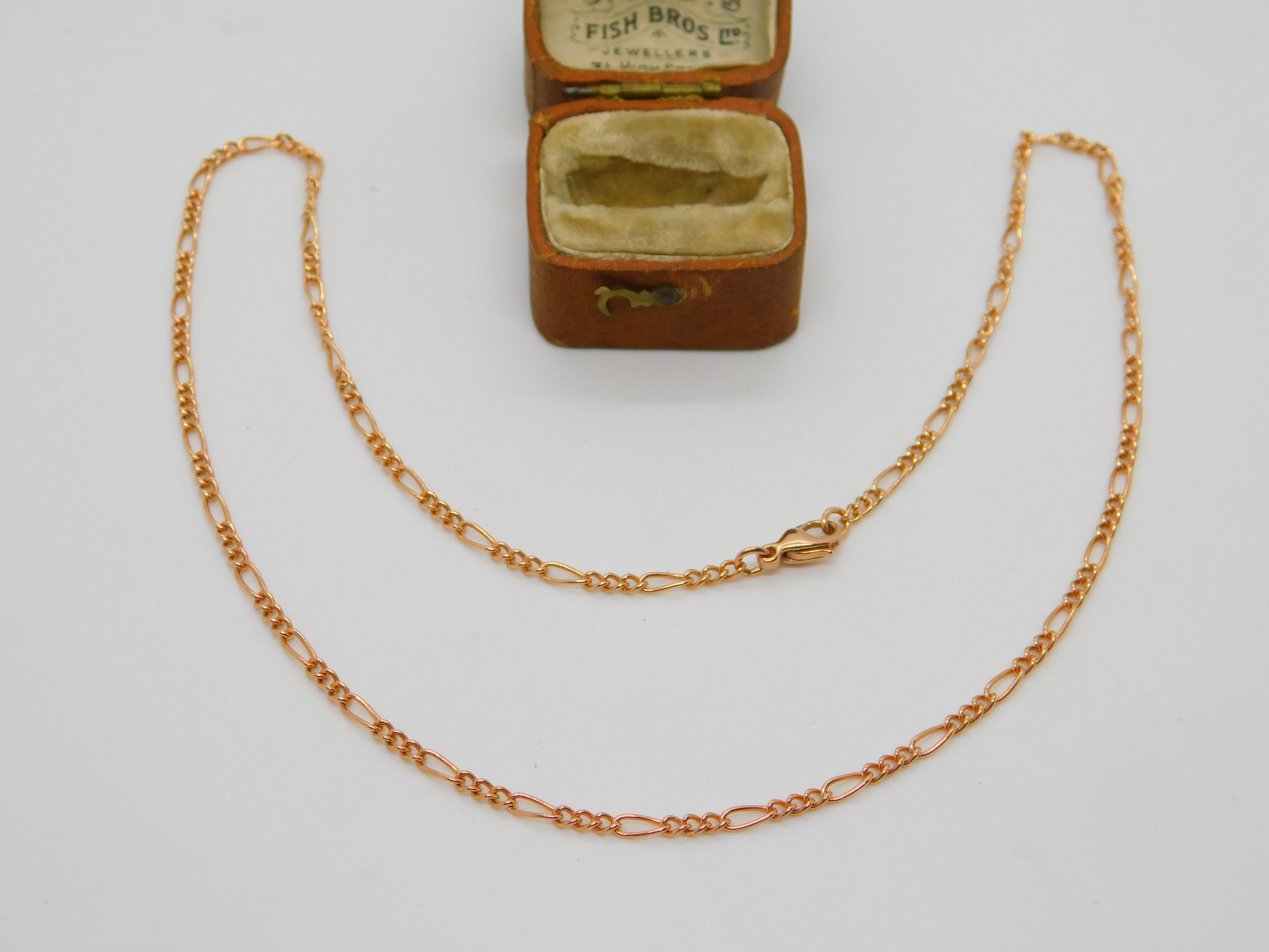 9ct Rose Gold Figaro Link Chain Necklace Vintage c2000 18" or 46cm Length