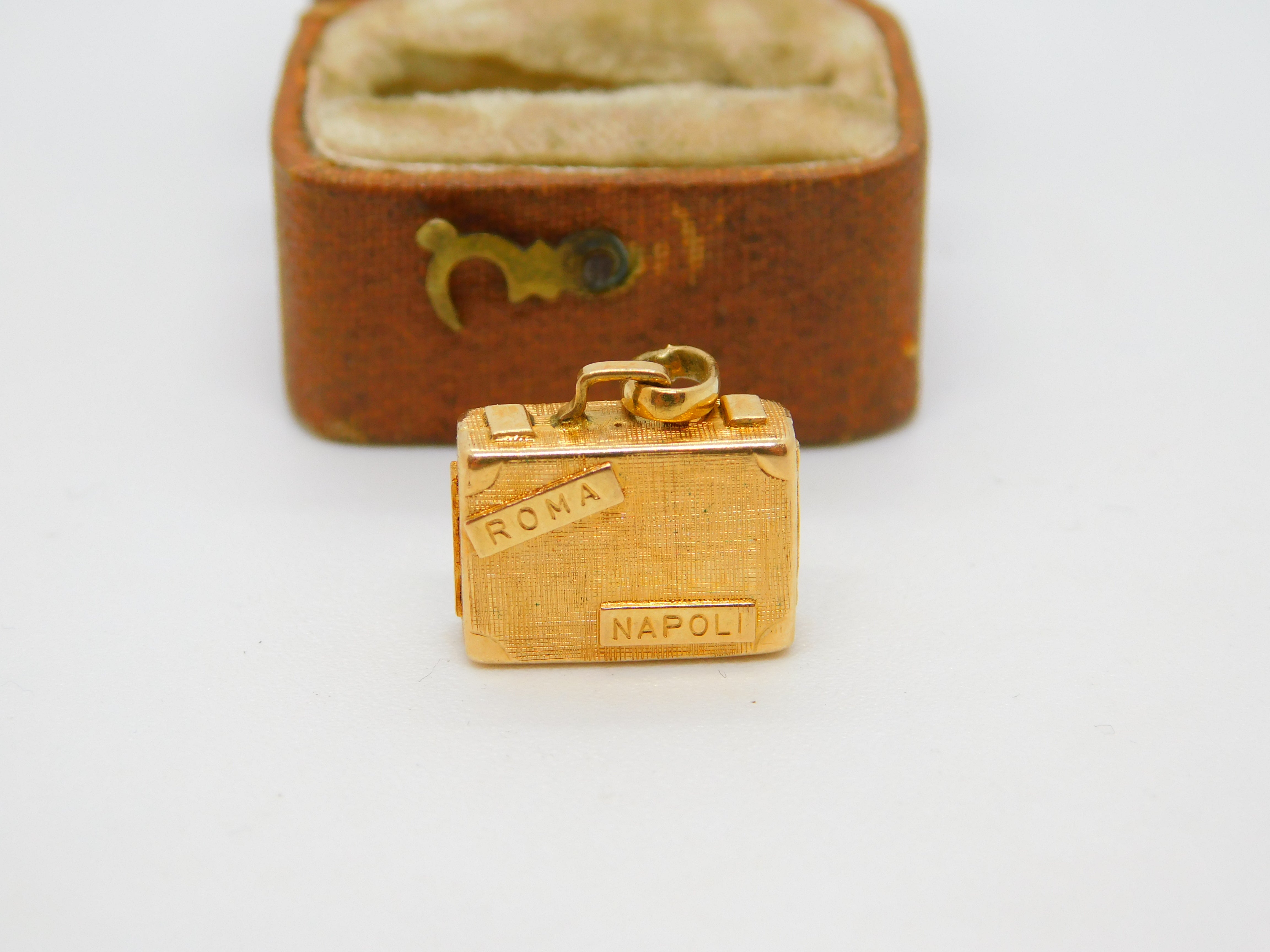 Italian Travel Bag Suitcase 18ct Yellow Gold Charm or Pendant Vintage c1970