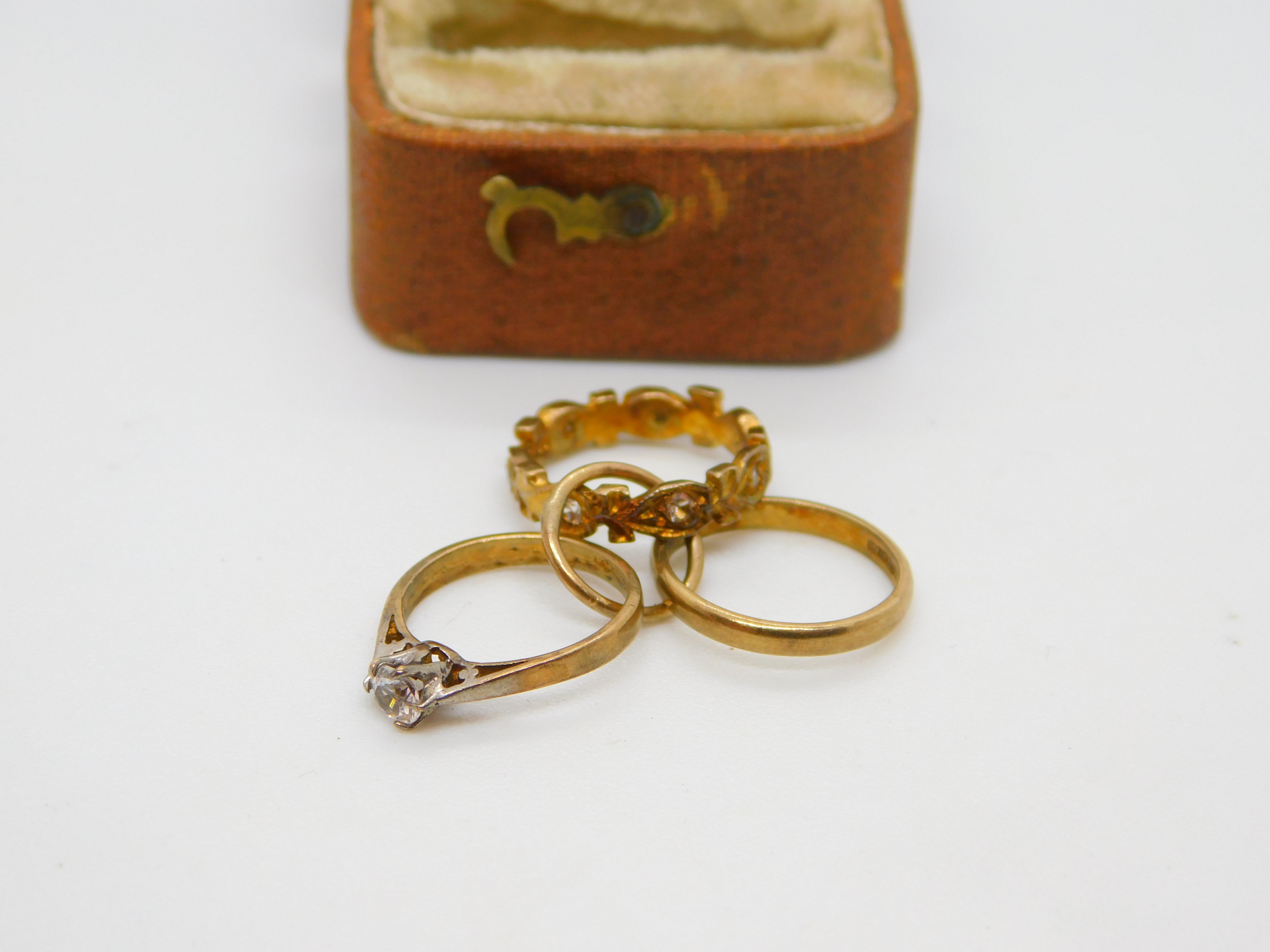 English 9ct Gold and Paste Triple Wedding Rings Charm or Pendant Vintage 1971