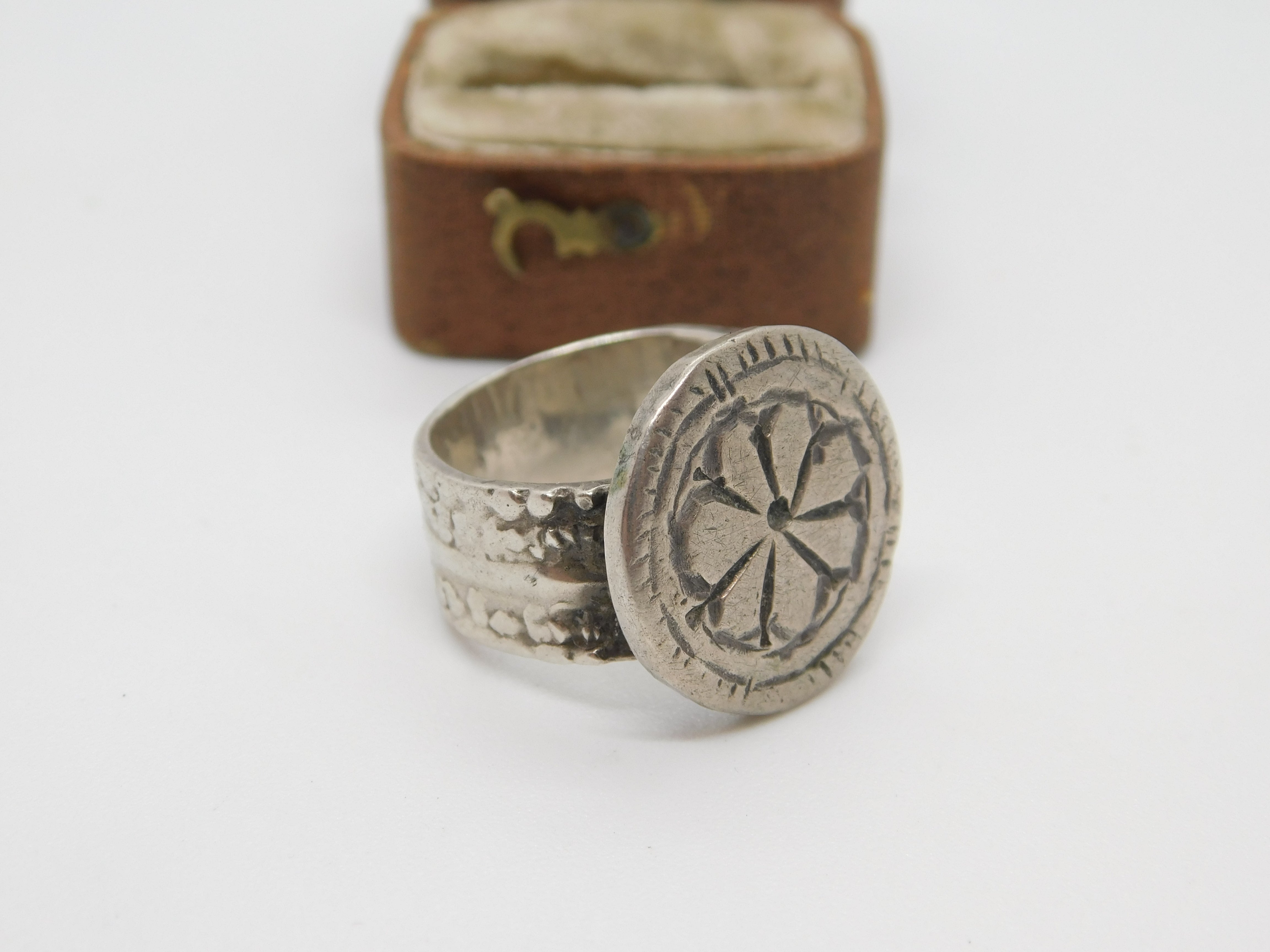 19th Century Ottoman Sterling Silver Floral Seal Stamp Ring Antique c1860